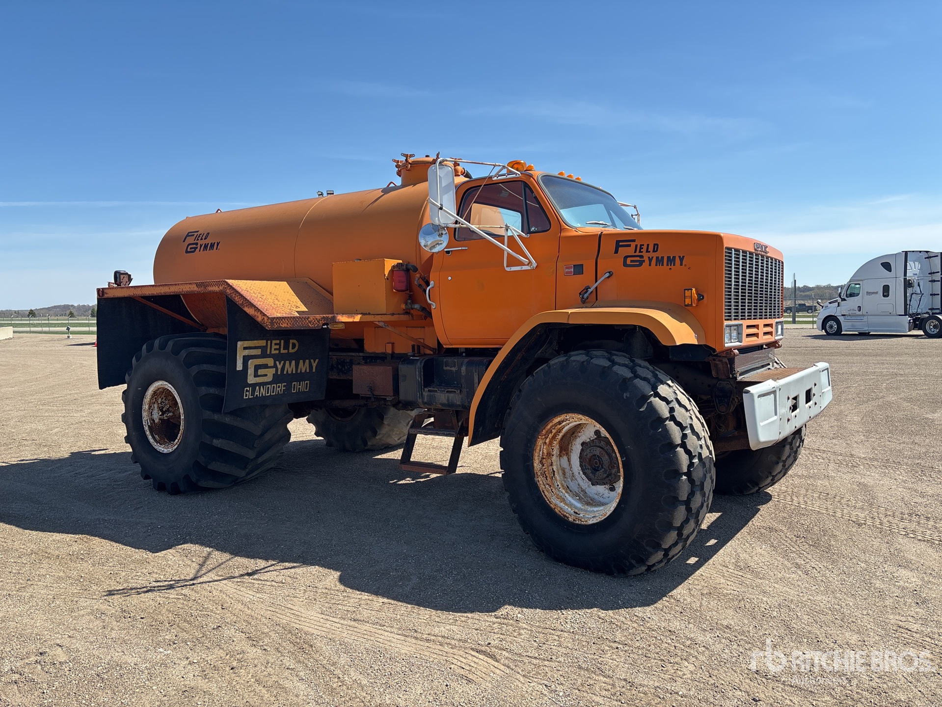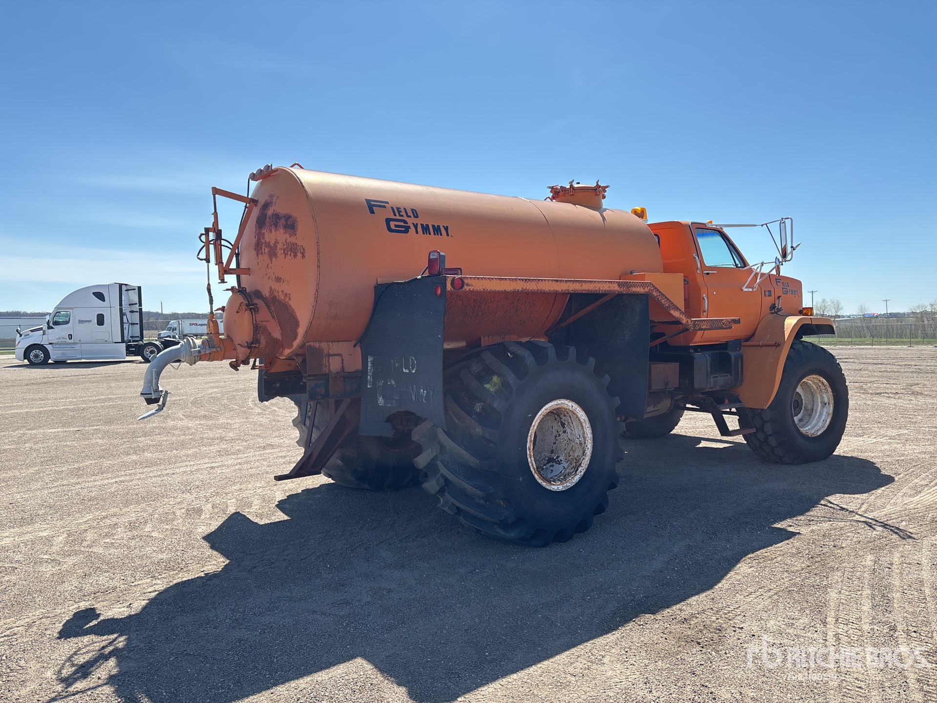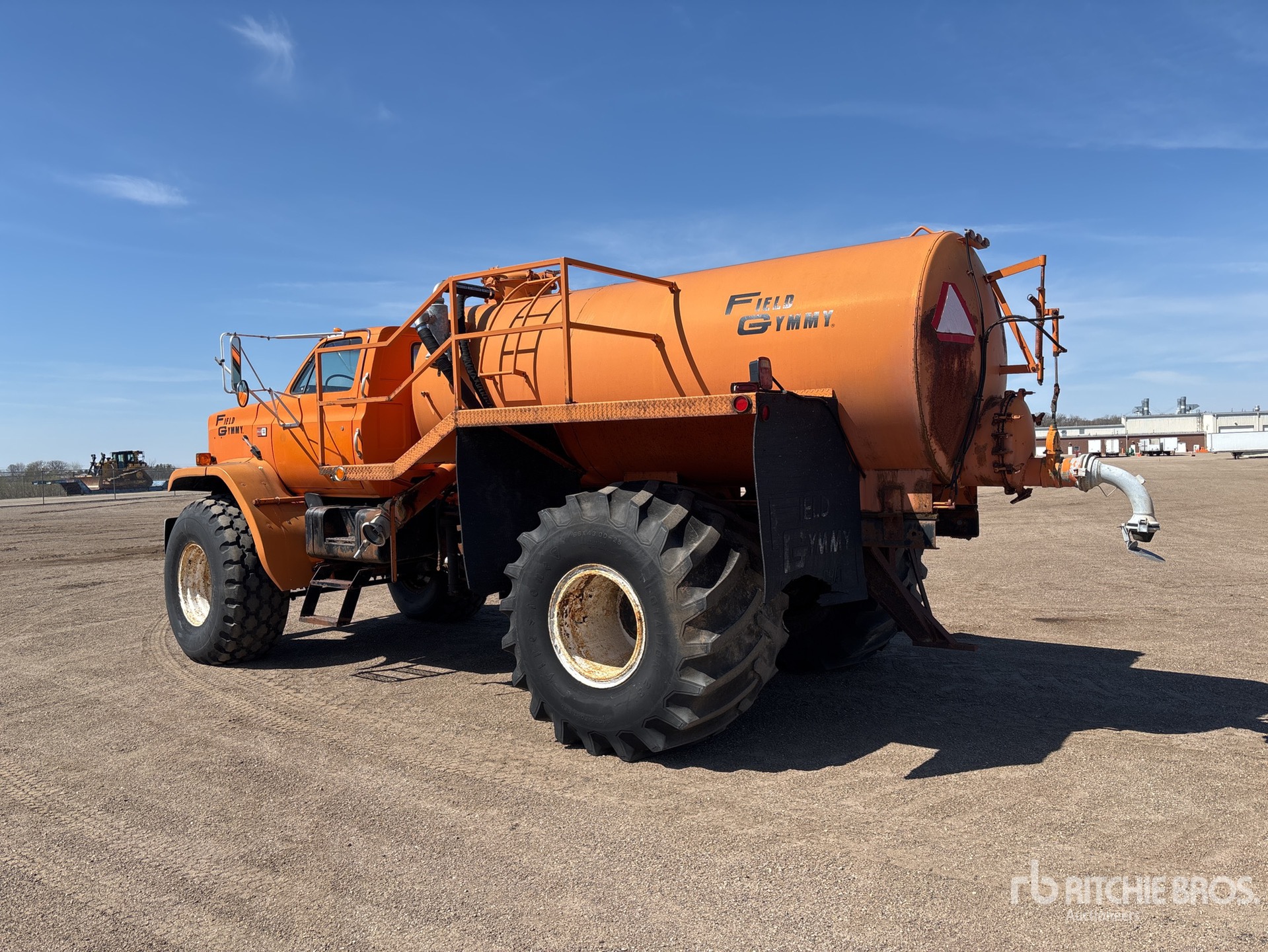 Cat 3208 V8 Diesel Engine, 5-Speed Manual Transmission, 9000 lb Front Axle, 19000 lb Rears, 28000 lb GVWR, 23.1-26 Front Tires, 66X43.000-25 Rear Tires, Spring Suspension, 176 in Wheelbase, field Gymmy 2000 Steel Tank, Hydraulic Driven Pump