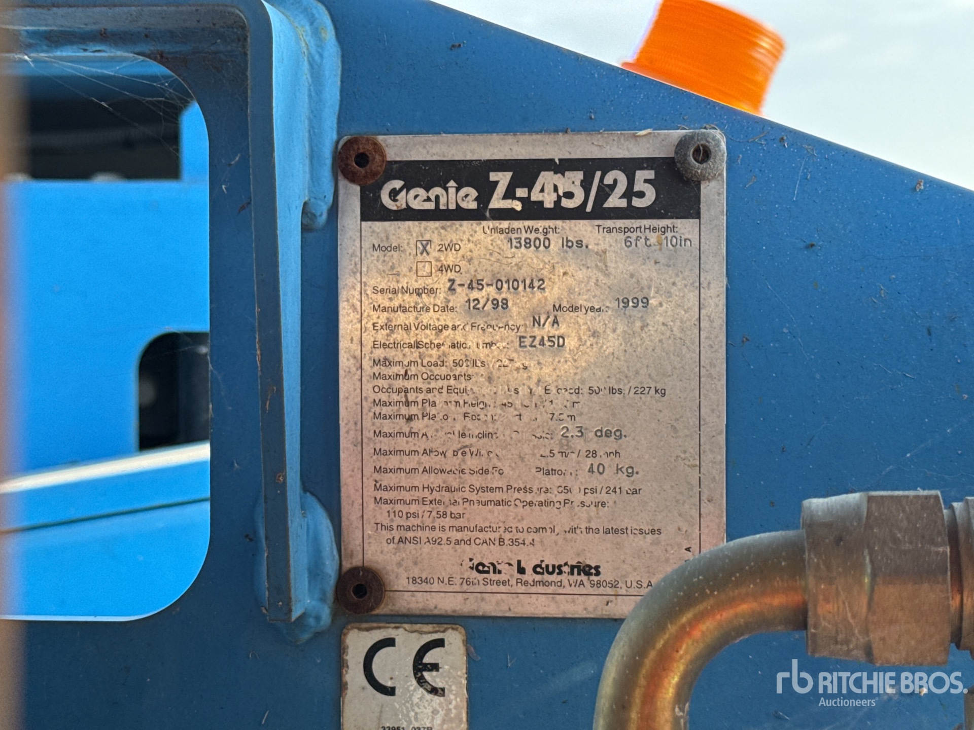 详细的设备信息范围有限,且除本文明确列出的方面或组件外,利氏兄弟拍卖公司并未检查设备中的任何其他方面或组件。除非另有明确声明,我们不会对设备或其组件作出任何形式的明示或暗示的陈述或保证。这包括但不限于关于功能、符合或遵循任何适用权力机构或监管机构的安全标准或要求、适用于任何特定用途,或者适销性的任何陈述或保证。我们强烈建议您在竞拍之前自行对设备进行详细检查。
