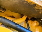 The engine started and ran. Fuel leak by injection pump, oil dripping from skid plate