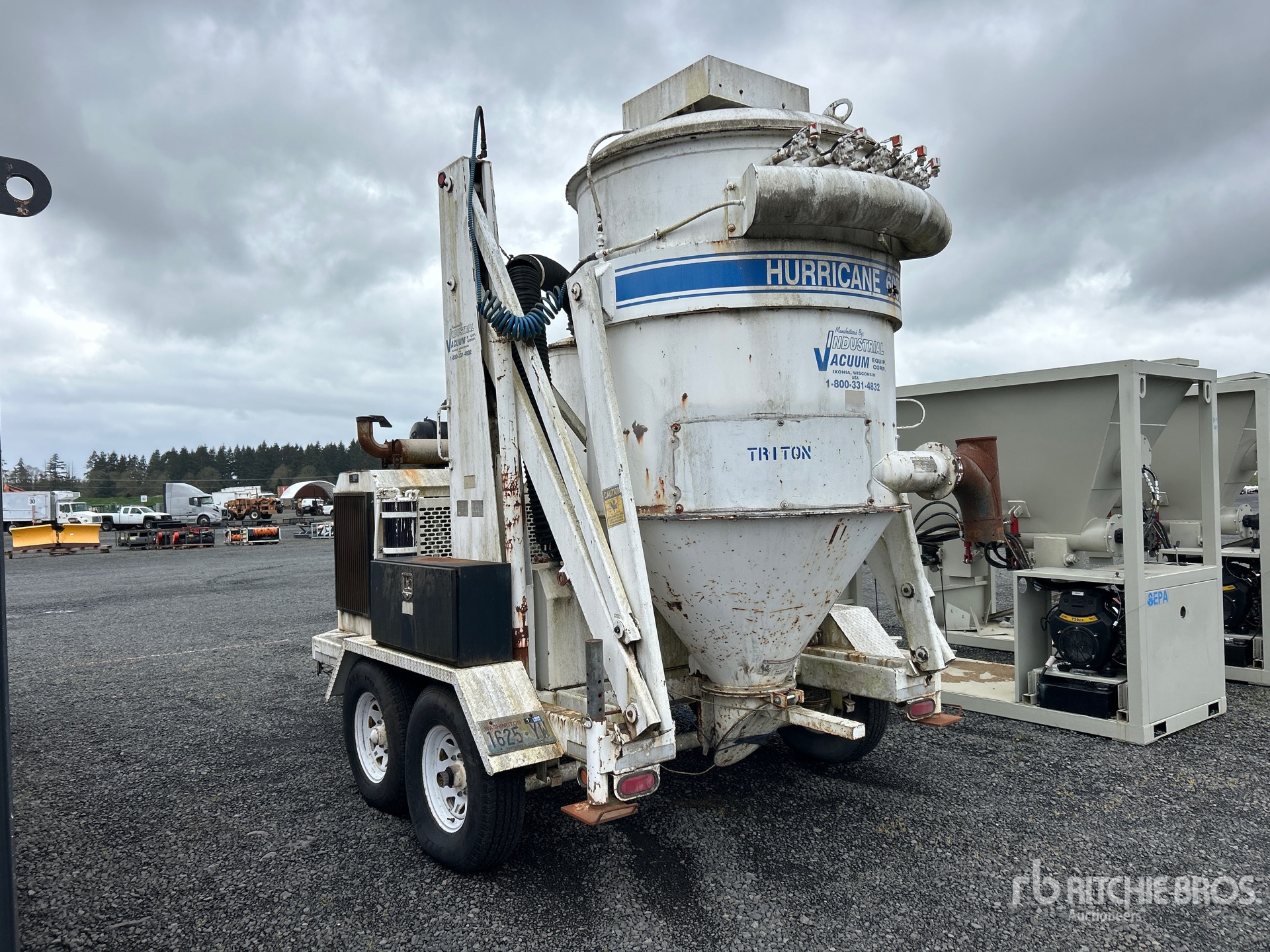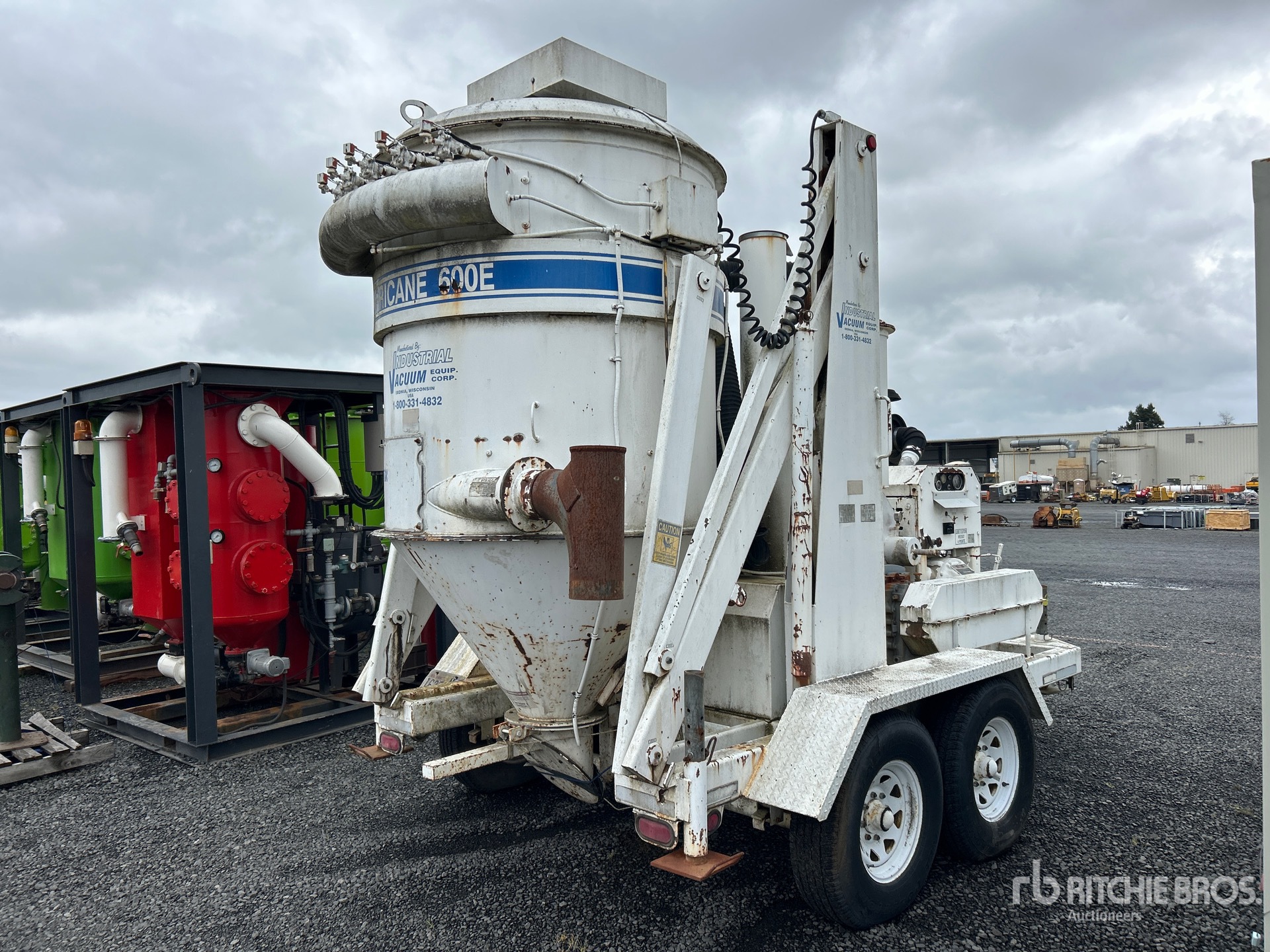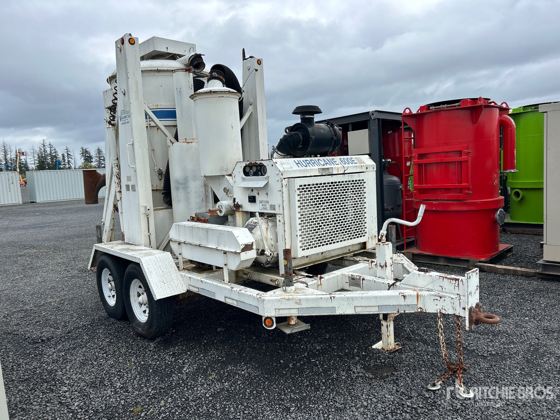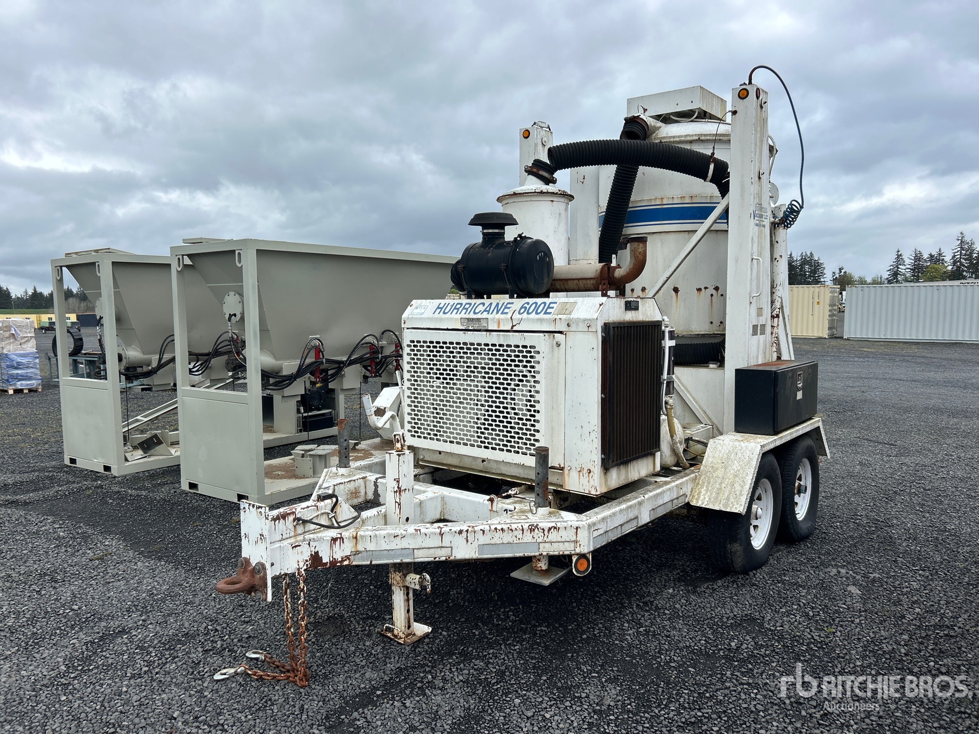 Lunette Ring Hitch, Spring Suspension, Electric Brakes, Industrial Vacuum 600E Steel Debris Tank, 6 in Suction Hose, Engine Driven Pump, 235/85R16 Tires, 14000 lb GVWR, John Deere 6 Cylinder Diesel Engine