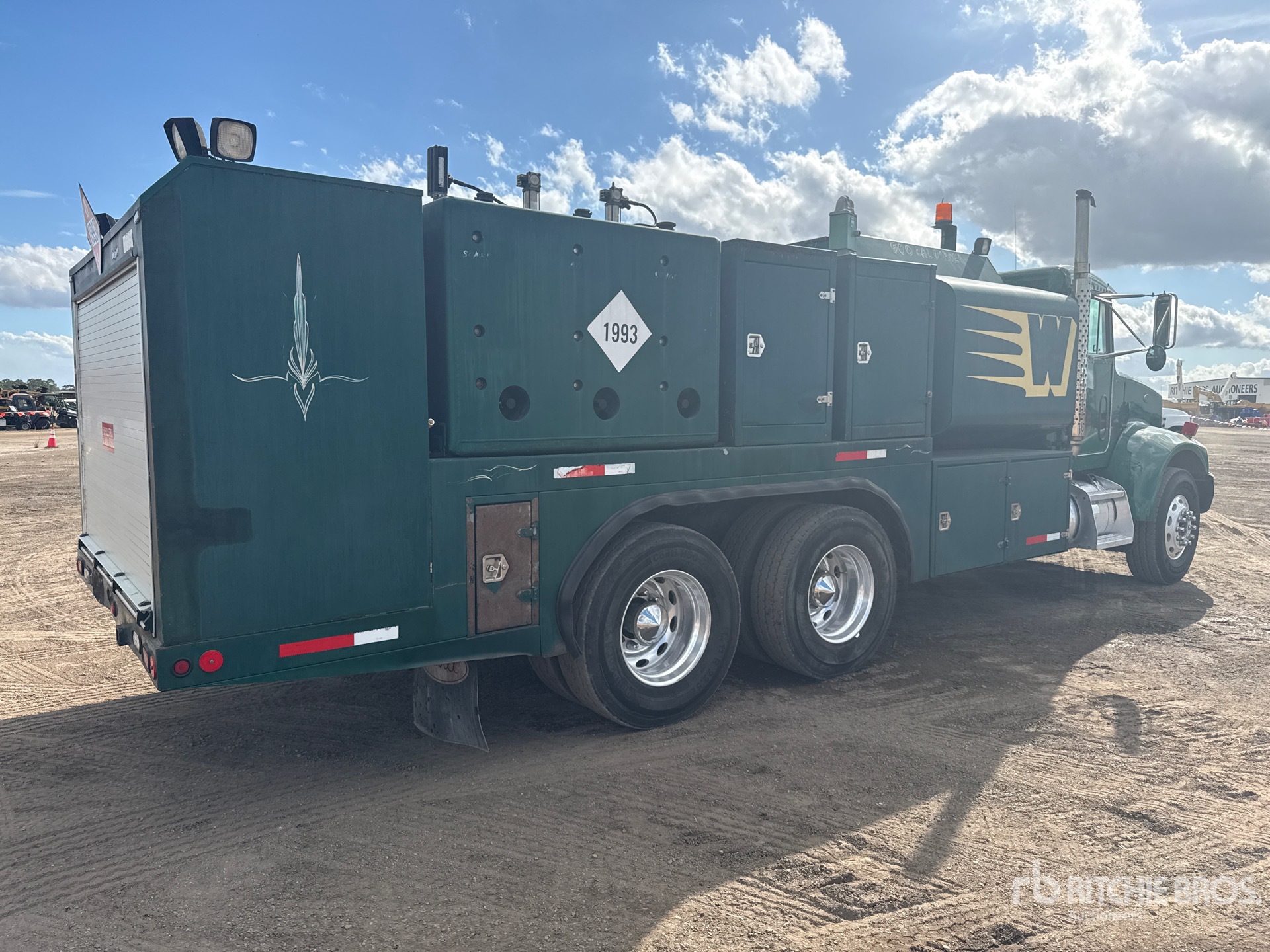 Located in Lane 98 Spot 17, Cat 6 Cylinder Diesel Engine, 33926.2 Engine hrs, Allison MD3560P Automatic Transmission, Differential Lock, 14600 lb Front Axle, 40000 lb Rears, Dana SPC DS405 Drive Axles, 5.57:1 Axle Ratio, 54600 lb GVWR, Aluminum Wheels, 315/80R22.5 Front Tires, 11R22.5 Rear Tires, Hendrickson RT/RTE Series Spring over Walking Beam Suspension, 211 in Wheelbase, PTO, Southwest Products Corp. 1017 20 ft Body, ( 12 ) Hose Reels, Metered Nozzles, Grease Barrel, Filter Drain Tray, Hydraulic Hose Reel, Hydraulic Air Compressor