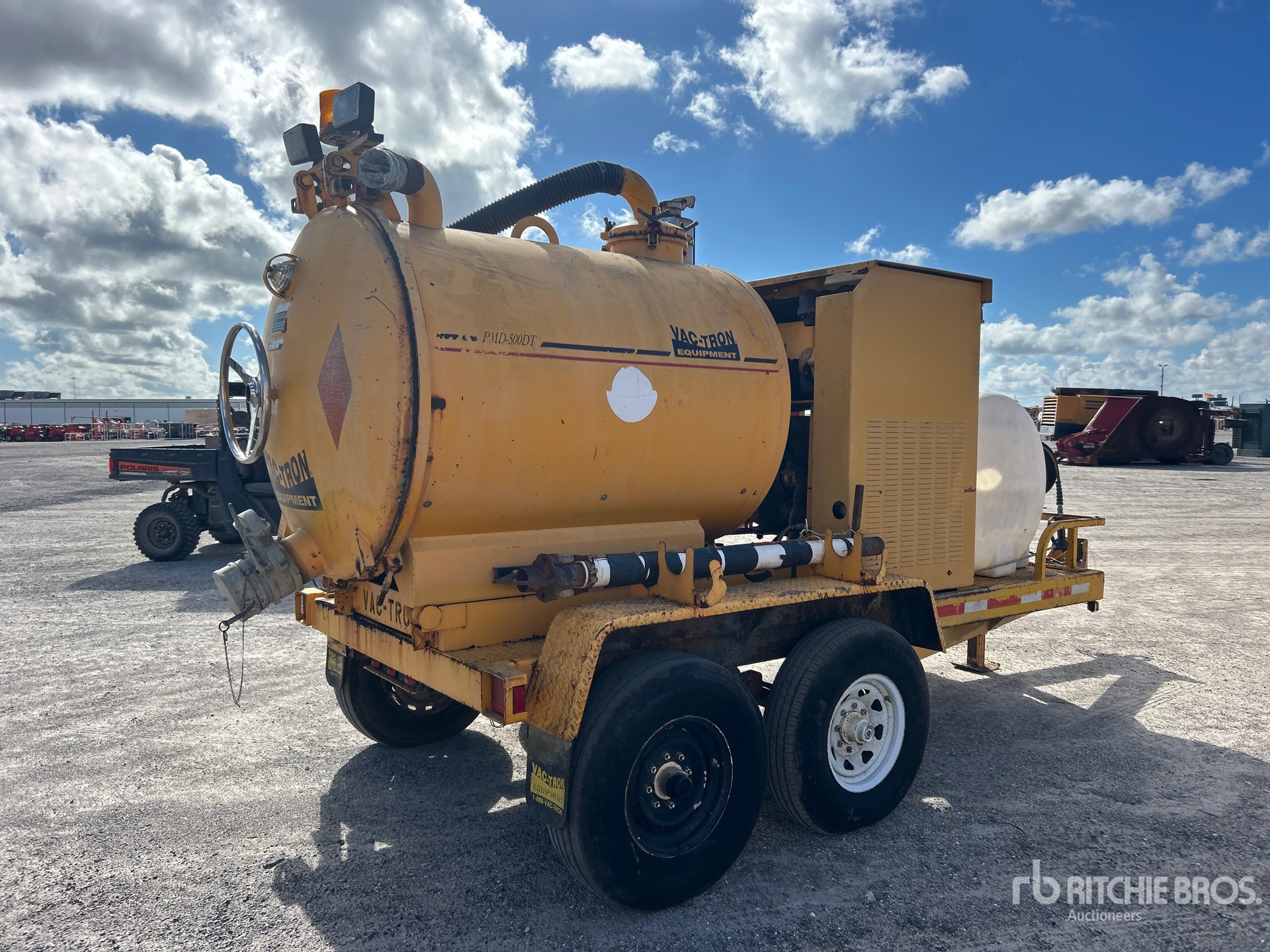 Lunette Ring Hitch, Spring Suspension, Electric Brakes, Vac-Tron PMD-500DT Steel Debris Tank, Full Open Tailgate, Manual Tailgate Locks, Wash Down System, Engine Driven Pump, 235/85R16 Tires, 1999 US EPA Label, Kubota V1505-E 4 Cylinder 26.5 kW 1.5 L Diesel Engine