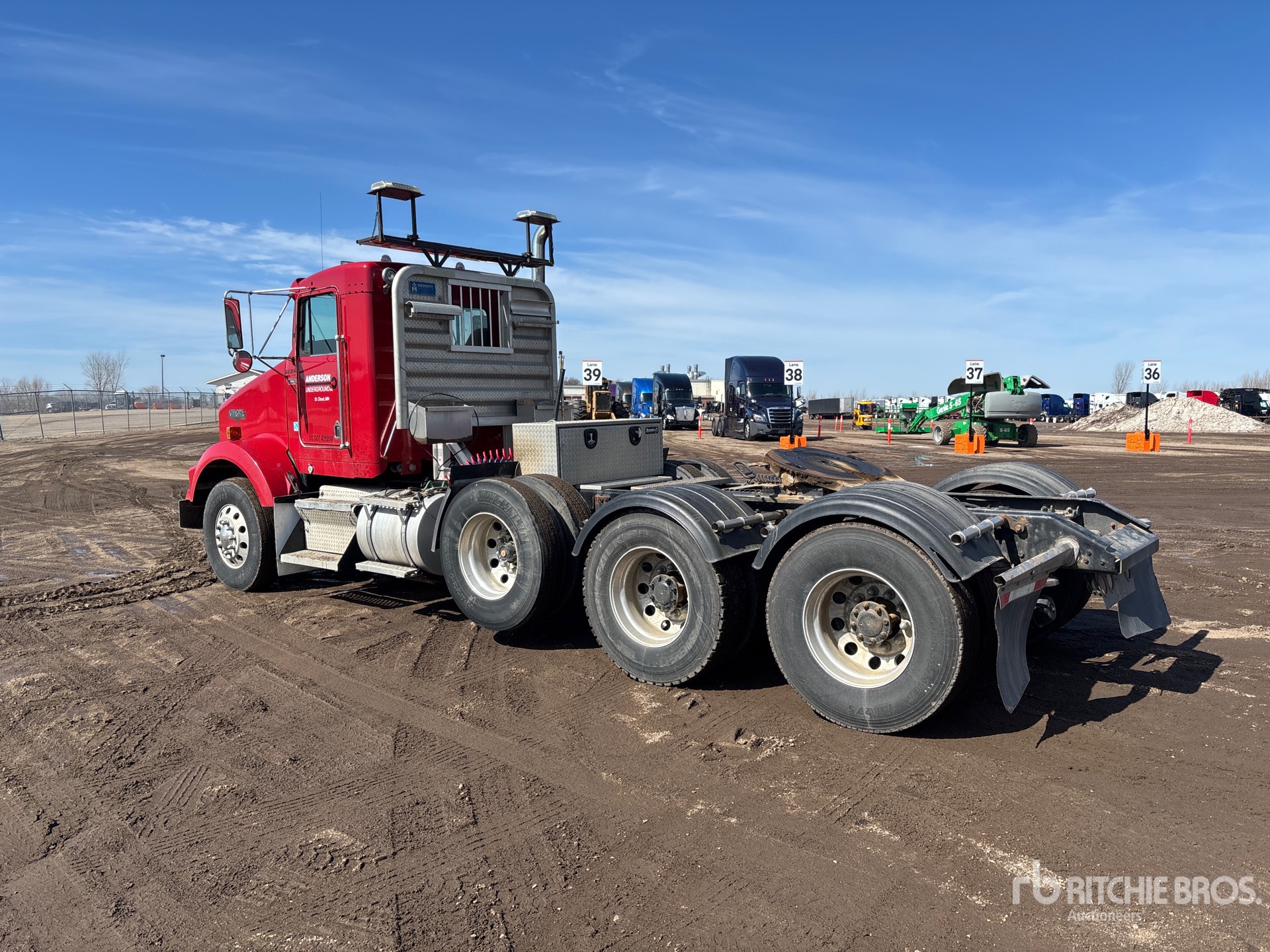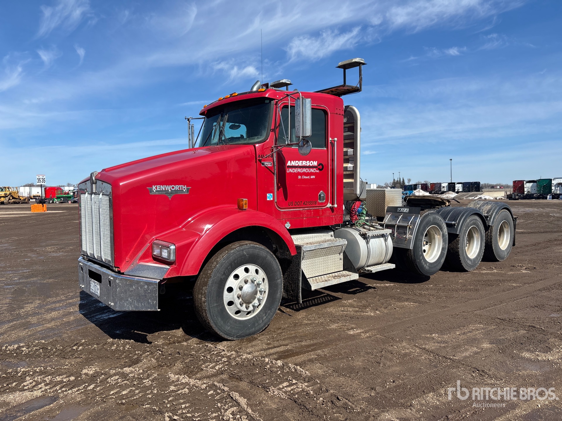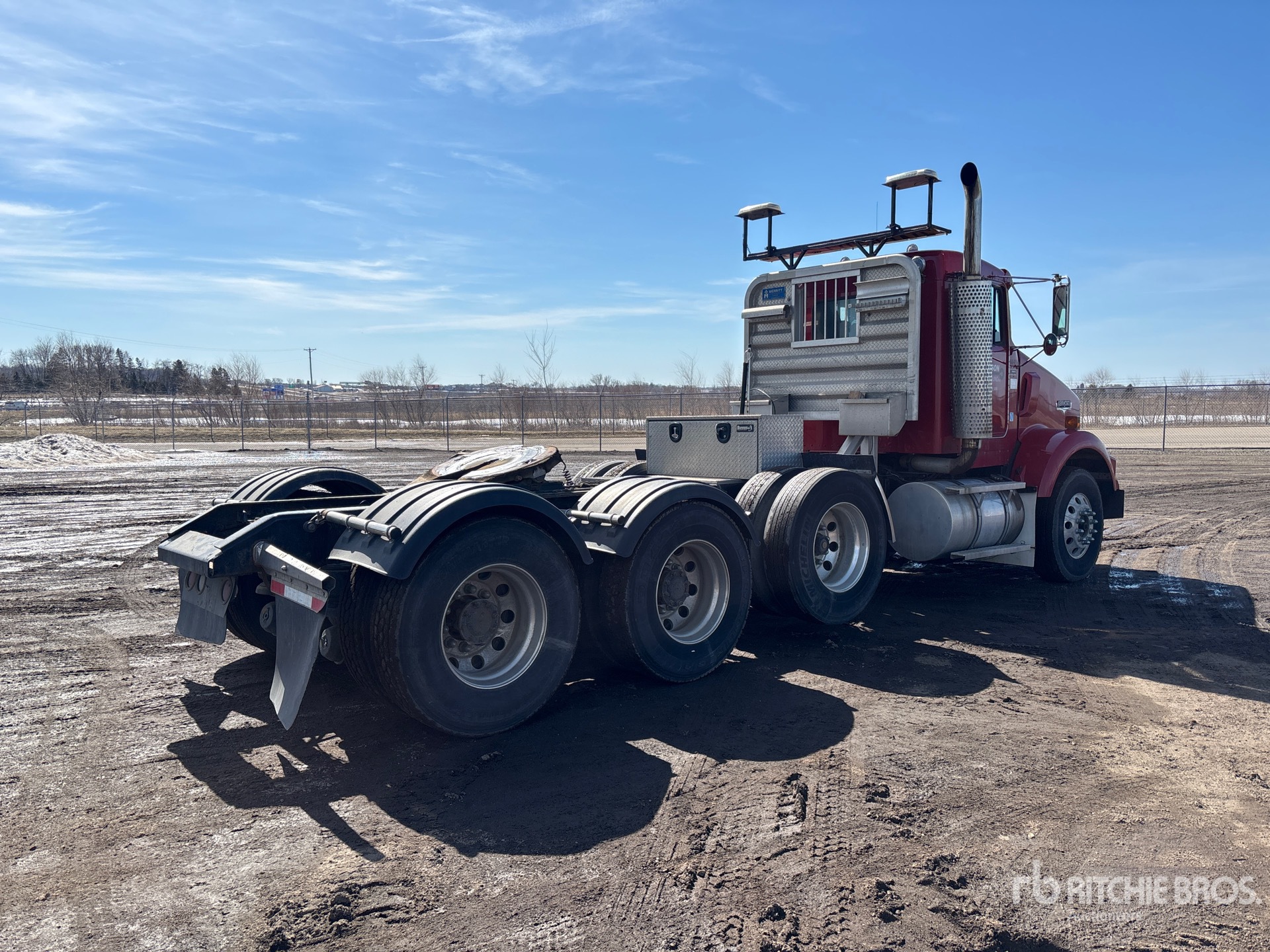 Cat C15 319 kW Engine, 2002 US EPA Label, Eaton Fuller Fro-17210c 10-Speed Manual Transmission, 222 in Wheelbase, Air Suspension, Air Lift Pusher Axle, Aluminum Wheels, 315/80R22.5 Front Tires, 11R22.5 Rear Tires, Air Sliding 5th Wheel, Dual Fuel Tanks, Headache Rack