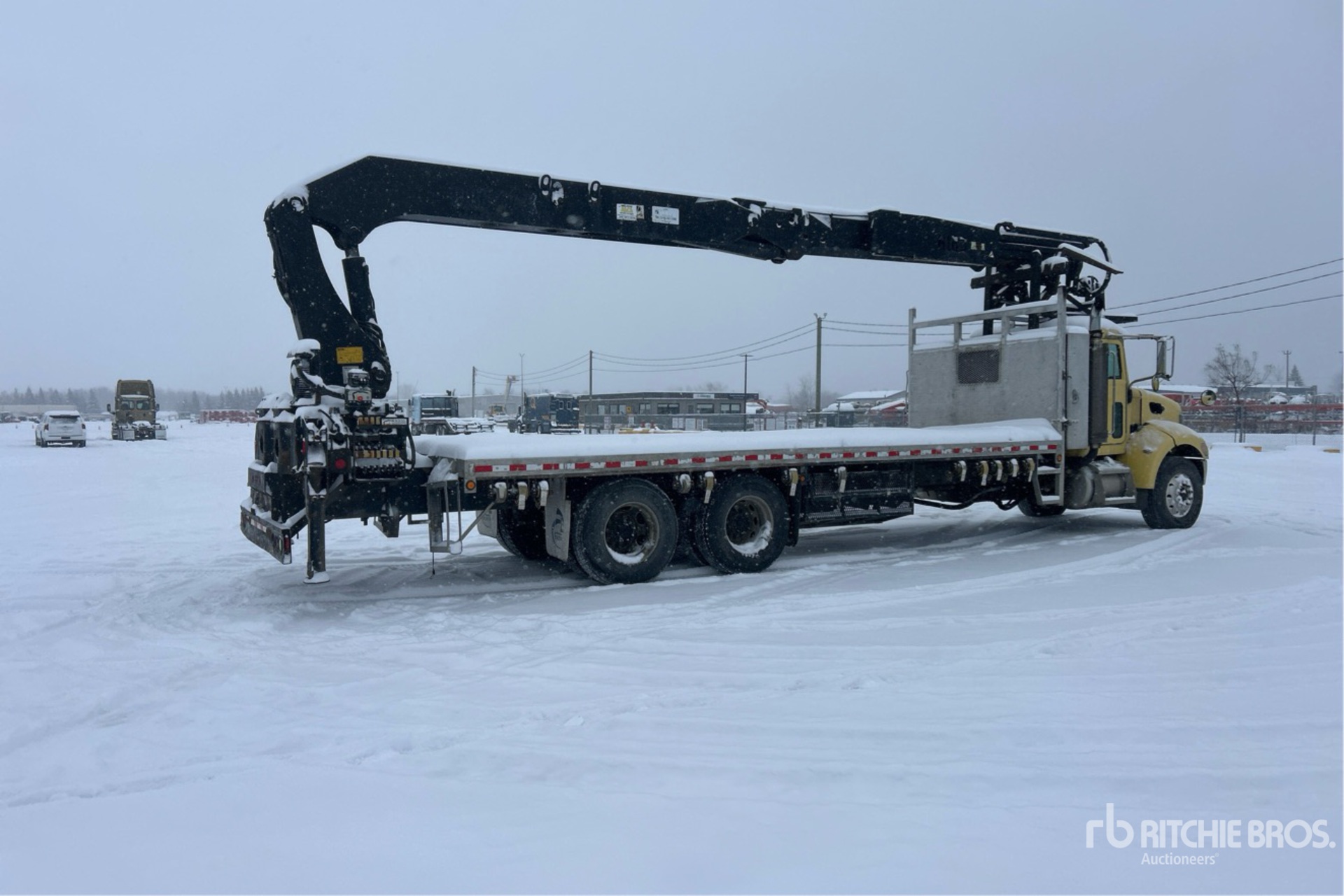 Cummins ISC 6 Cylinder Diesel 315 hp Engine, 18571 Engine hrs, Engine Brake, Allison 3000 Automatic Transmission, 14596 lb Front Axle, 39990 lb Rears, 24766 kg GVWR, Air Ride Cab, Aluminum Outer Wheels, 11R22.5 Front Tires, 11R22.5 Rear Tires, Air Ride Suspension, 300 in Wheelbase, PTO, 7.7 m - 17.3 m 5 Section Boom, Dual Controls, Out and Down Outriggers, Cordless Remote Control, 24 ft x 102 in Bed, Aluminum Frame