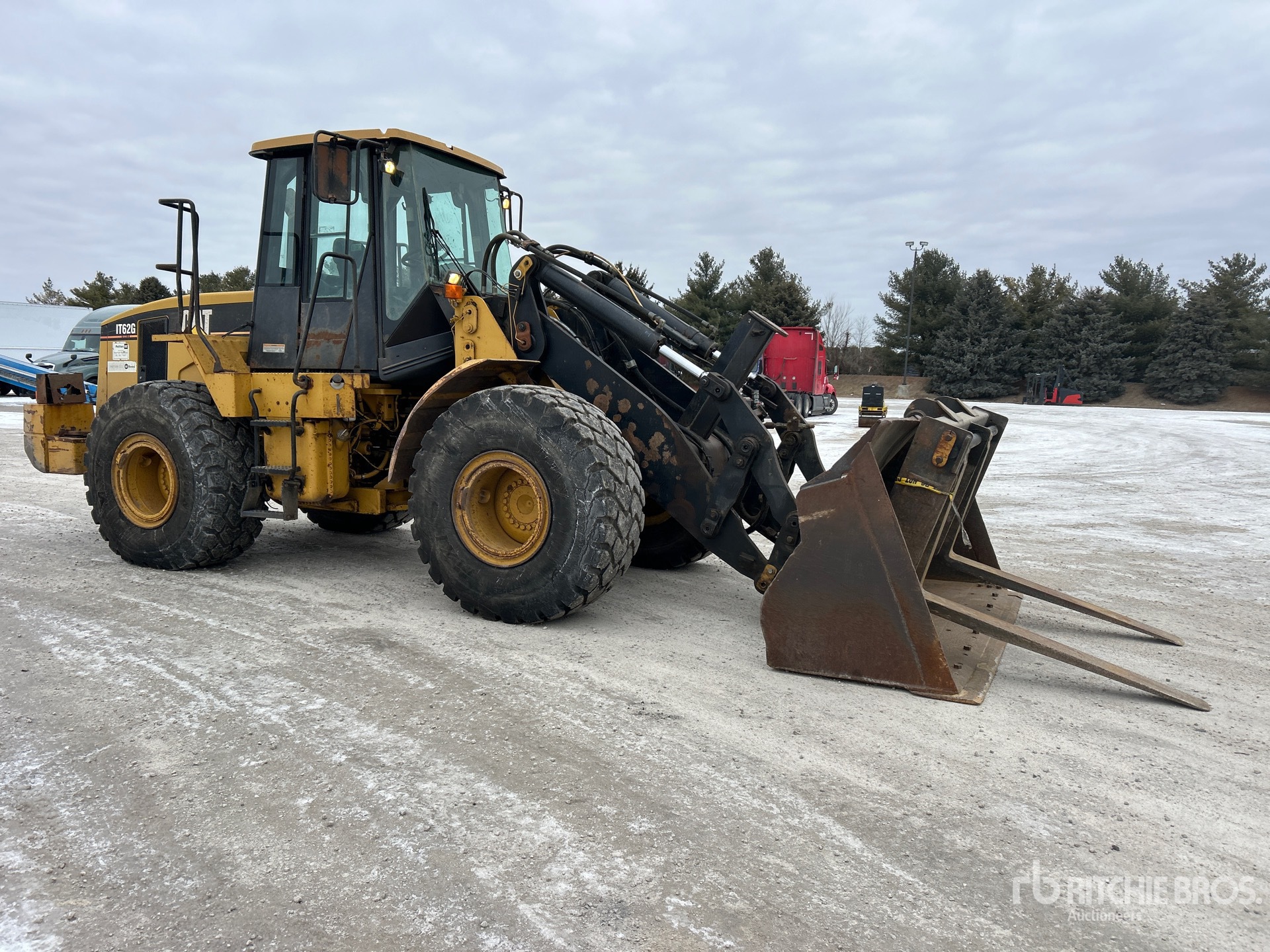 Enclosed Cab, Air Conditioner, 2004 US EPA Label, Auxiliary Hydraulics, Hydraulic Coupler, 113 in Bucket, Forks, 23.5R25 Tires