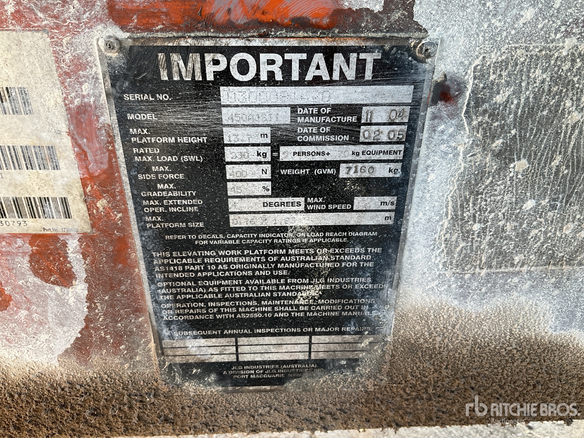 详细的设备信息范围有限,且除本文明确列出的方面或组件外,利氏兄弟拍卖公司并未检查设备中的任何其他方面或组件。除非另有明确声明,我们不会对设备或其组件作出任何形式的明示或暗示的陈述或保证。这包括但不限于关于功能、符合或遵循任何适用权力机构或监管机构的安全标准或要求、适用于任何特定用途,或者适销性的任何陈述或保证。我们强烈建议您在竞拍之前自行对设备进行详细检查。