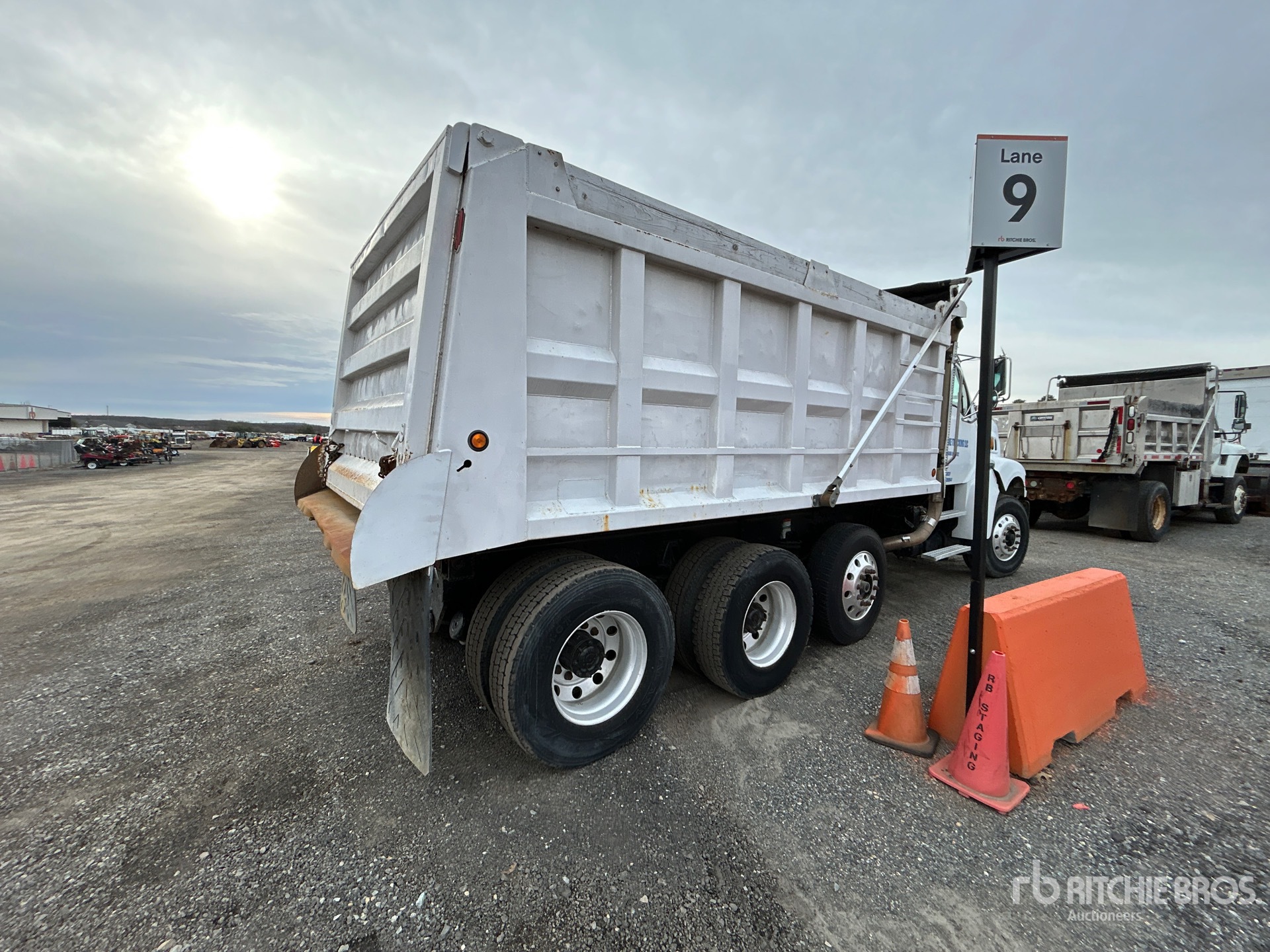 Cat C7 6 Cylinder Diesel Engine, Eaton Fuller Manual Transmission, 16000 lb Front Axle, 53200 lb Rears, 56000 lb GVWR, 315/80R22.5 Front Tires, 11R22.5 Rear Tires, Steerable Air Lift Pusher Axle, Steerable Air Lift Tag Axle, Spring over Walking Beam Suspension, 216 in Wheelbase, Ox body 16 ft Long x 4 ft 6 in High Steel Body, Electric Roll Tarp
