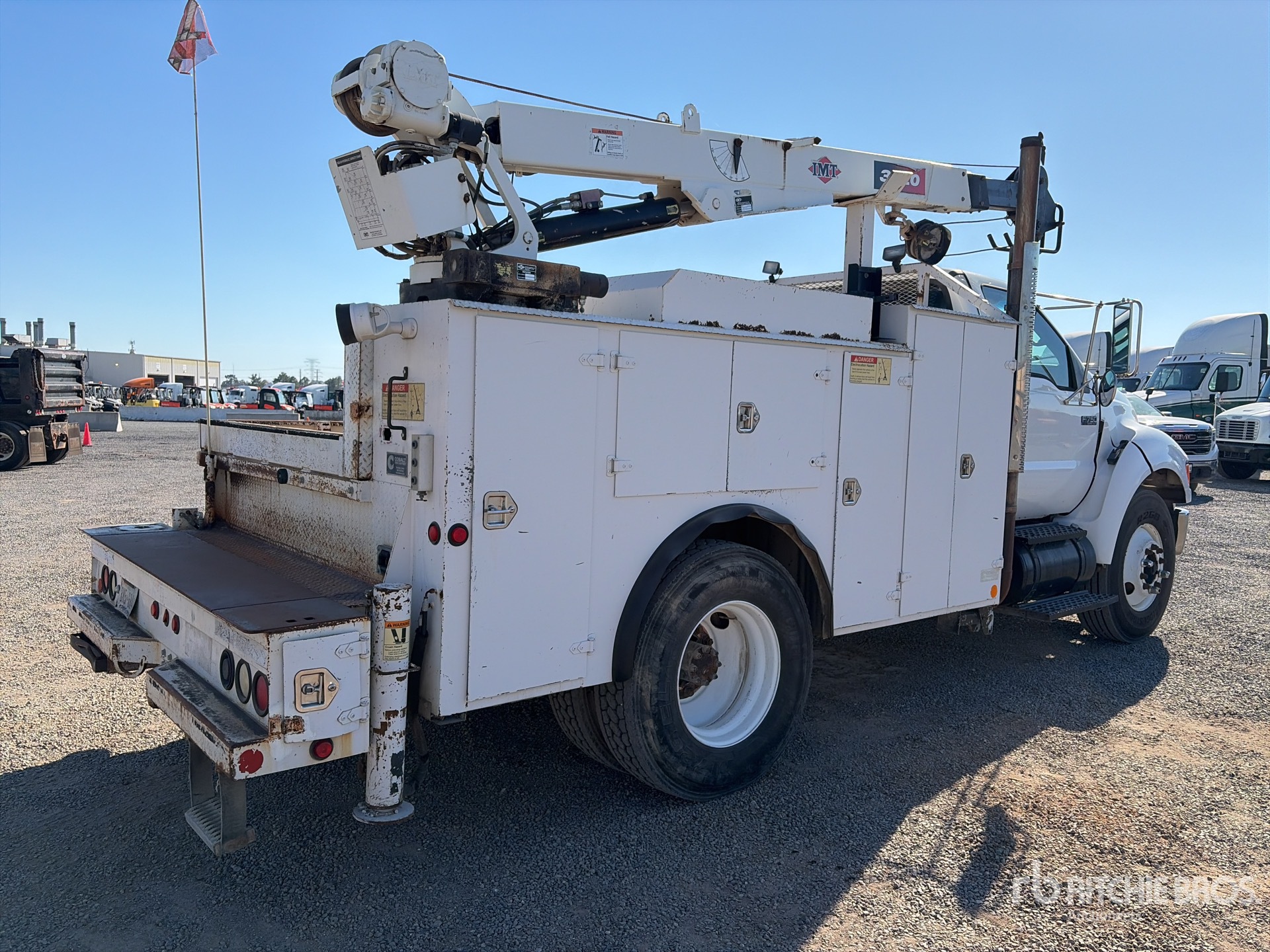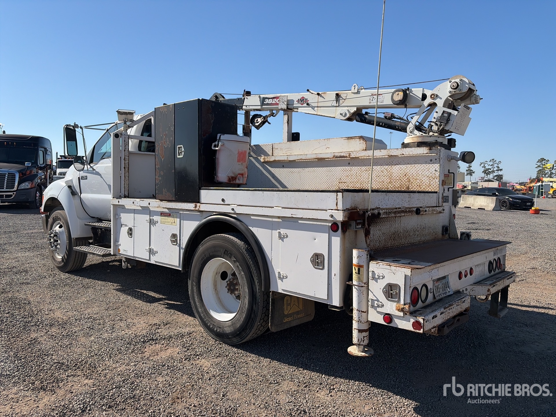 Located in Lane 15 Spot 7, CAT C7 6 Cylinder Diesel 250 hp Engine, Automatic Transmission, 12000 lb Front Axle, 21000 lb Rears, 25999 lb GVWR, 11R22.5, Spring Suspension, 158 in Wheelbase, PTO, 13 ft Body, Hydraulic Stabilizers, IMT 7500 lb 3 Section Hydraulic Crane, Wired Remote Control