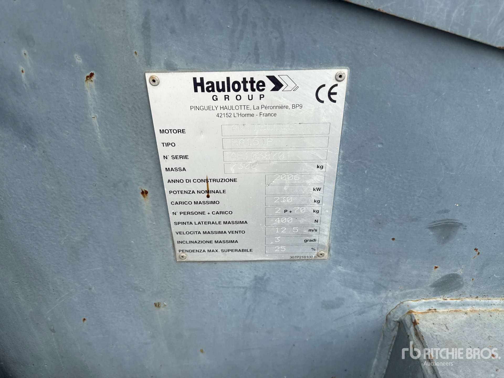 详细的设备信息范围有限,且除本文明确列出的方面或组件外,利氏兄弟拍卖公司并未检查设备中的任何其他方面或组件。除非另有明确声明,我们不会对设备或其组件作出任何形式的明示或暗示的陈述或保证。这包括但不限于关于功能、符合或遵循任何适用权力机构或监管机构的安全标准或要求、适用于任何特定用途,或者适销性的任何陈述或保证。我们强烈建议您在竞拍之前自行对设备进行详细检查。