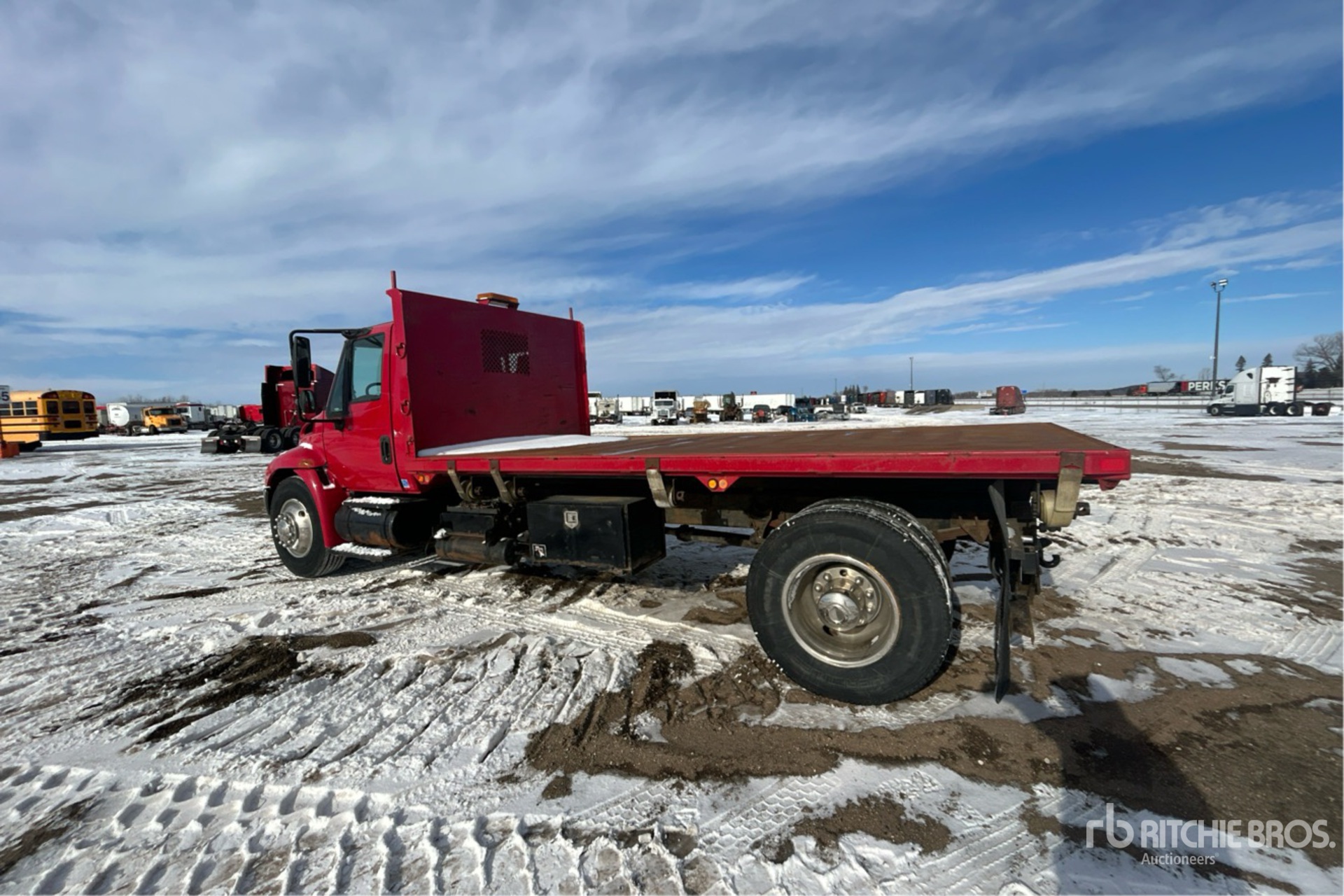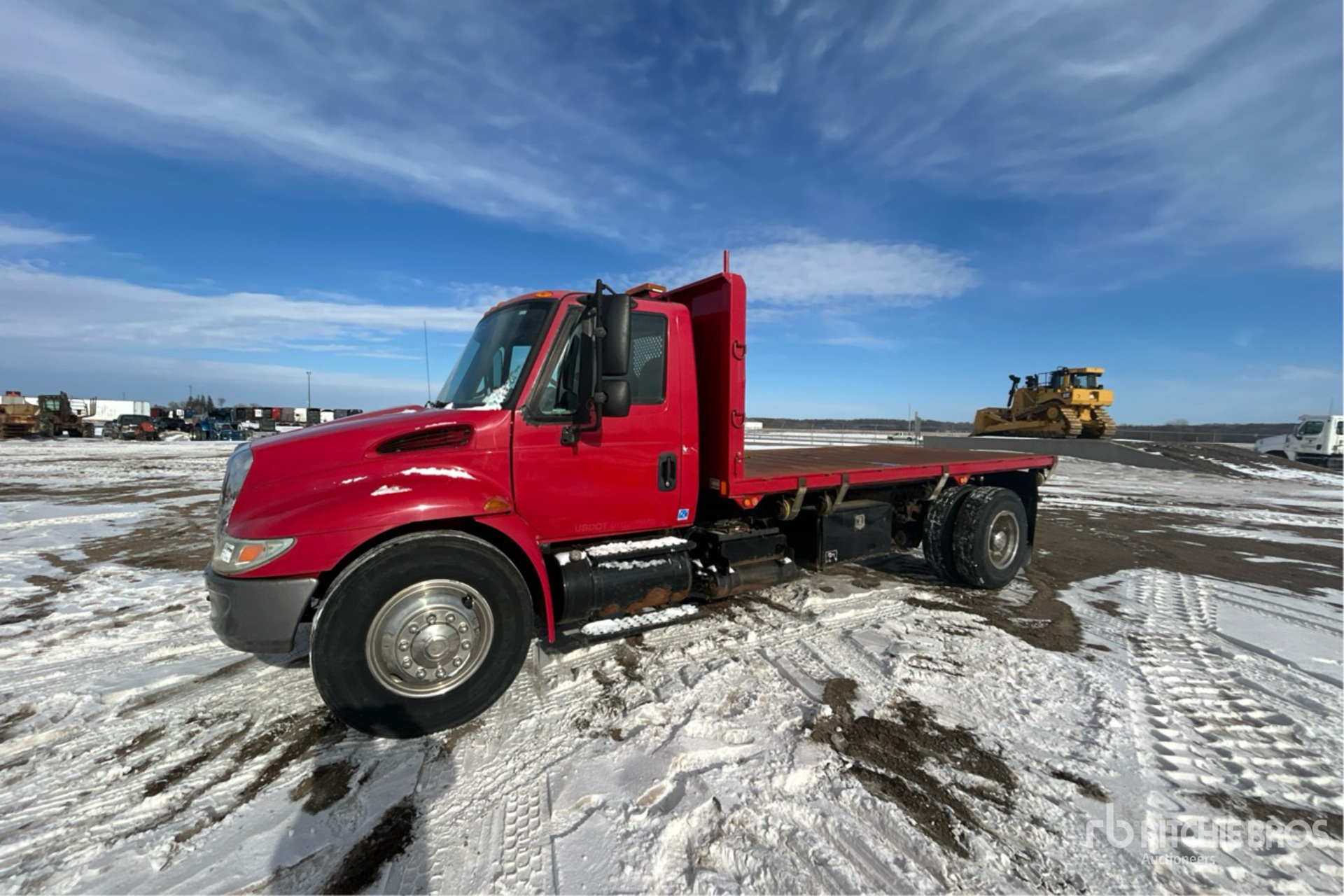 Located in Lane 6 Spot 24, International DT466 6 Cylinder 7.6 L Diesel 220 hp Engine, 2005 US EPA Label, 13422 Engine hrs, Automated Transmission, 11R22.5, Spring Suspension, 210 in Wheelbase, PTO, AMH x 96 in High Body, Pintle Hitch