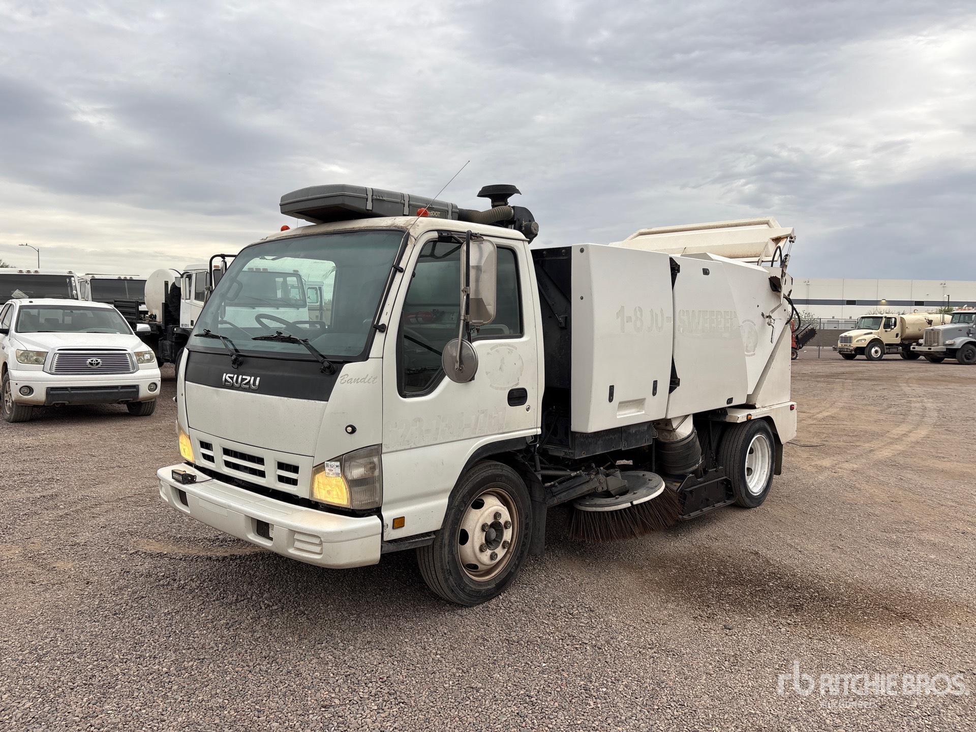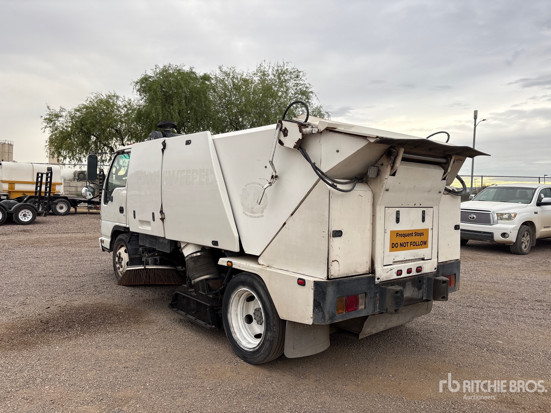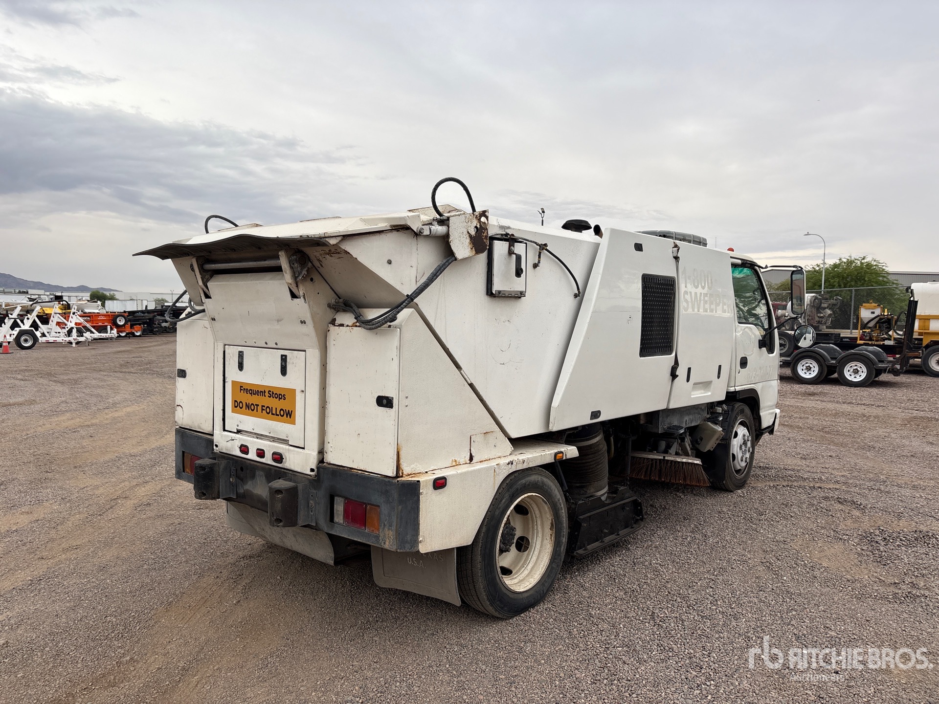 Located in Lane 16 Spot 63, 4 Cylinder 5.2 L Diesel Engine, Automatic Transmission, 6830 lb Front Axle, 12980 lb Rears, 17950 lb GVWR, 225/70R19.5 Front Tires, 225/70R19.5 Rear Tires, Spring Suspension, 133 in Wheelbase, PTO, Regenerative Air, Dual Controls, 24 in Under Body Broom, Gutter Brooms, Water System, Hydraulic Dump