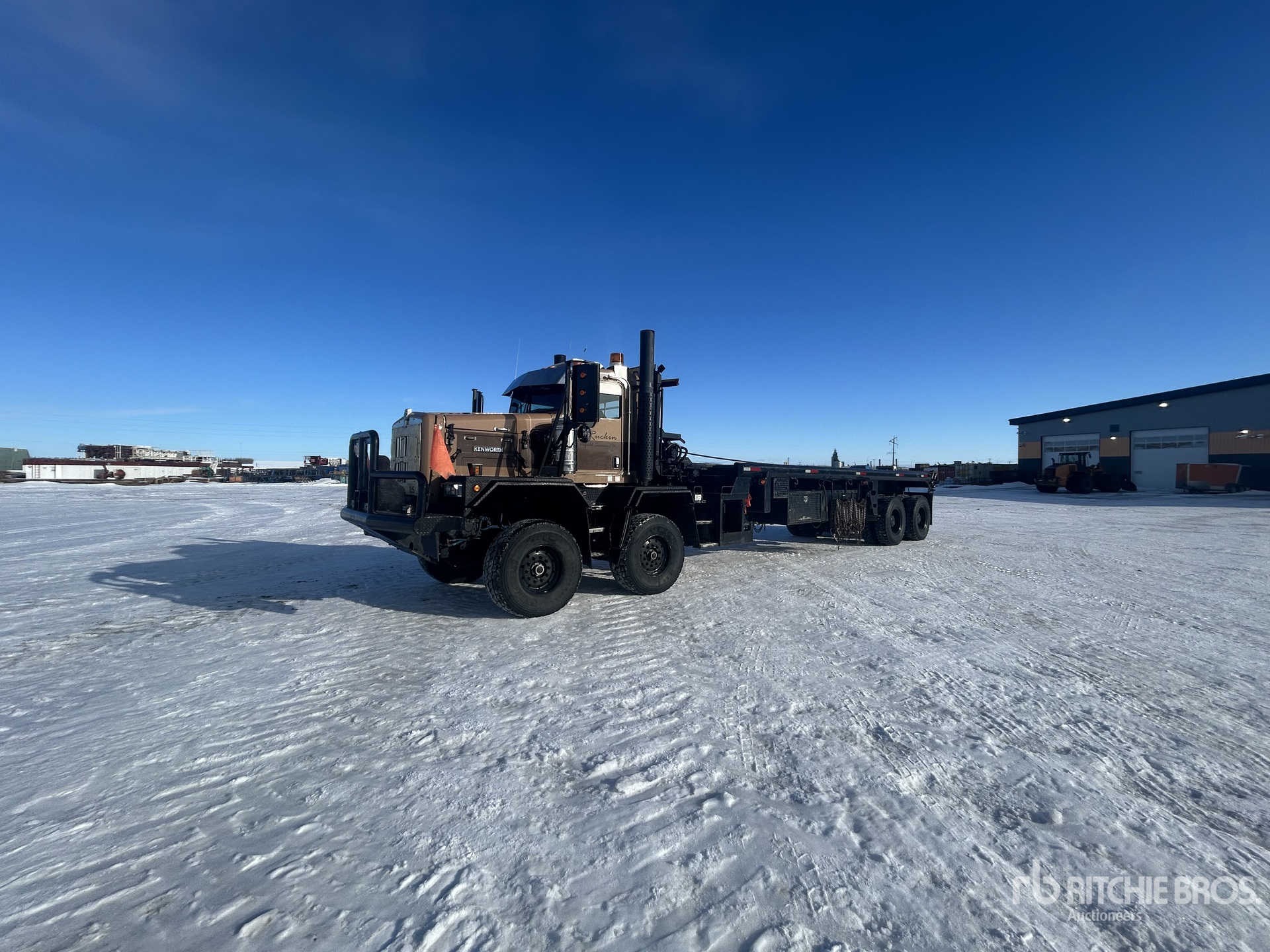 Cat C15 6 Cylinder Diesel 475 hp Engine, Engine Coolant Heater, Positive Air Shutoff, 31878 Engine hrs, Engine Brake, Eaton Fuller RTLO-18918B 18-Speed Manual Transmission, Double Differential Locks, 16330 lb Front Axle, 30990 kg Rears, Sisu FR2P32S Drive Axles, 7.01:1 Axle Ratio, 445/65R22.5 Front Tires, 12.00R24 Rear Tires, Dual Steering Boxes, Double Frame, Chalmers Rubber over Walking Beam Suspension, 382 in Wheelbase, PTO, 27 ft x 108 in Bed, Center Roll, Live Roll, 27 ft Gin Poles, Tulsa Hydraulic Winch, Tulsa Hydraulic Winch, Flip-Over 5th-Wheel
