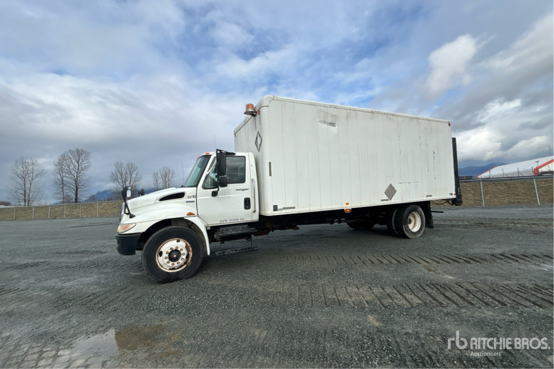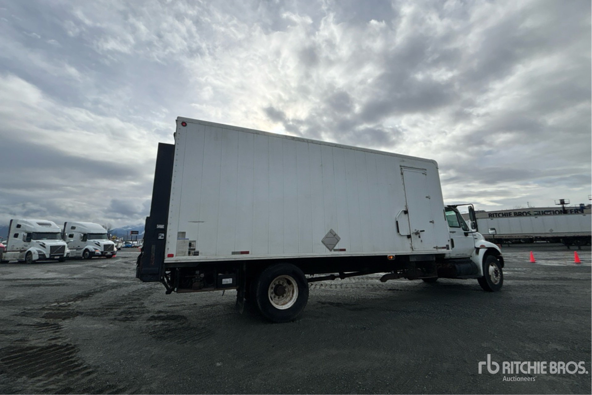 International MaxxForce DT V8 7.6 L Diesel 245 hp Engine, 2007 US EPA Label, CARB Compliant, 5555 Engine hrs, Engine Brake, Automatic Transmission, 12000 lb Front Axle, 21000 lb Rears, 33000 lb GVWR, 11R22.5, Spring Suspension, 254 in Wheelbase, ITB 22 ft x 102 in Wide x 96 in High Body, Curbside Door, Liftgate
