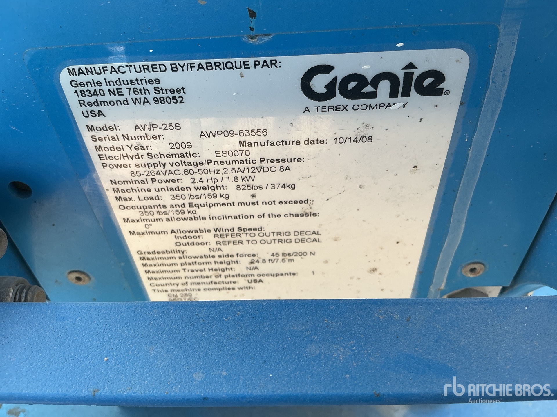 详细的设备信息范围有限,且除本文明确列出的方面或组件外,利氏兄弟拍卖公司并未检查设备中的任何其他方面或组件。除非另有明确声明,我们不会对设备或其组件作出任何形式的明示或暗示的陈述或保证。这包括但不限于关于功能、符合或遵循任何适用权力机构或监管机构的安全标准或要求、适用于任何特定用途,或者适销性的任何陈述或保证。我们强烈建议您在竞拍之前自行对设备进行详细检查。