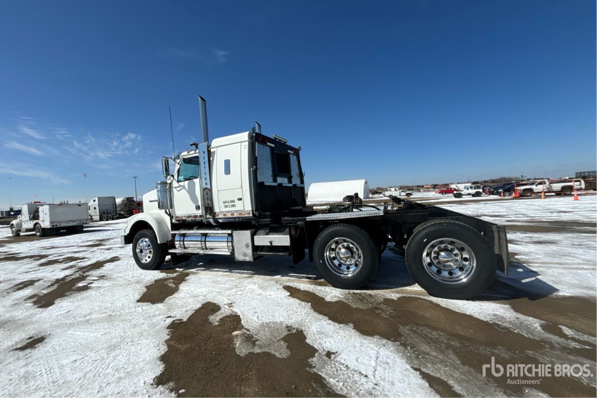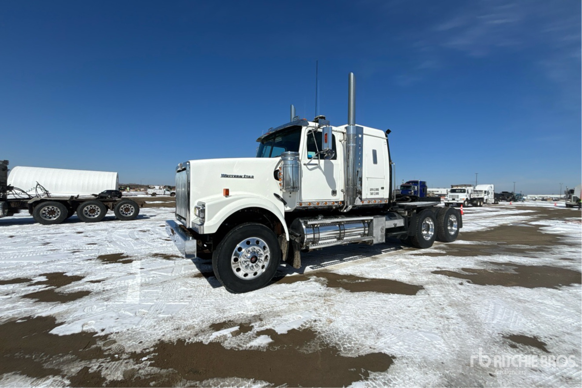 Detroit DD15 560 hp Engine, Engine Coolant Heater, 2009 US EPA Label, 23529 Engine hrs, Eaton Fuller RTLO-18918B 18-Speed Manual Transmission, 13220 lb Front Axle, 46000 lb Rears, 59220 lb GVWR, Double Differential Locks, 48 in Sleeper Cab, 236 in Wheelbase, Air Suspension, 11R24.5, Air Sliding 5th Wheel, Dual Fuel Tanks, Headache Rack