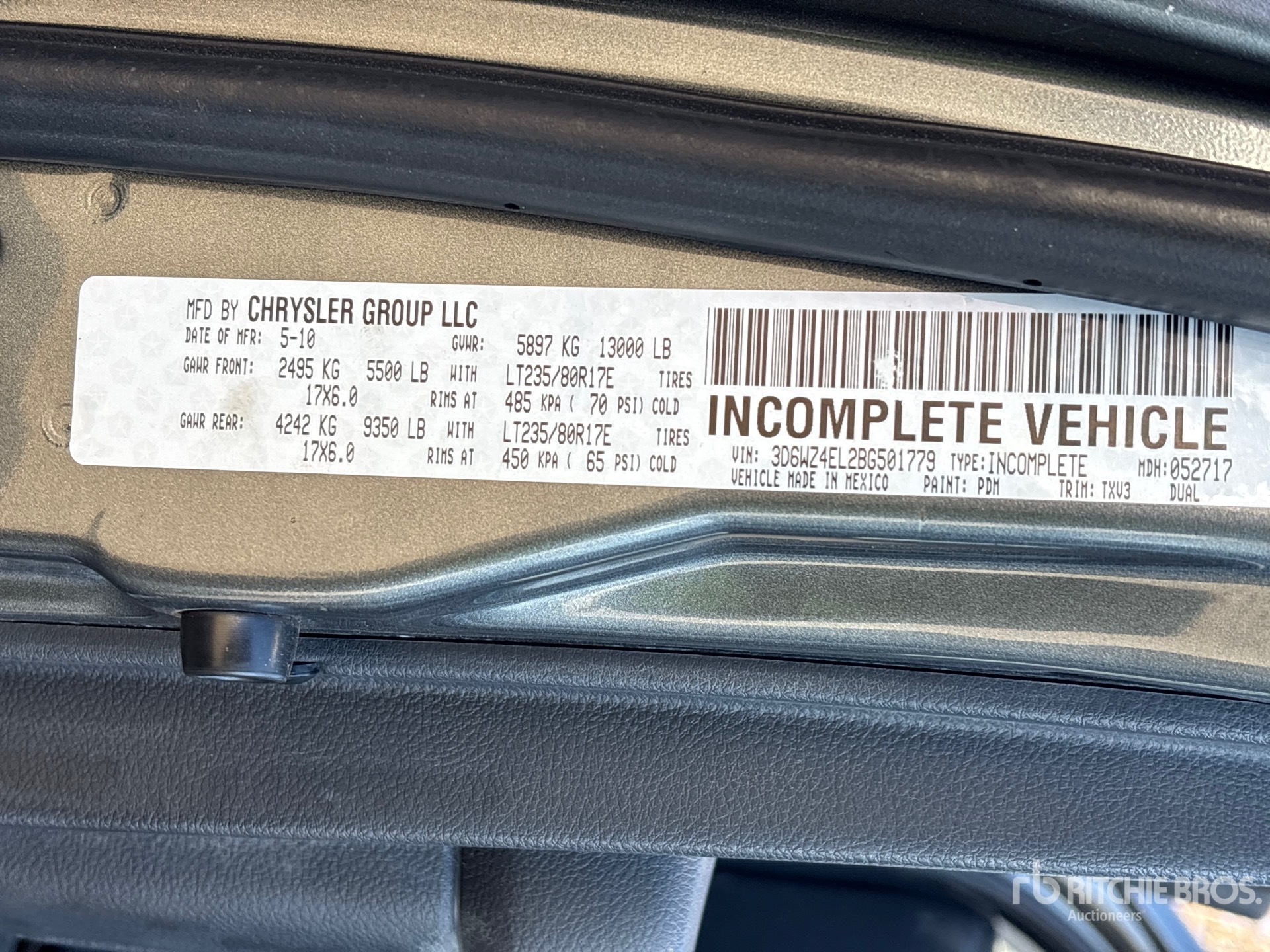 详细的设备信息范围有限,且除本文明确列出的方面或组件外,利氏兄弟拍卖公司并未检查设备中的任何其他方面或组件。除非另有明确声明,我们不会对设备或其组件作出任何形式的明示或暗示的陈述或保证。这包括但不限于关于功能、符合或遵循任何适用权力机构或监管机构的安全标准或要求、适用于任何特定用途,或者适销性的任何陈述或保证。我们强烈建议您在竞拍之前自行对设备进行详细检查。