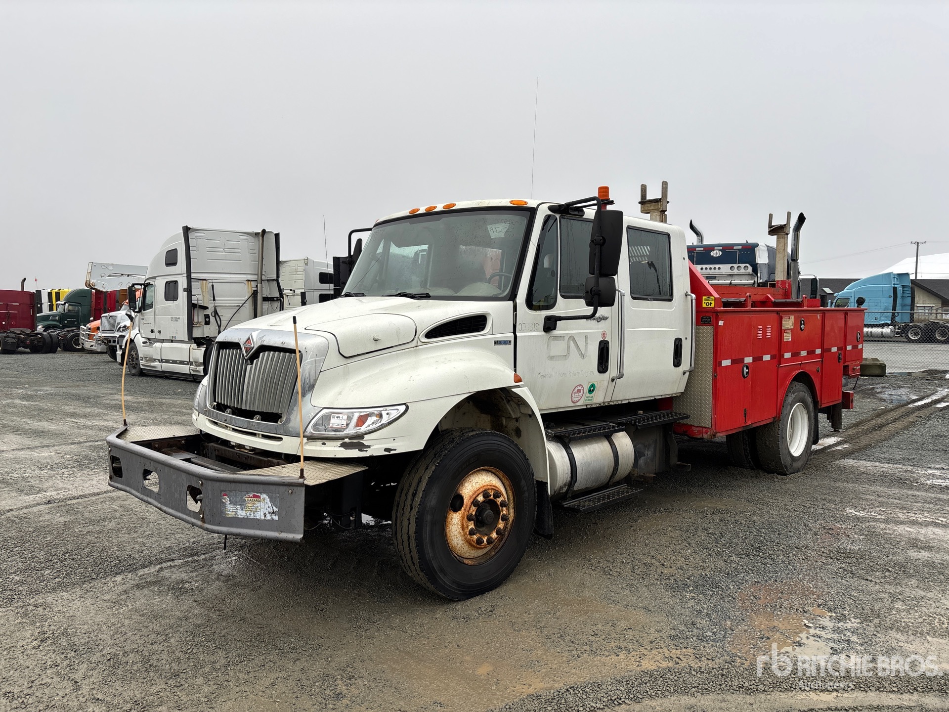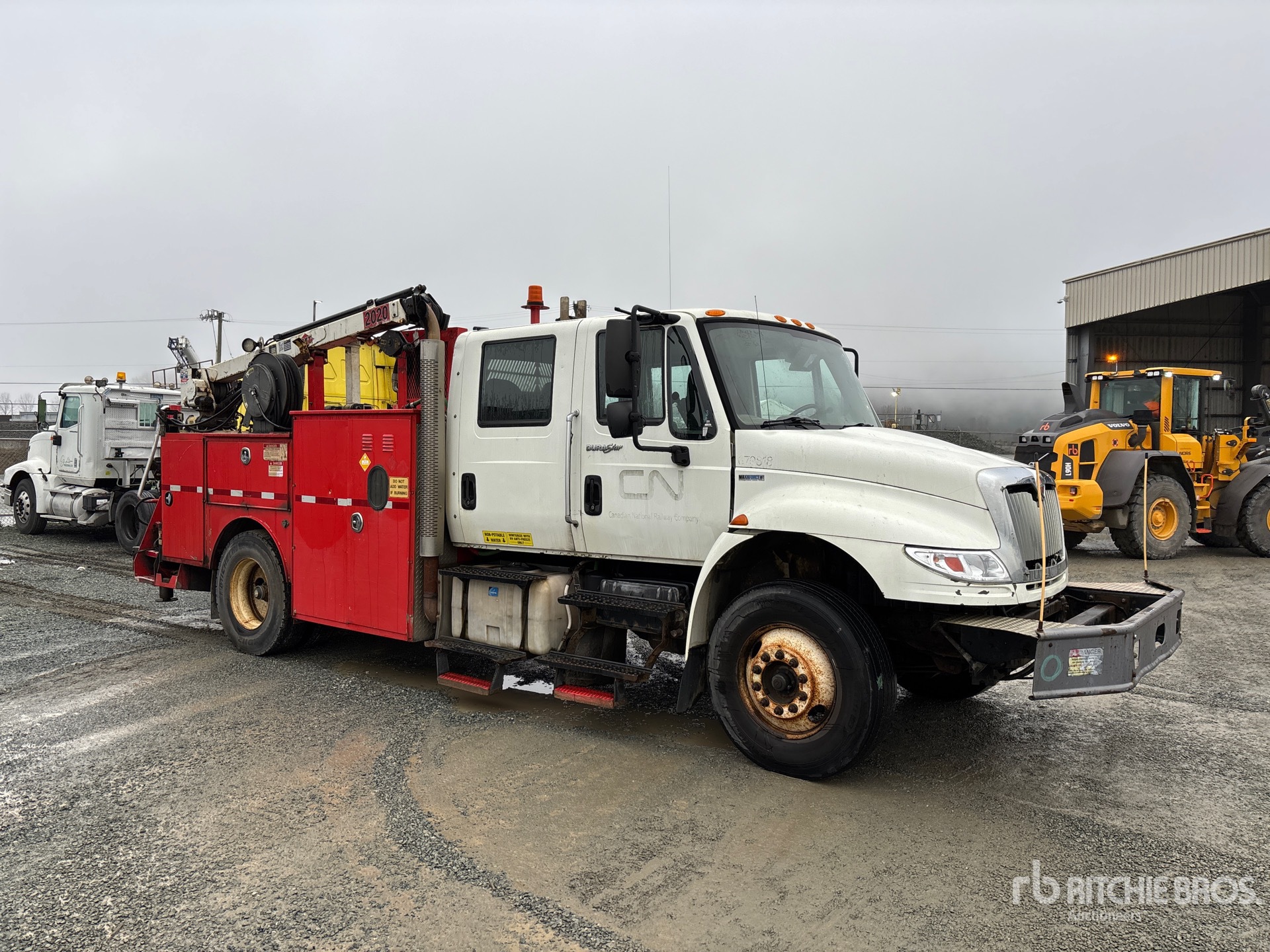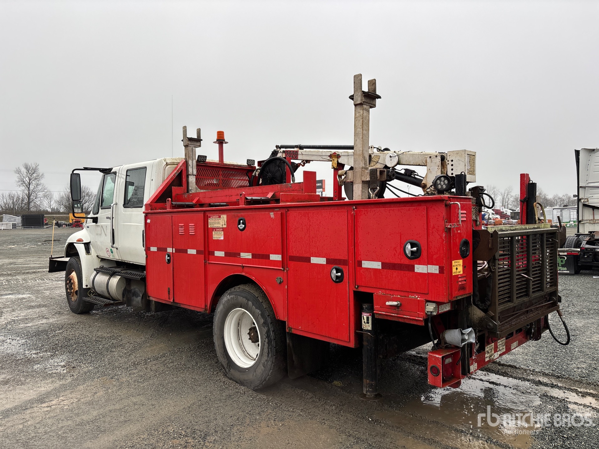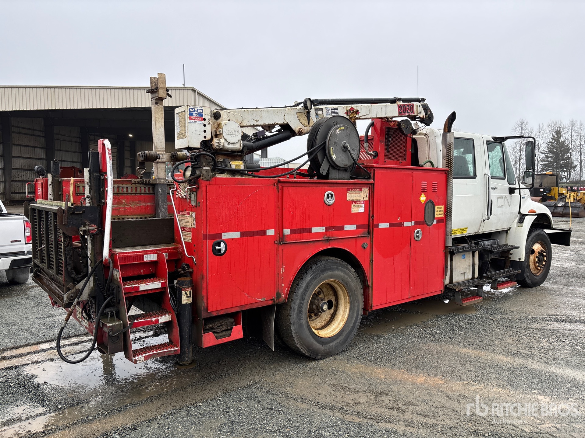 International Diesel Engine, 17496 Engine hrs, 12000 lb Front Axle, 19000 lb Rears, 31000 lb GVWR, Air Ride Cab, 11R22.5, Spring Suspension, 195 in Wheelbase, 14 ft 2 in Body, Hydraulic Stabilizers, Hydraulic Lift Gate, 2010 Imt 2020 5000 lb 2 Section Hydraulic Crane, Wired Remote Control