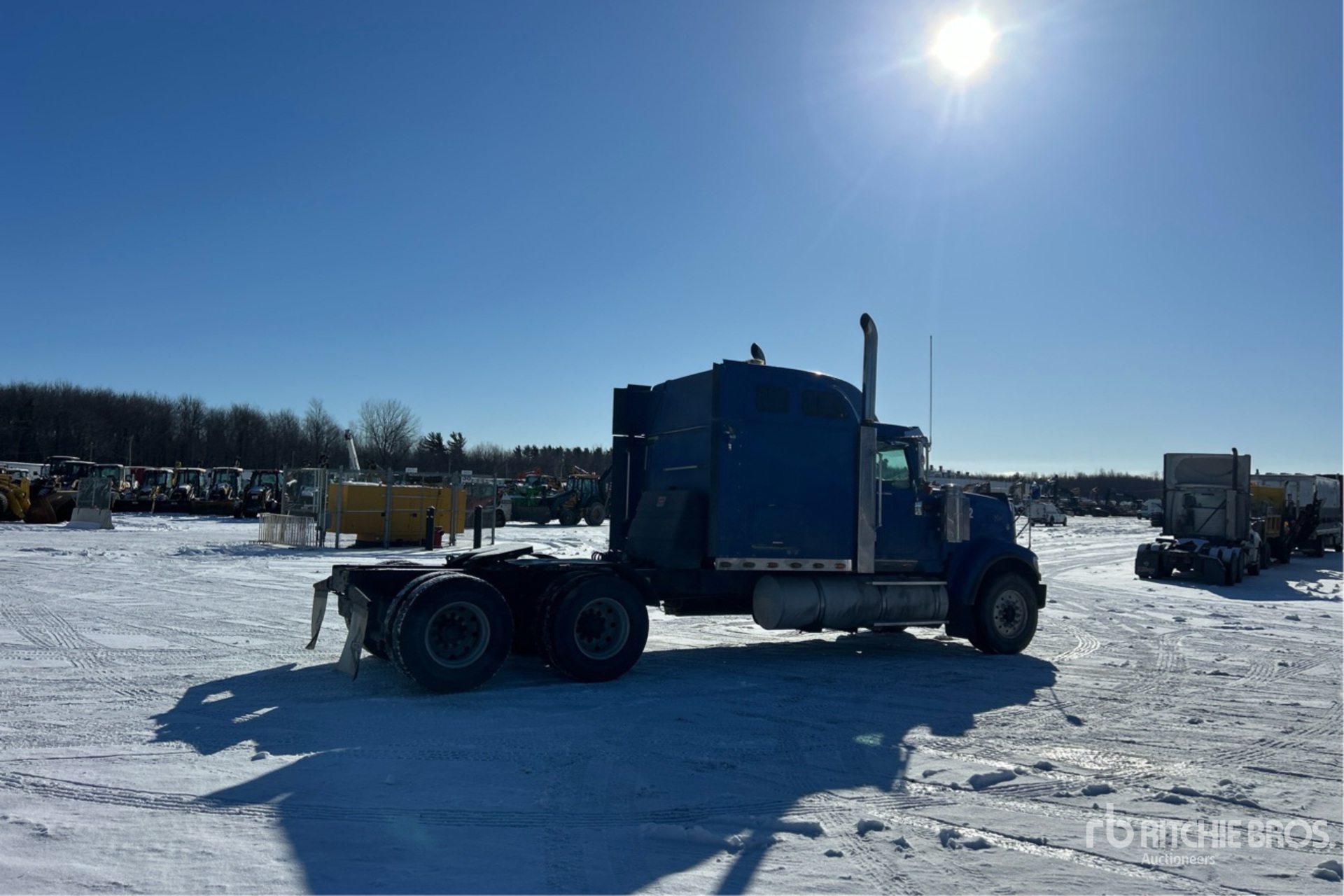 Cummins ISX 550 hp Engine, 2009 US EPA Label, 18845 Engine hrs, Eaton Fuller 18-Speed 13220 lb Front Axle, 46000 lb Rears, 59220 lb GVWR, Engine Brake, 72 in Mid Roof Sleeper Cab, 246 in Wheelbase, Air Suspension, Aluminum Outer Wheels, 385/65R22.5 Front Tires, 315/80R22.5 Rear Tires, Double Frame, Wet Kit, Air Sliding 5th Wheel, Dual Fuel Tanks