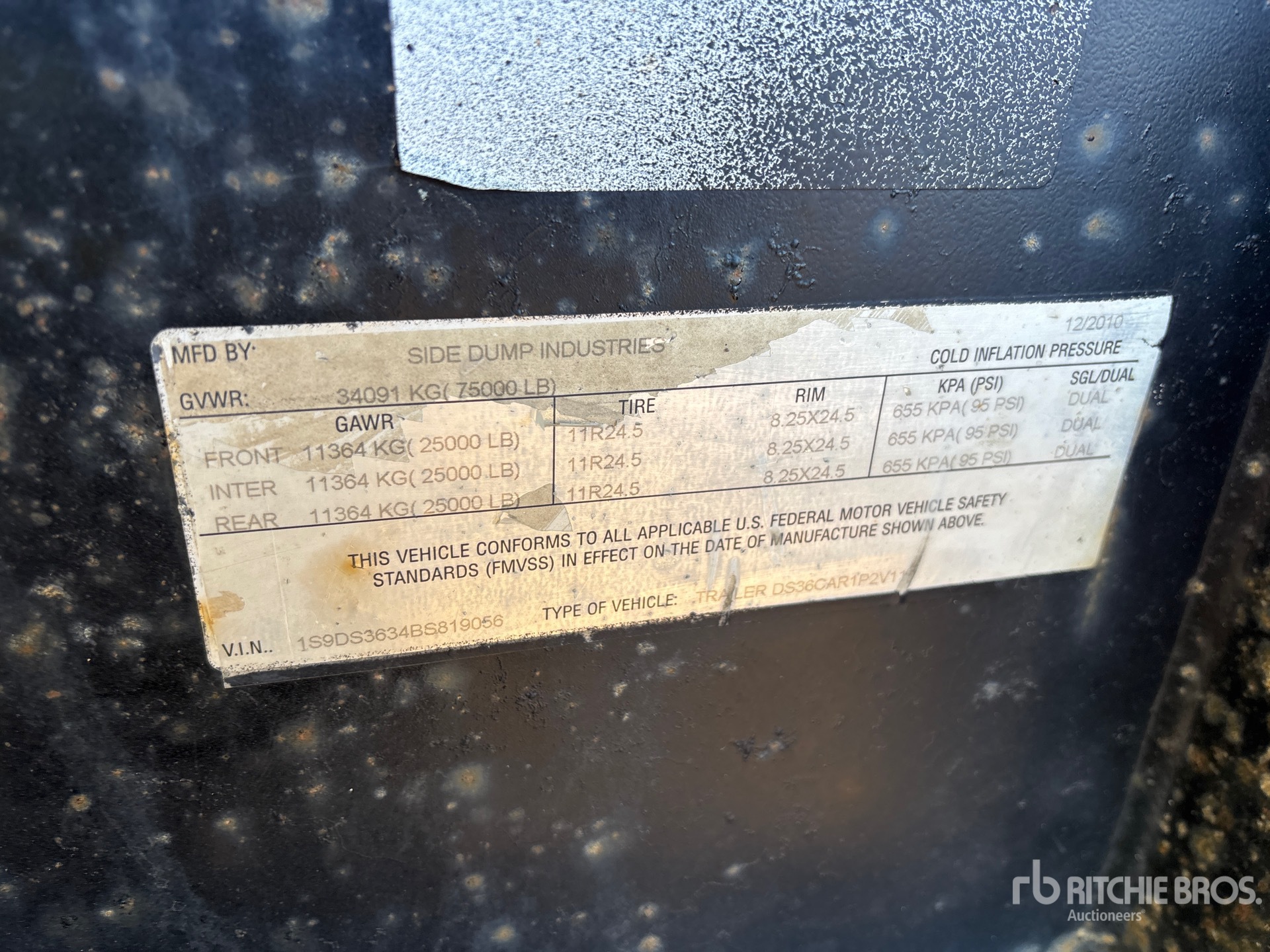 Air Ride Suspension, Dumps to Both Sides, 36 in Side Walls, Steel Body, Manual Roll Tarp, 11R22.5 Tires, 75000 lb GVWR
