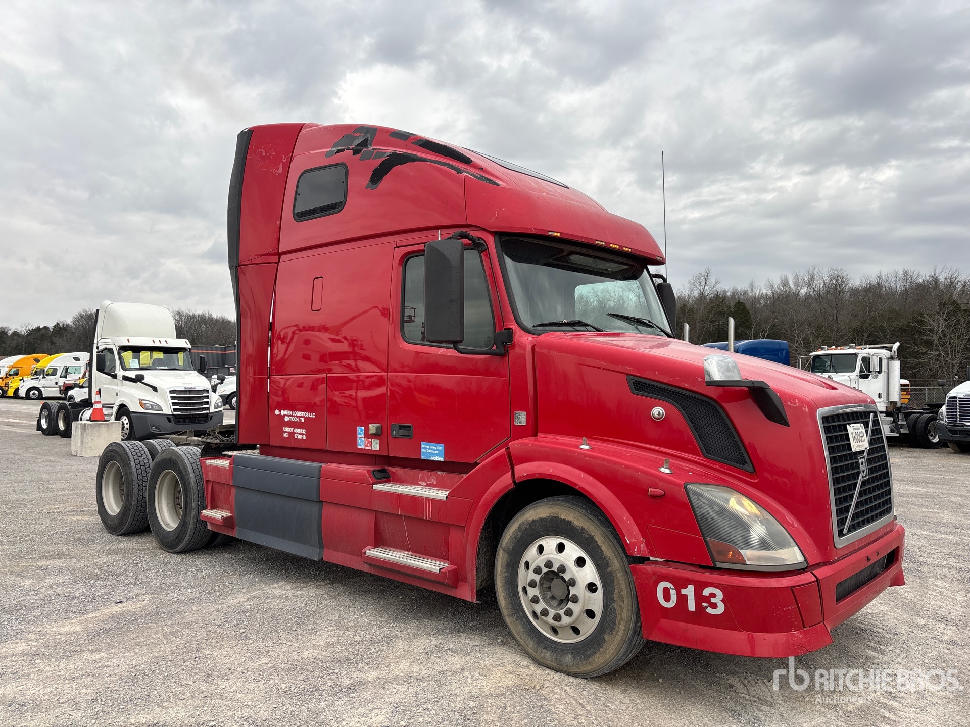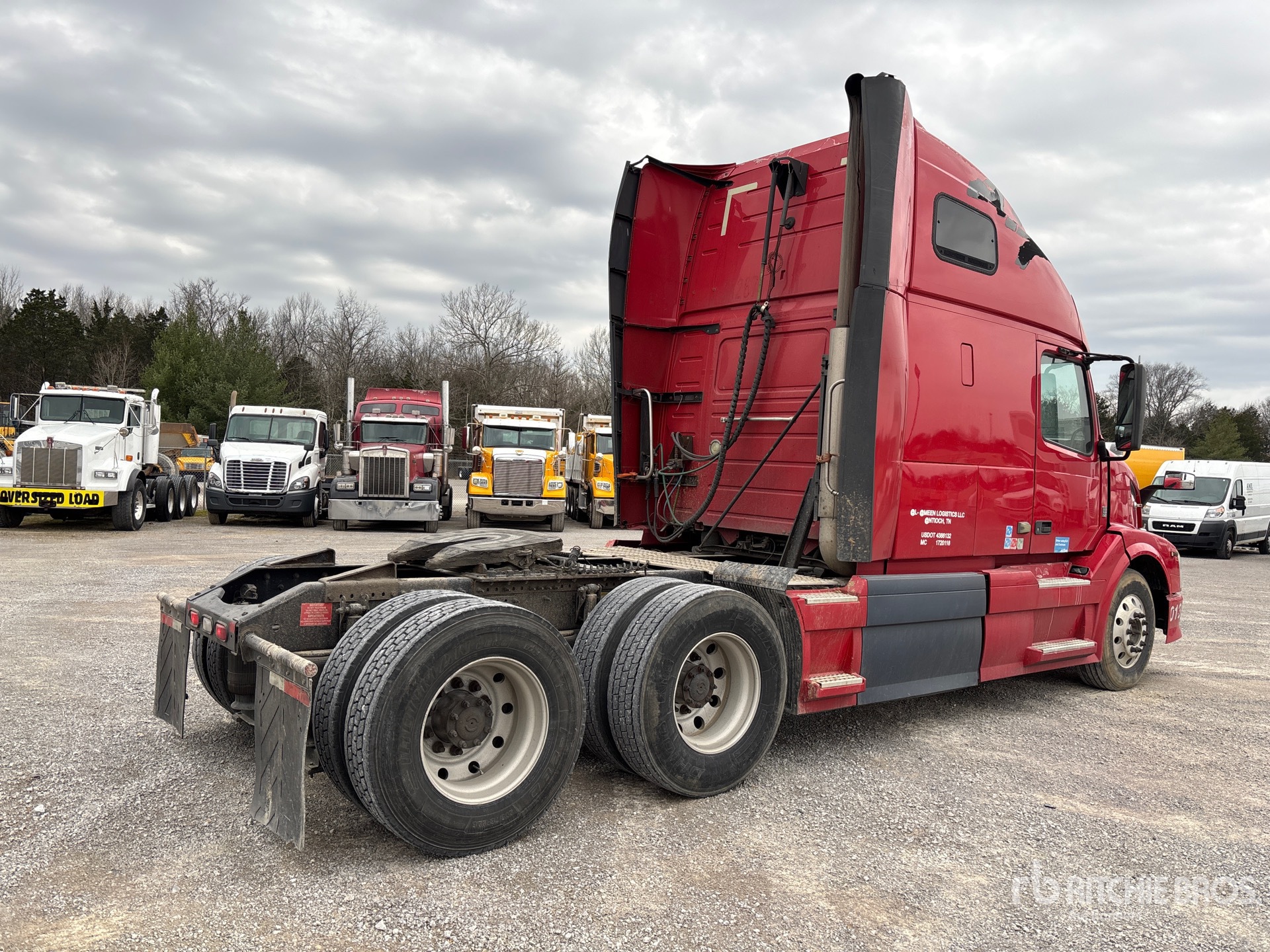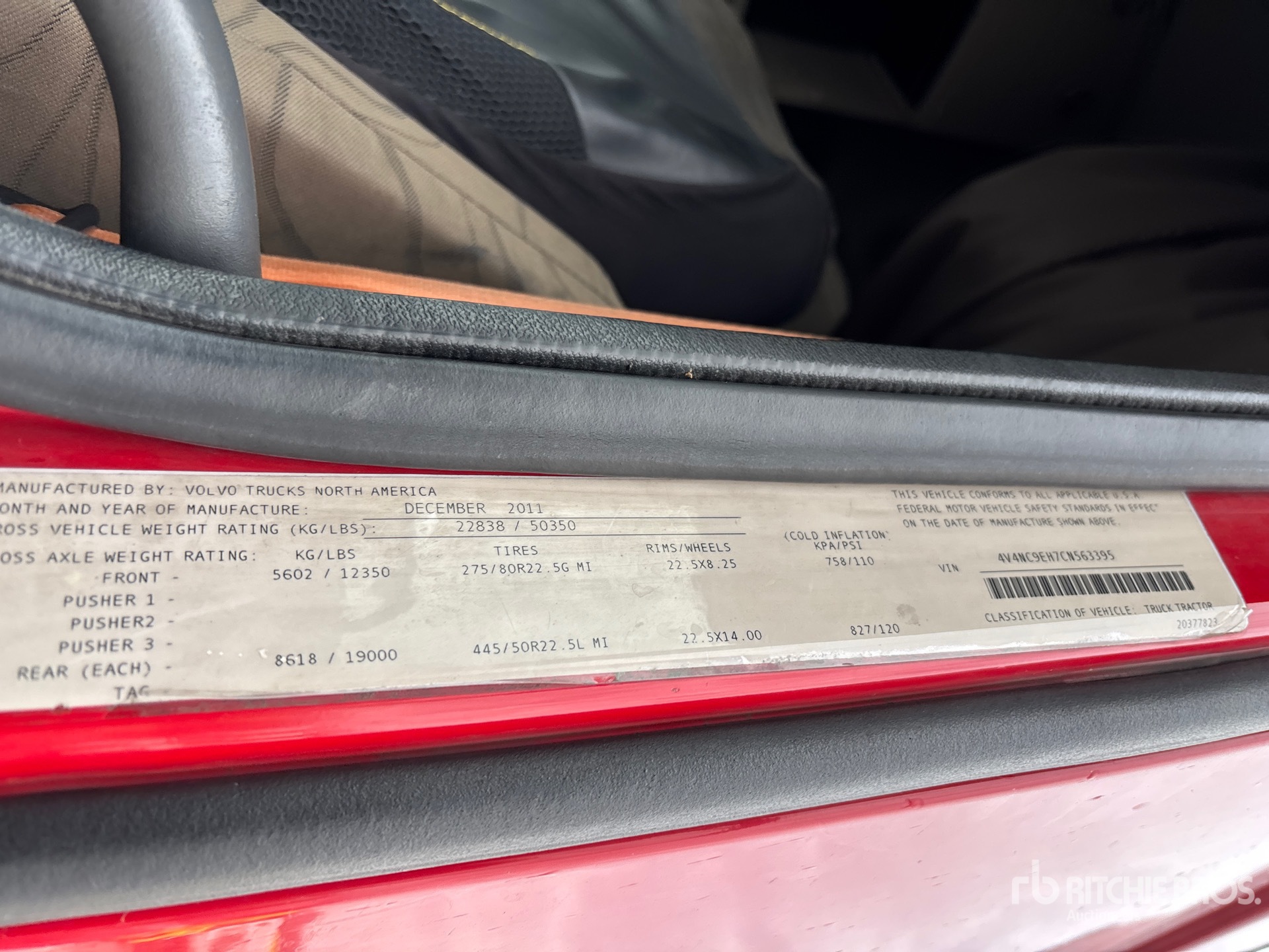 Volvo D13H 425 hp Engine, 2011 US EPA Label, 5358 Engine hrs, Volvo AT2612D 12-Speed Automated Transmission, 12350 lb Front Axle, 38000 lb Rears, 50350 lb GVWR, Engine Brake, 61 in High Rise Sleeper Cab, Bunk Beds, 204 in Wheelbase, Air Suspension, Aluminum Outer Wheels, 295/75R22.5, Air Sliding 5th Wheel, Dual Fuel Tanks