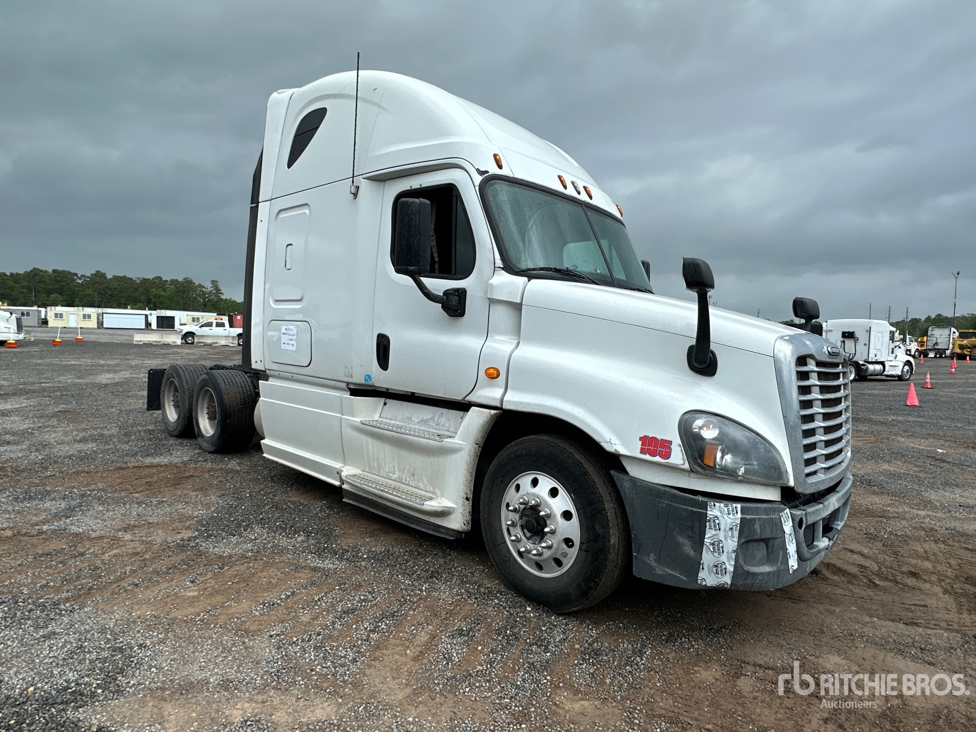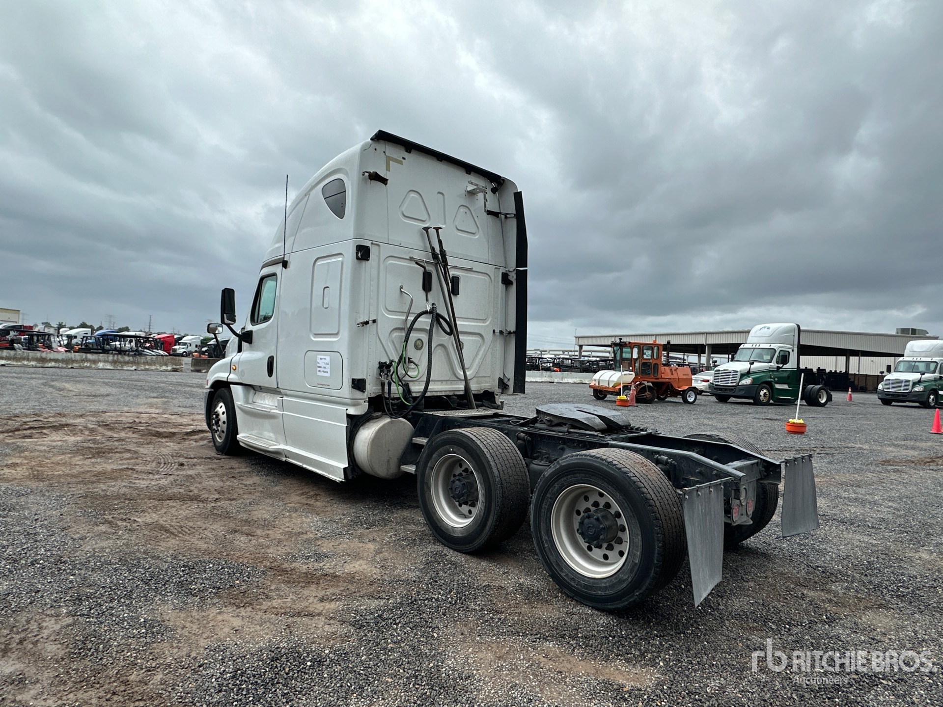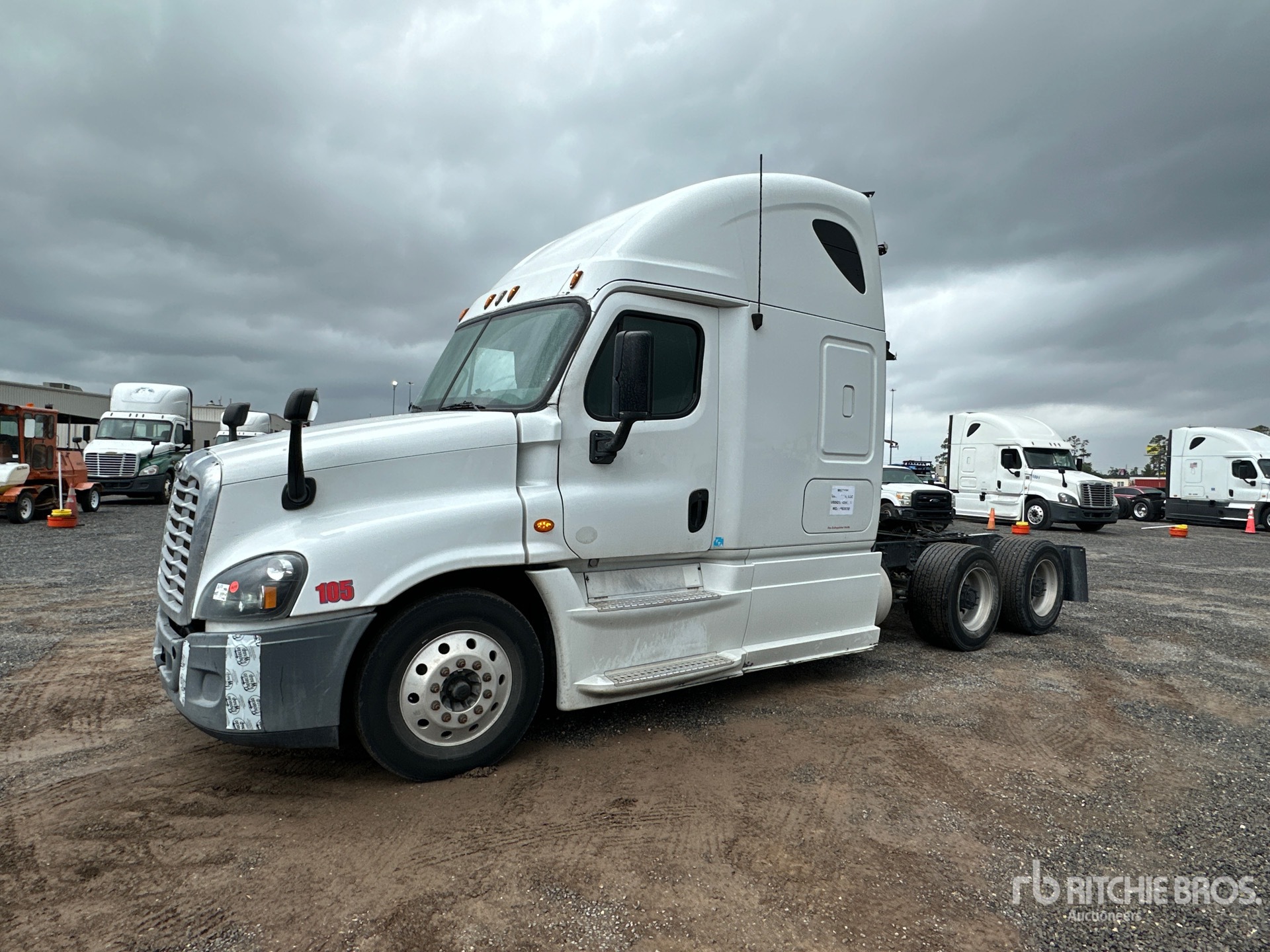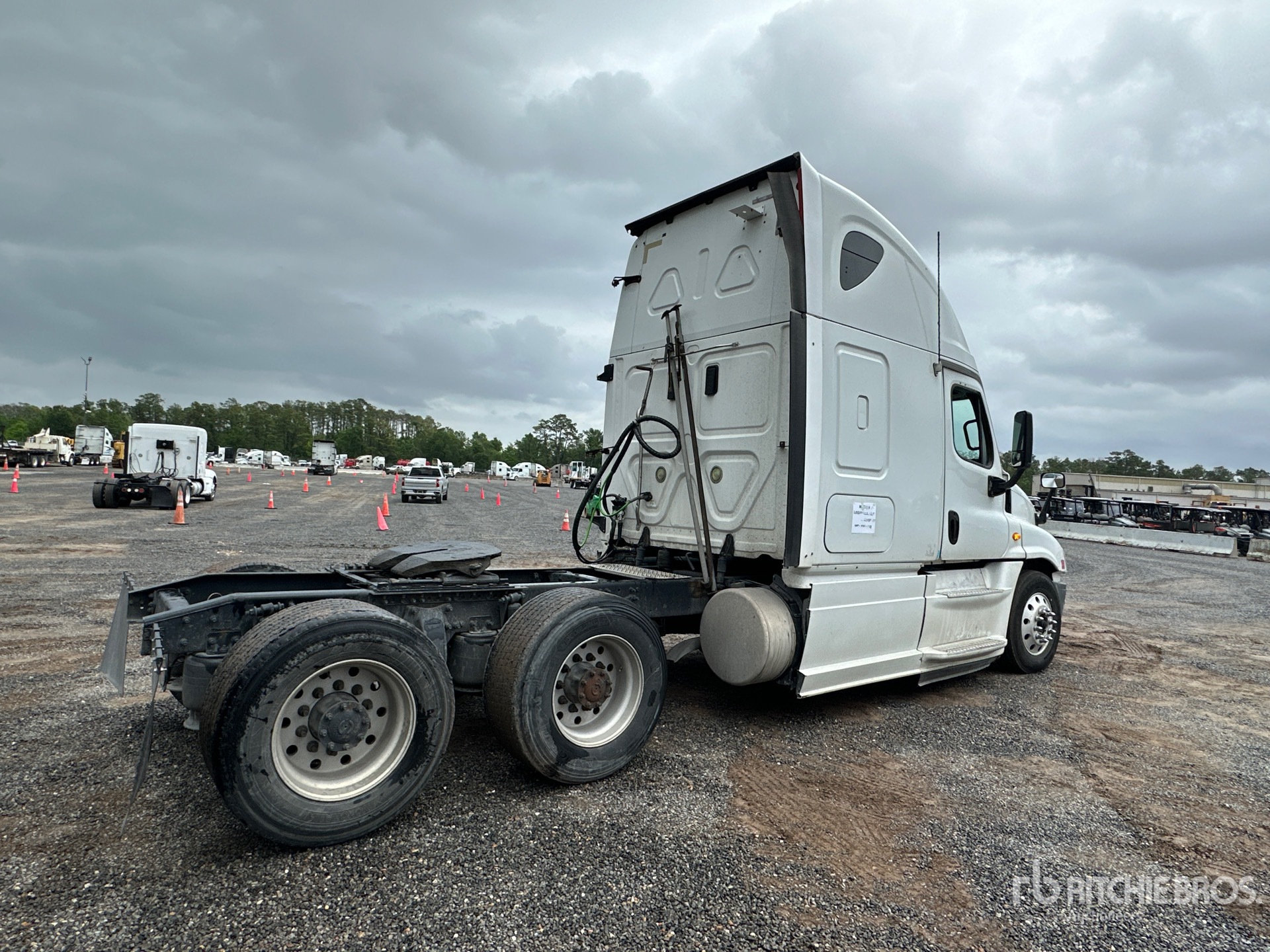 Located in Lane 28 Spot 14, Detroit DD15 455 hp Engine, 2012 US EPA Label, 35736 Engine hrs, Eaton Fuller FRO-15210C 10-Speed Manual Transmission, 12000 lb Front Axle, 40000 lb Rears, 52000 lb GVWR, Engine Brake, 60 in High Rise Sleeper Cab, Bunk Beds, Auxiliary Power Unit, 225 in Wheelbase, Air Suspension, Aluminum Wheels, 295/75R22.5 Front Tires, 445/50R22.5 Super Singles Rear Tires, Air Sliding 5th Wheel, Dual Fuel Tanks