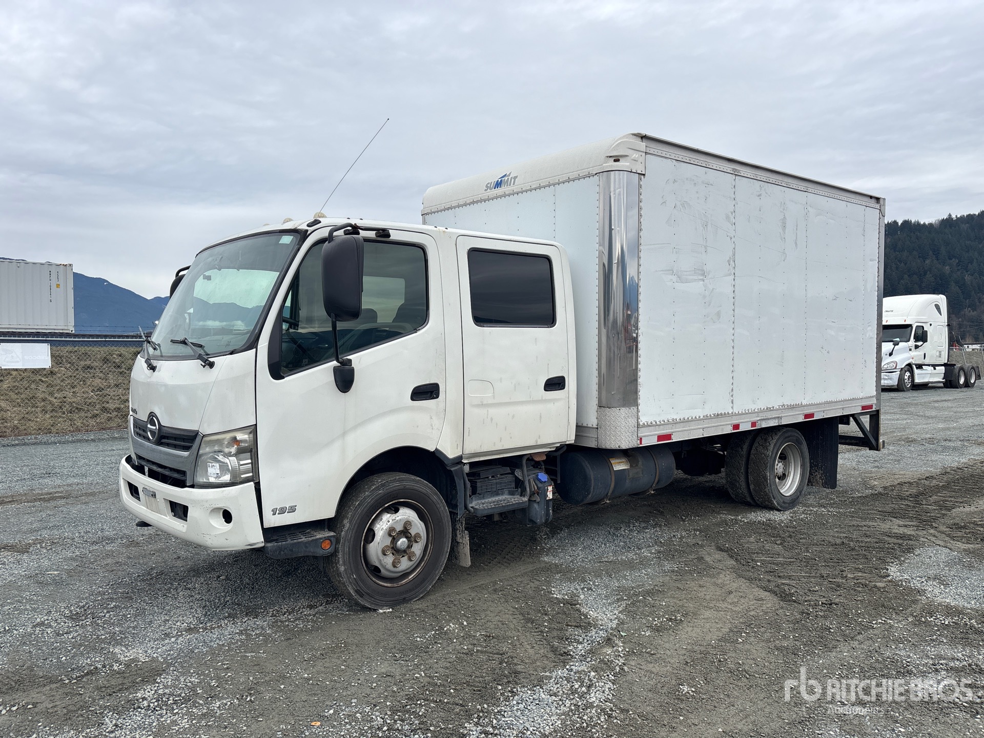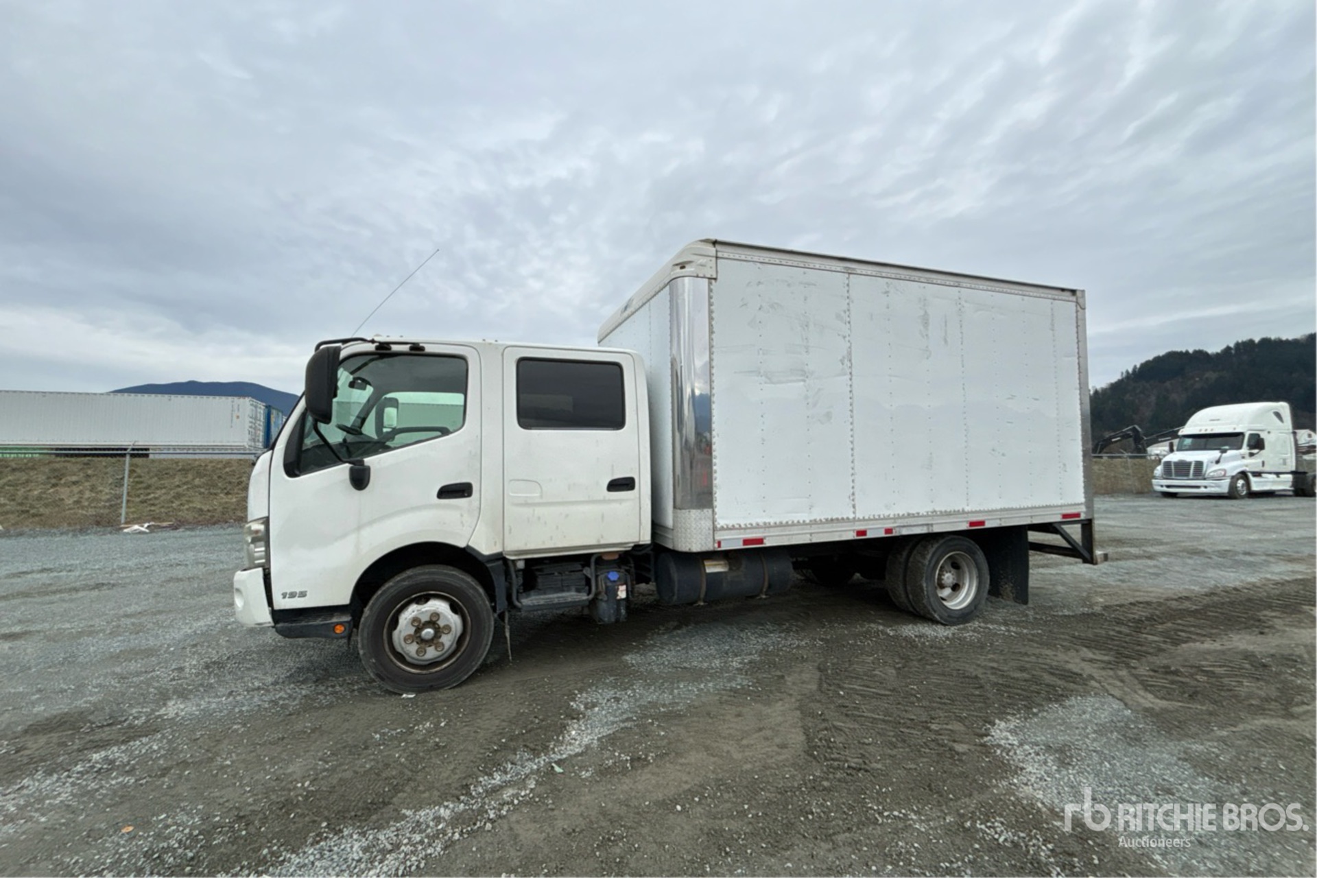 Hino J0E5-TP 4 Cylinder Diesel Engine, Requires Diesel Exhaust Fluid, Exhaust Brake, Automatic Transmission, 6830 lb Front Axle, 13660 lb Rears, 19500 lb GVWR, 225/70R19.5, Spring Suspension, 174 in Wheelbase, 14 ft x 96 in Wide x 84 in High Body