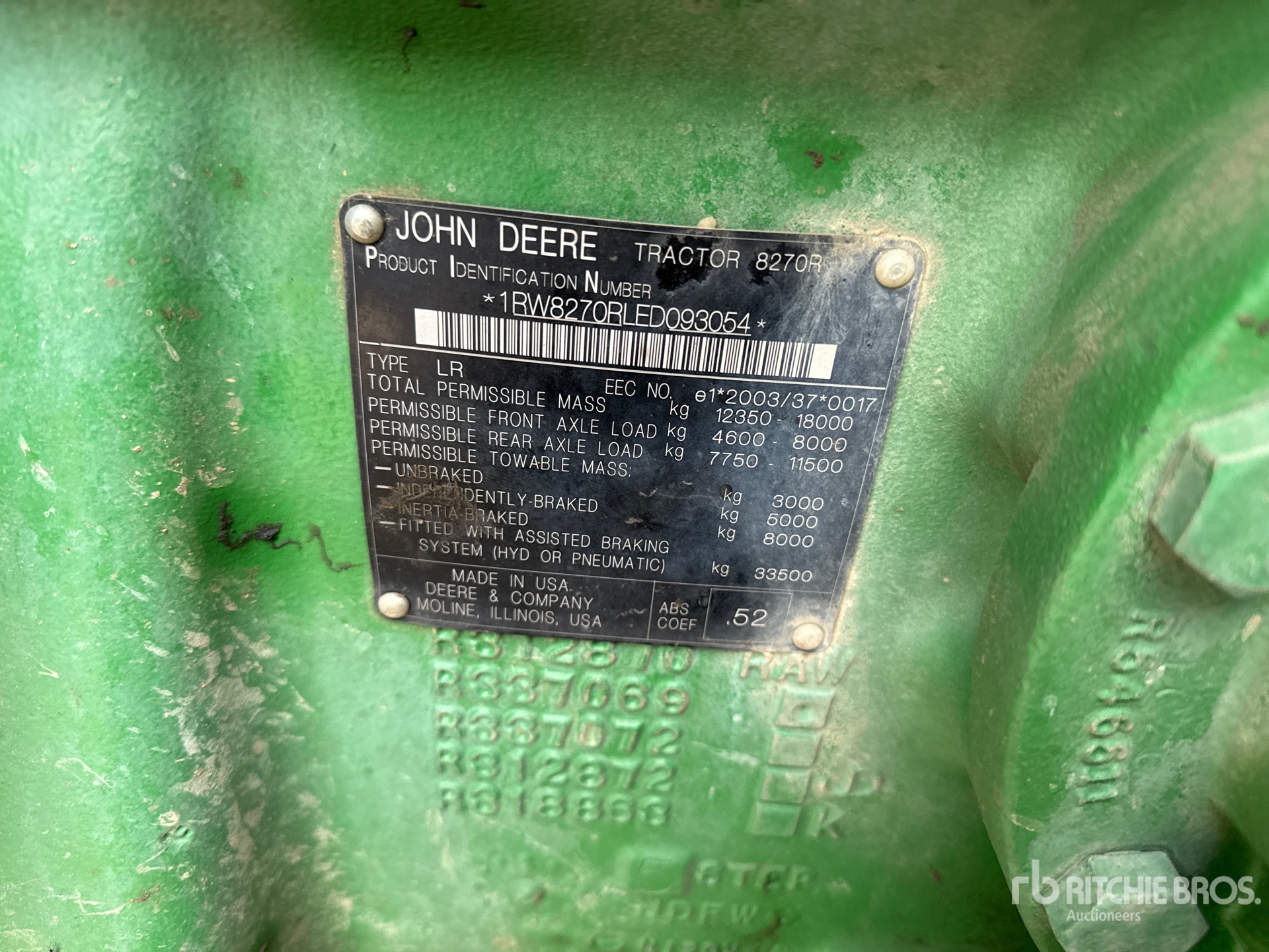 详细的设备信息范围有限,且除本文明确列出的方面或组件外,利氏兄弟拍卖公司并未检查设备中的任何其他方面或组件。除非另有明确声明,我们不会对设备或其组件作出任何形式的明示或暗示的陈述或保证。这包括但不限于关于功能、符合或遵循任何适用权力机构或监管机构的安全标准或要求、适用于任何特定用途,或者适销性的任何陈述或保证。我们强烈建议您在竞拍之前自行对设备进行详细检查。