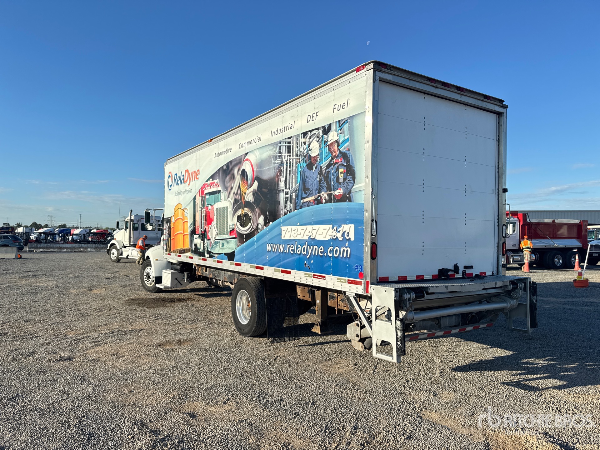 Located in Lane 34 Spot 30, Paccar PX-9 6 Cylinder 8.9 L Diesel Engine, 18376 Engine hrs, 6-Speed Automatic Transmission, 12000 lb Front Axle, 21000 lb Rears, Spicer Drive Axles, 33000 lb GVWR, Aluminum Wheels, 11R22.5, Air Ride Suspension, 264 in Wheelbase, US Truck Body 26 ft x 102 in Wide x Body, Liftgate