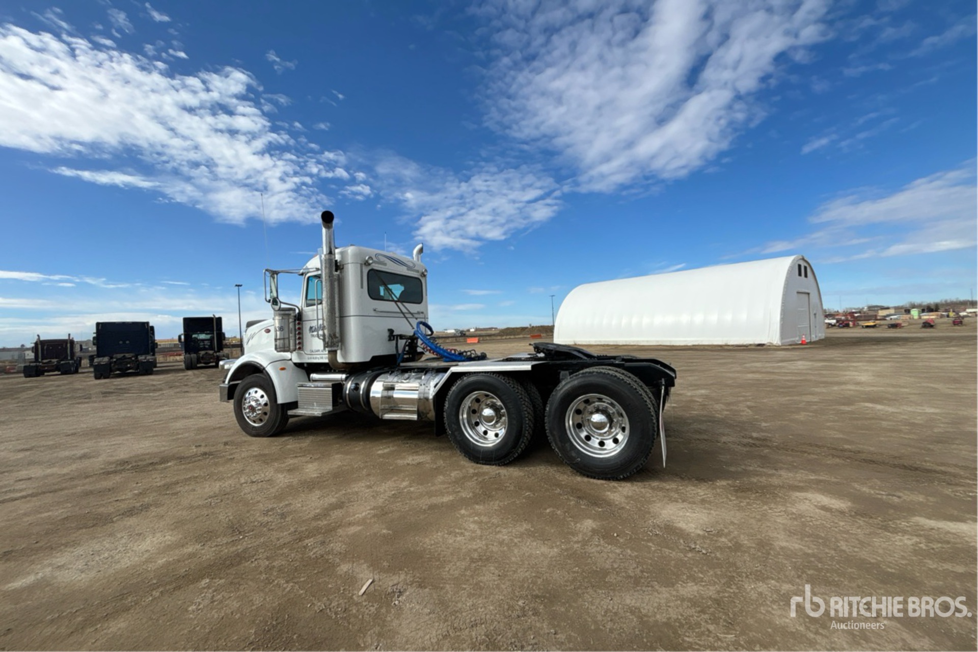 Located in Lane 34 Spot 8, Pre-Emission Cat C15 550 hp Engine, Engine Coolant Heater, 17160 Engine hrs, Eaton Fuller 18-Speed Manual Transmission, 16000 lb Front Axle, 46000 lb Rears, 62000 lb GVWR, Engine Brake, Double Differential Locks, 200 in Wheelbase, Air Suspension, Aluminum Wheels, 11R24.5, Dual Steering Boxes, Wet Kit, Air Sliding 5th Wheel, Dual Fuel Tanks