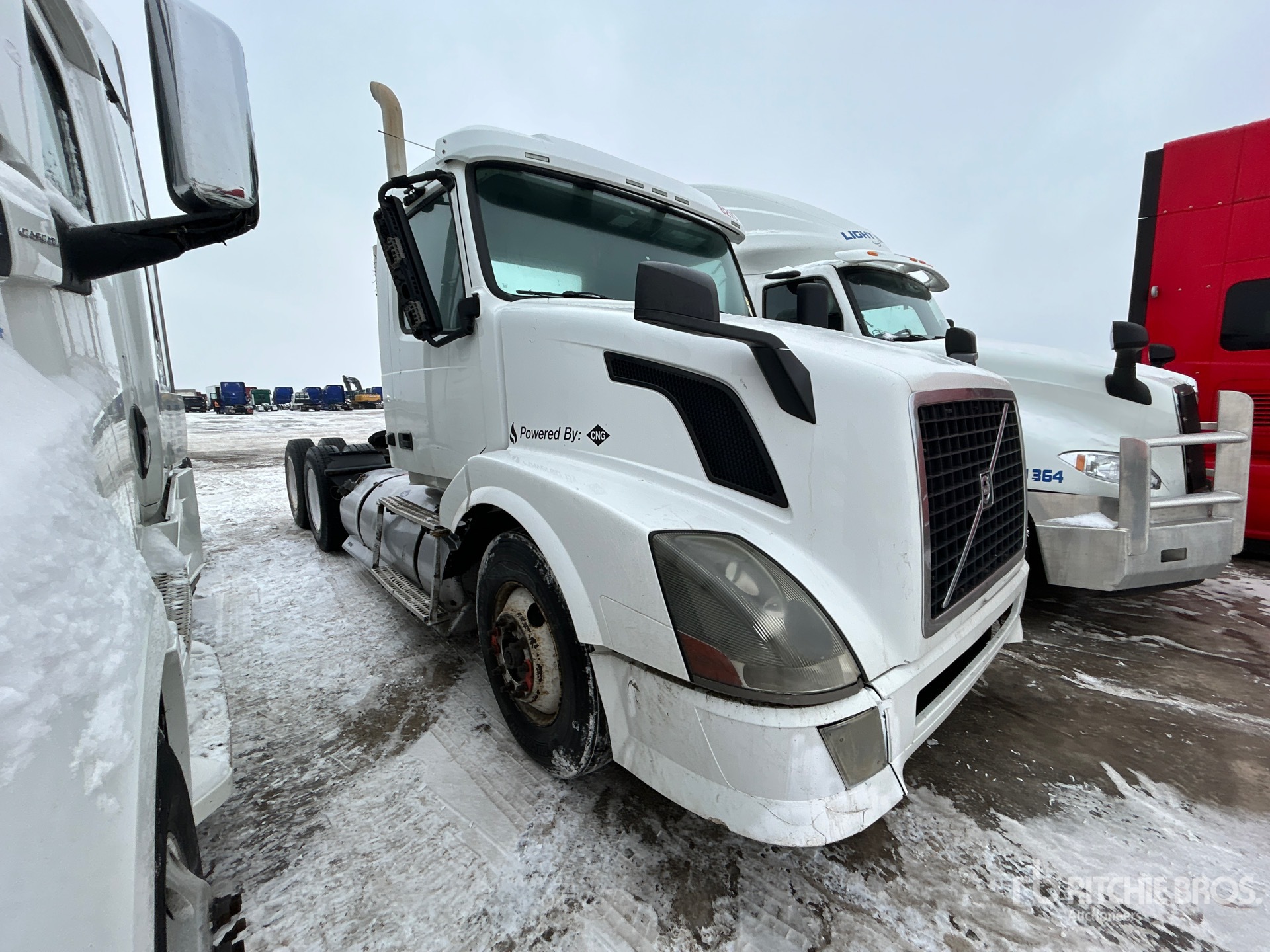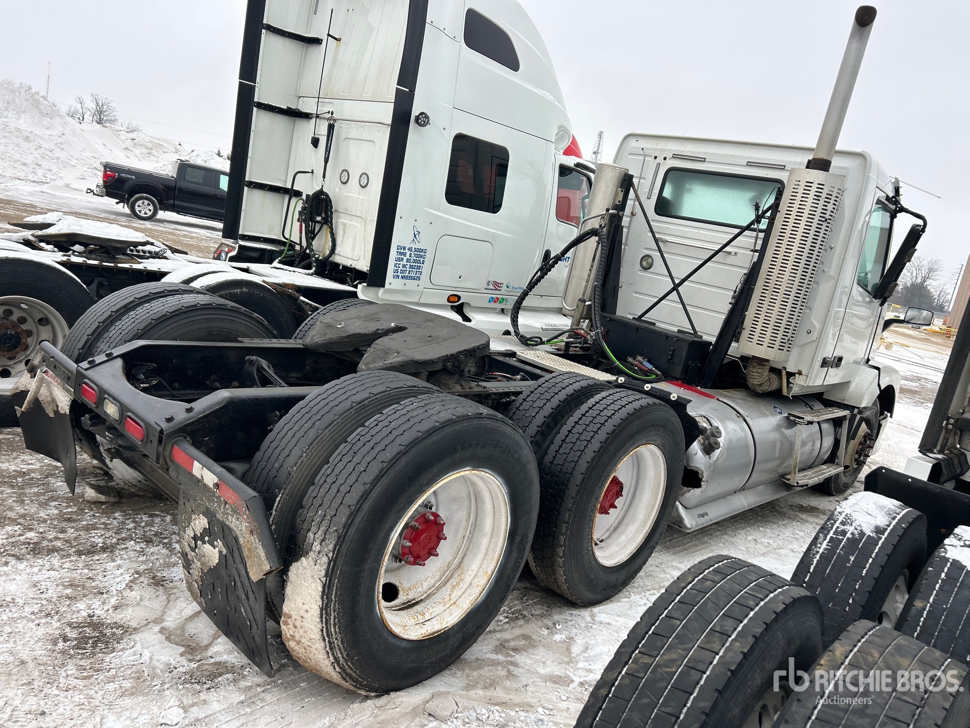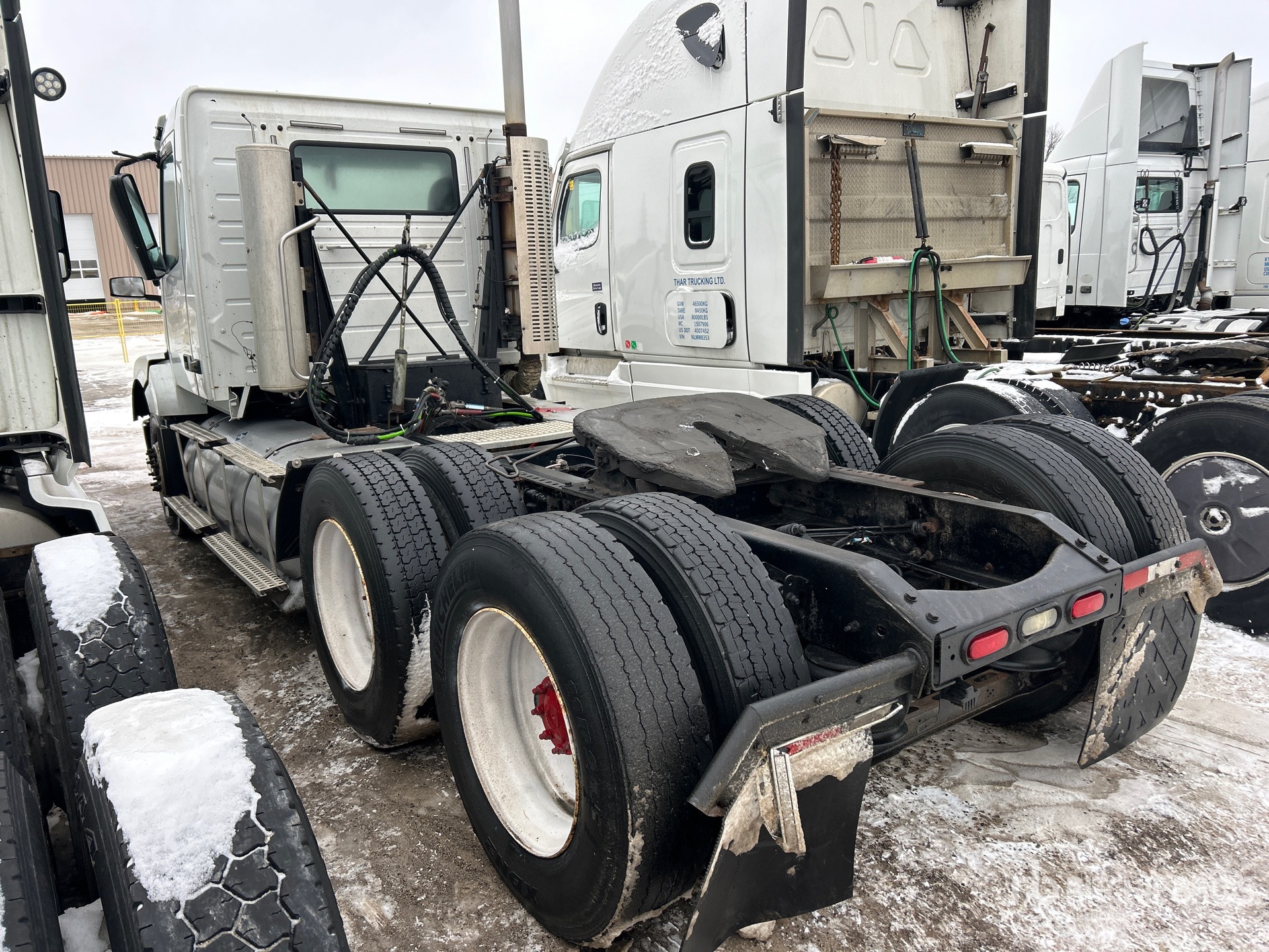 Located in Lane Construction fence, Cummins ISX12 350 hp Engine, 2013 US EPA Label, 6 -Speed Automatic Transmission, 13200 lb Front Axle, 38000 lb Rears, 51200 lb GVWR, Engine Brake, Air Suspension, 11R22.5, Ballrace 5th Wheel, Dual Fuel Tanks