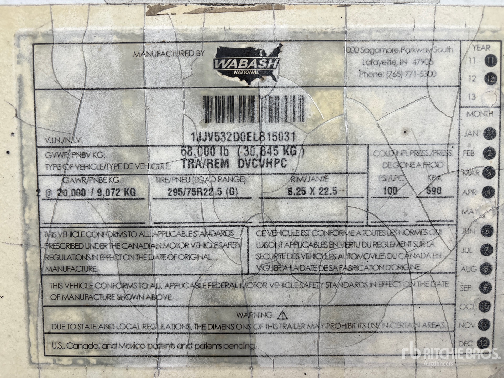 详细的设备信息范围有限,且除本文明确列出的方面或组件外,利氏兄弟拍卖公司并未检查设备中的任何其他方面或组件。除非另有明确声明,我们不会对设备或其组件作出任何形式的明示或暗示的陈述或保证。这包括但不限于关于功能、符合或遵循任何适用权力机构或监管机构的安全标准或要求、适用于任何特定用途,或者适销性的任何陈述或保证。我们强烈建议您在竞拍之前自行对设备进行详细检查。