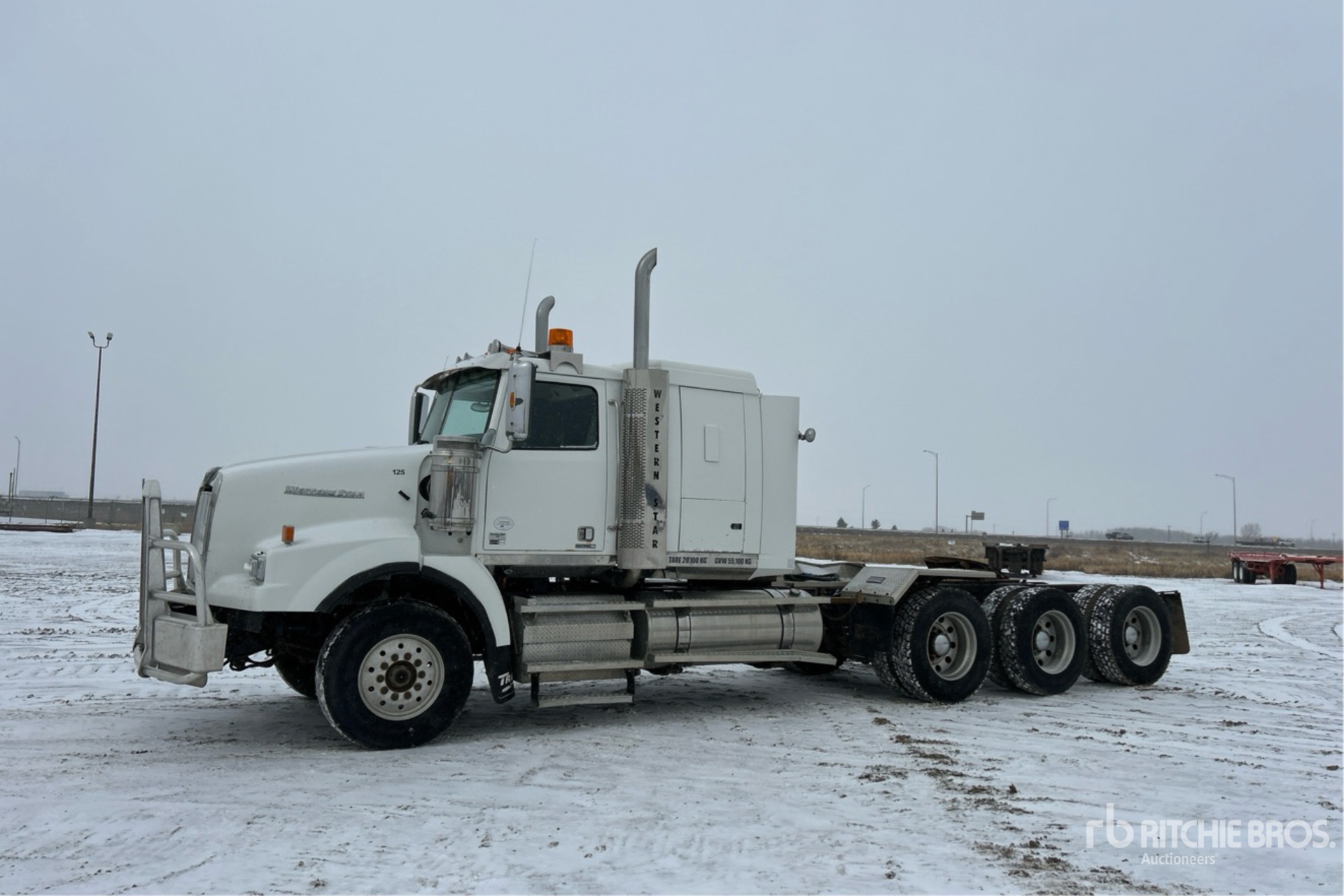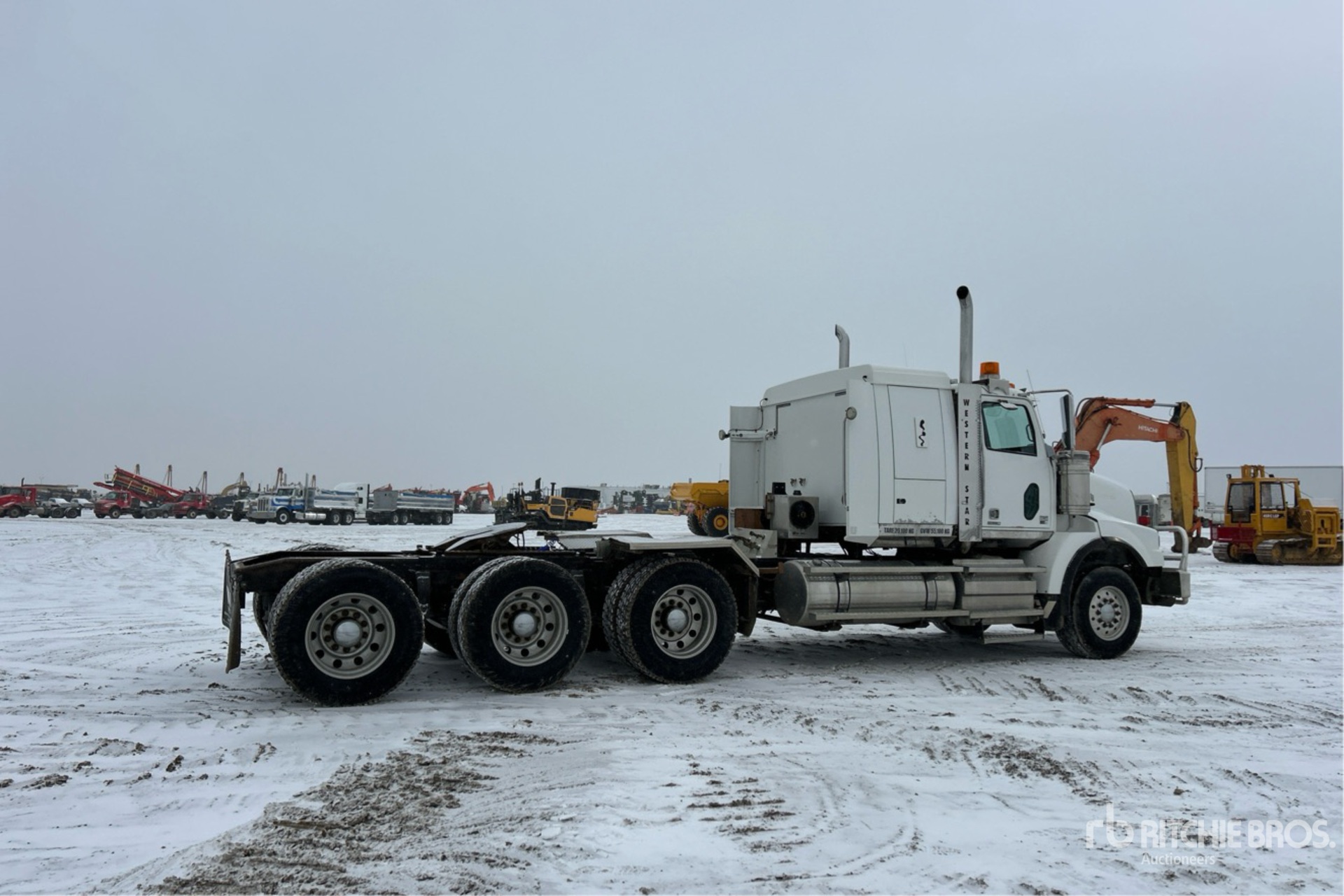 Located in Lane 37 Spot 11, Detroit DD16 560 hp Engine, Positive Air Shutoff, 2013 US EPA Label, 8064 Engine hrs, Eaton Fuller RTLO-18918B 18-Speed Manual Transmission, 18000 lb Front Axle, 55000 lb Rears, 73000 lb GVWR, Engine Brake, 36 in Flat Top Sleeper Cab, 260 in Wheelbase, Air Suspension, Aluminum Wheels, 385/65R22.5 Front Tires, 11R24.5 Rear Tires, Double Frame, Wet Kit, Air Sliding 5th Wheel, Dual Fuel Tanks, Complete-Dispersal-Von-Rose-Enterprises-Ltd