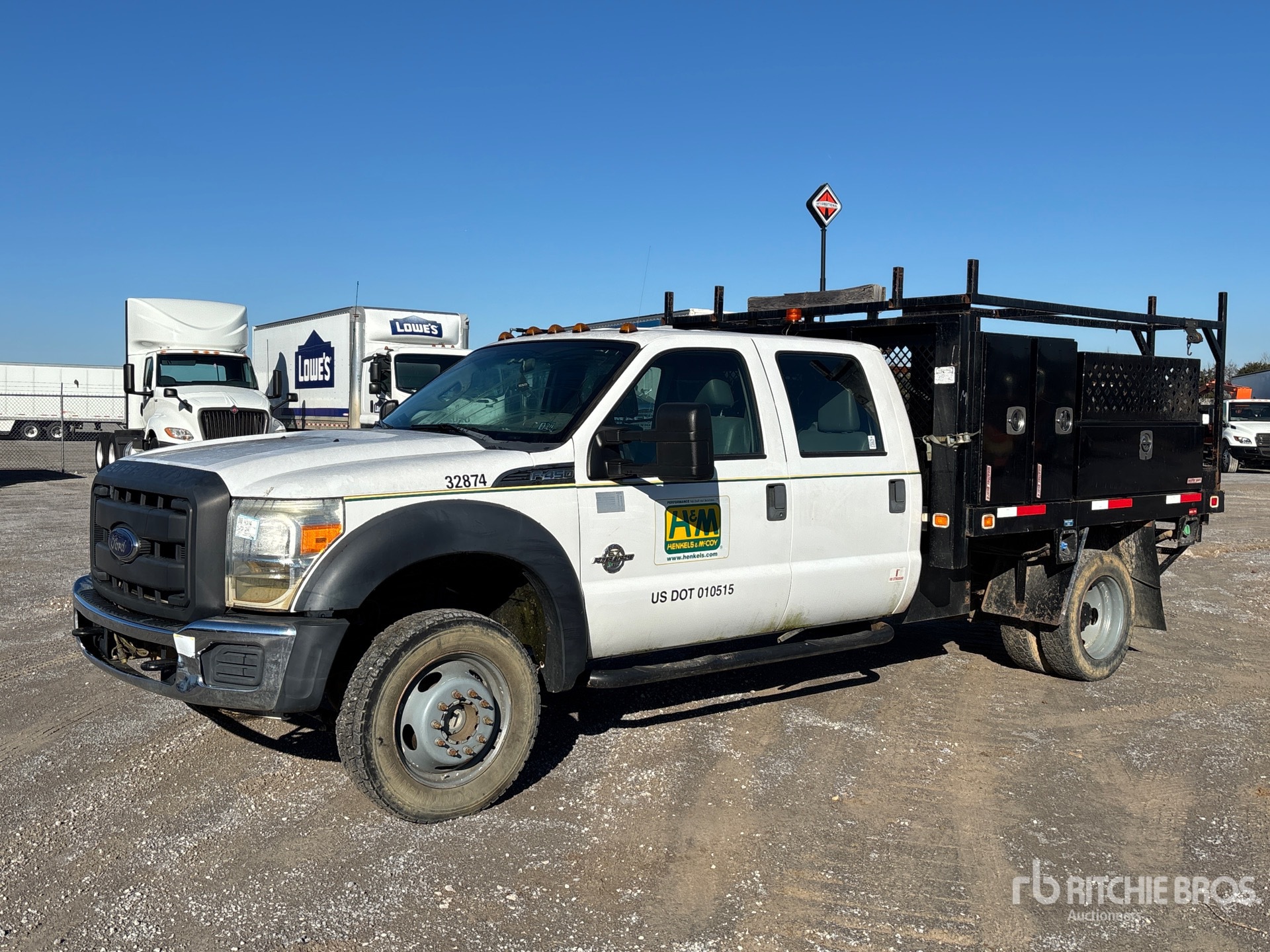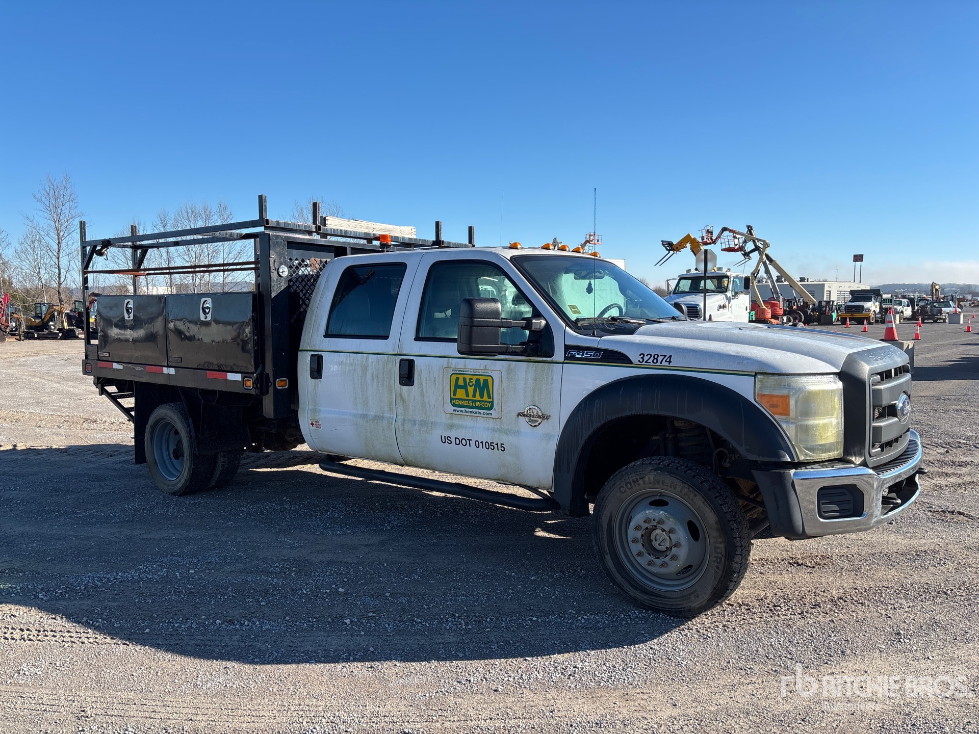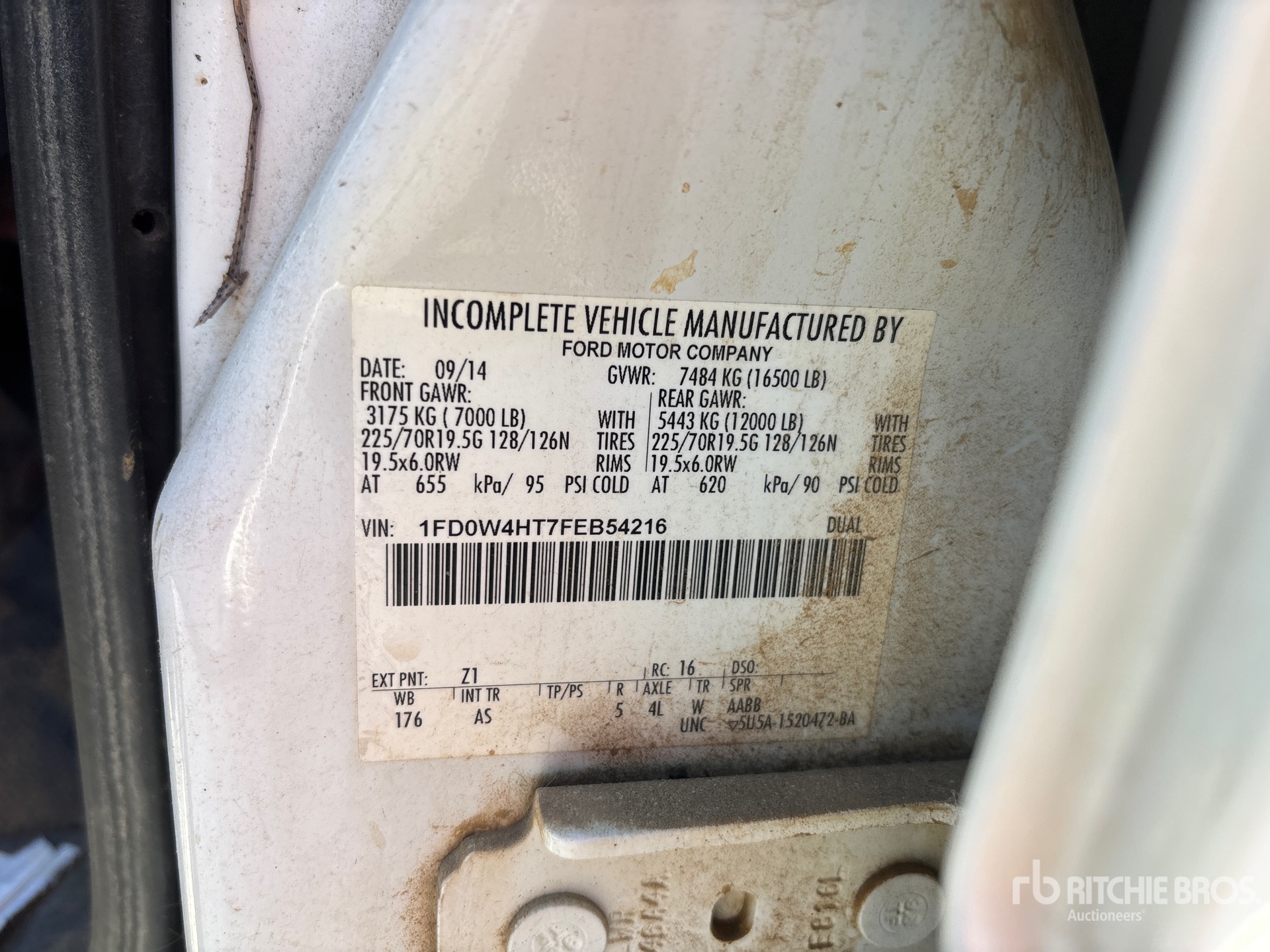 Ford V8 6.7 L Diesel 300 hp Engine, 2015 US EPA Label, Requires Diesel Exhaust Fluid, 6701 Engine hrs, Engine Brake, Automatic Transmission, 7000 lb Front Axle, 12000 lb Rears, 16500 lb GVWR, 225/70R19.5, Spring Suspension, 176 in Wheelbase, 9 ft 3 in x 96 in Bed, Ball hitch