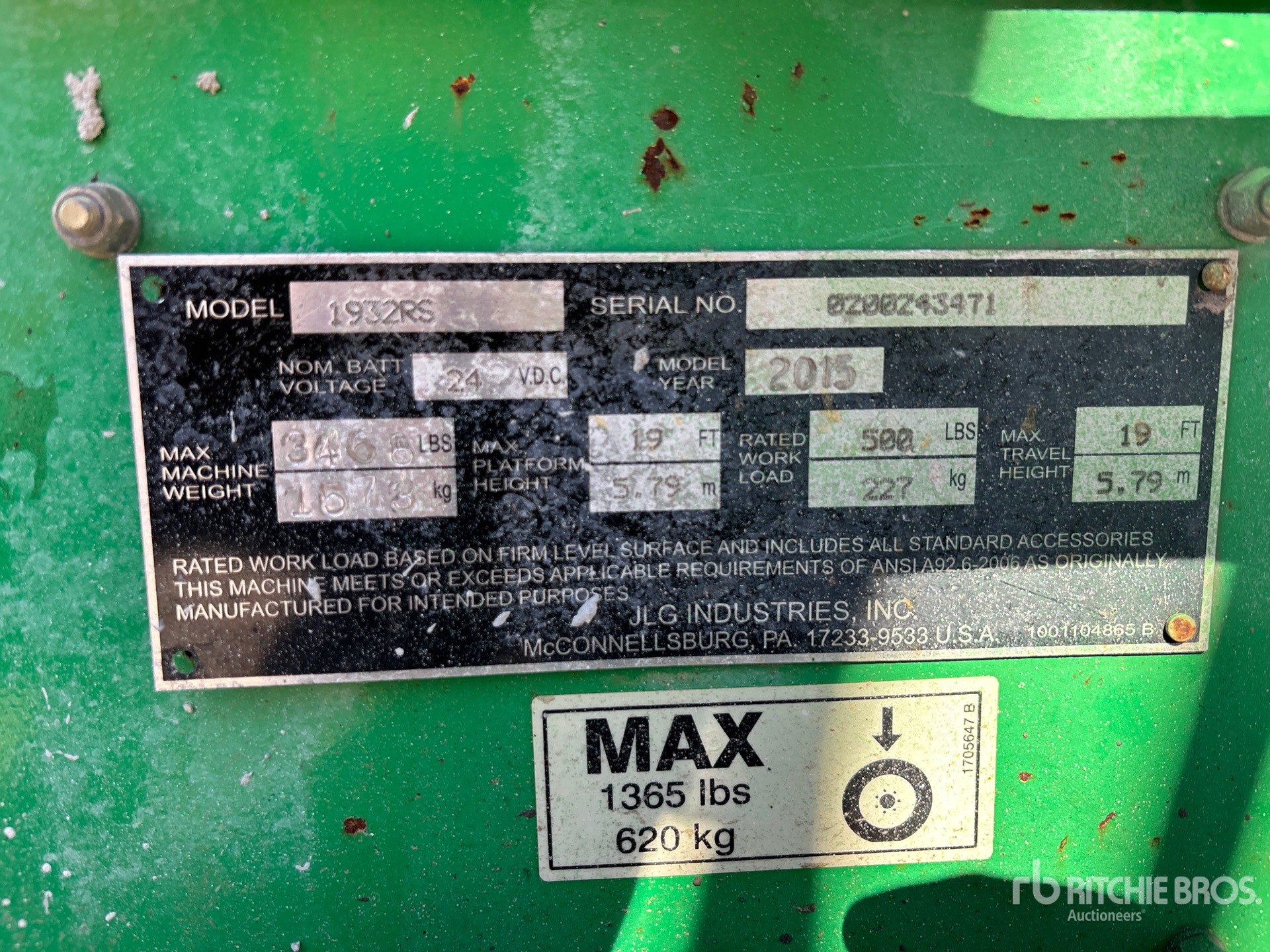 详细的设备信息范围有限,且除本文明确列出的方面或组件外,利氏兄弟拍卖公司并未检查设备中的任何其他方面或组件。除非另有明确声明,我们不会对设备或其组件作出任何形式的明示或暗示的陈述或保证。这包括但不限于关于功能、符合或遵循任何适用权力机构或监管机构的安全标准或要求、适用于任何特定用途,或者适销性的任何陈述或保证。我们强烈建议您在竞拍之前自行对设备进行详细检查。