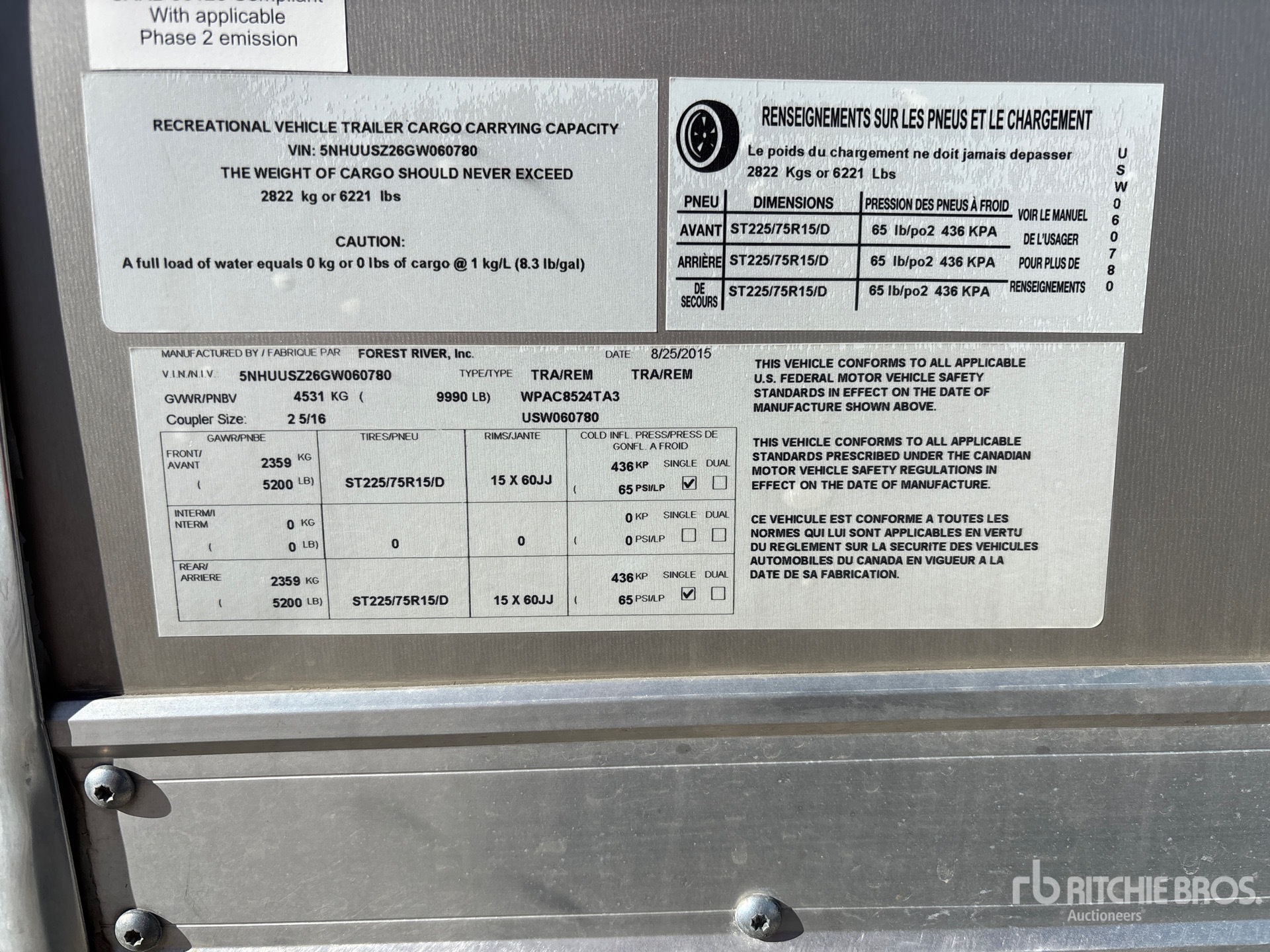 详细的设备信息范围有限,且除本文明确列出的方面或组件外,利氏兄弟拍卖公司并未检查设备中的任何其他方面或组件。除非另有明确声明,我们不会对设备或其组件作出任何形式的明示或暗示的陈述或保证。这包括但不限于关于功能、符合或遵循任何适用权力机构或监管机构的安全标准或要求、适用于任何特定用途,或者适销性的任何陈述或保证。我们强烈建议您在竞拍之前自行对设备进行详细检查。