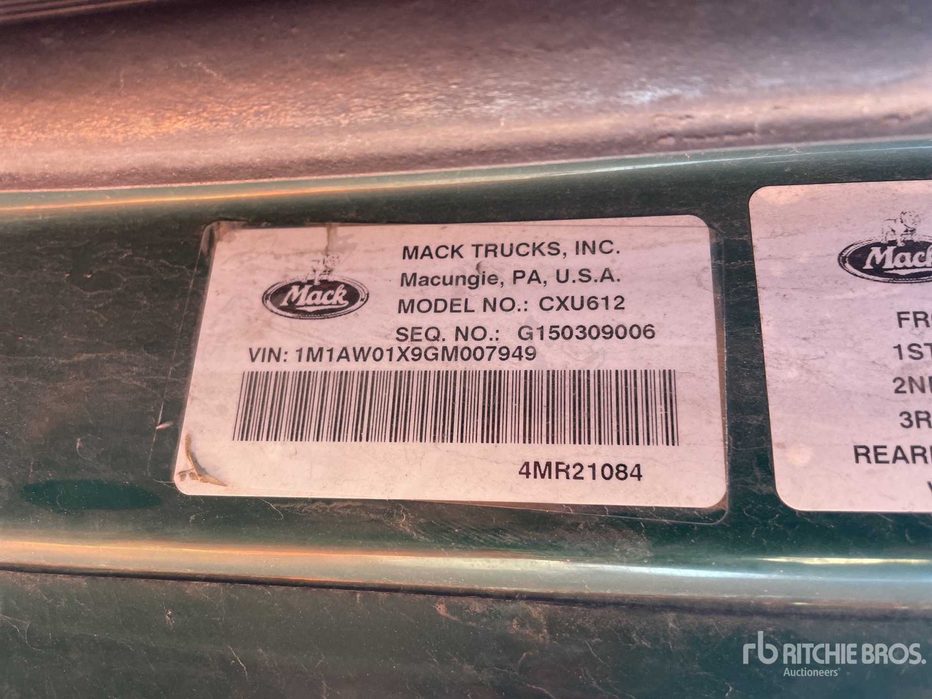 Mack MP7 395 hp Engine, 2015 US EPA Label, Eaton Fuller 10-Speed Manual Transmission, 12000 lb Front Axle, 20000 lb Rears, 32000 lb GVWR, 157 in Wheelbase, Air Suspension, 275/80R22.5 Front Tires, Mixed Rear Tires, Dual Fuel Tanks