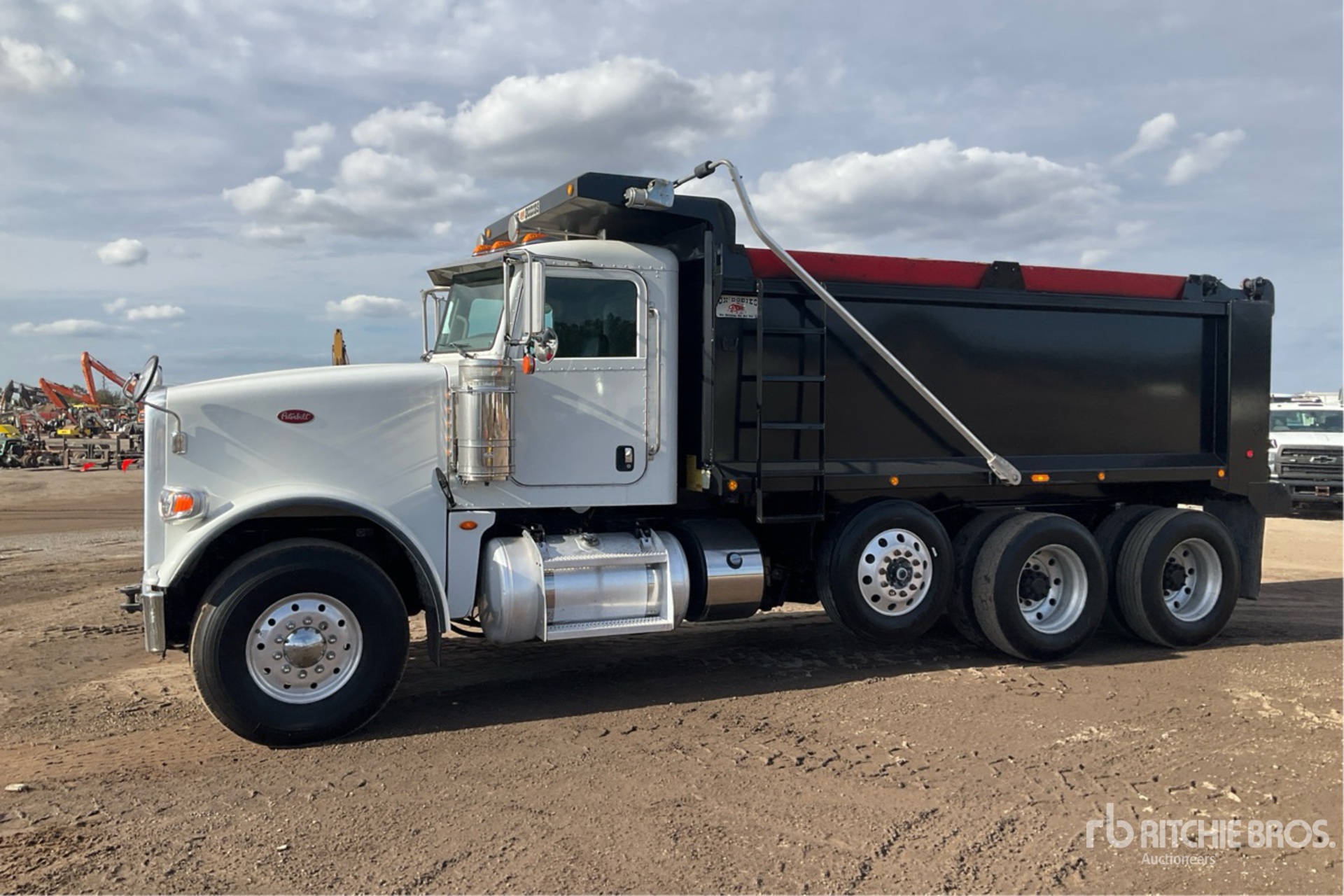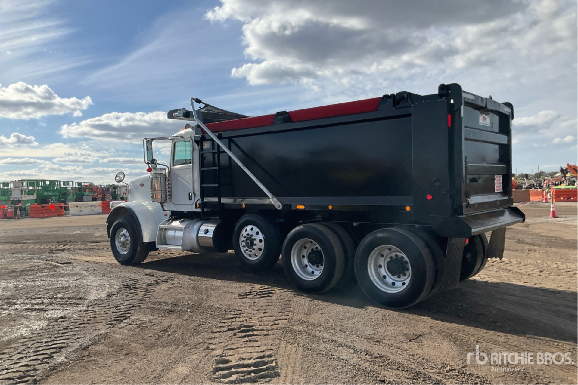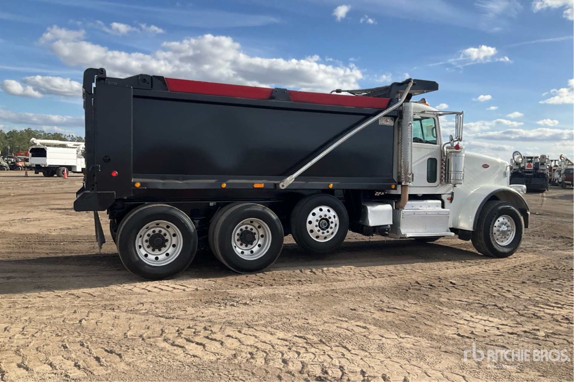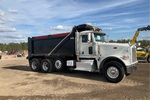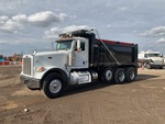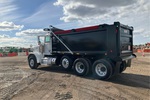 Cummins ISX12 6 Cylinder 15 L Diesel 425 hp Engine, 2015 US EPA Label, Requires Diesel Exhaust Fluid, 23933 Engine hrs, Automated Transmission, Differential Lock, 20000 lb Front Axle, 46000 lb Rears, 79220 lb GVWR, Aluminum Wheels, 425/65R22.5 Front Tires, 11R24.5 Rear Tires, Steerable Air Lift Pusher Axle, Dual Steering Boxes, Double Frame, Rubber Suspension, 224 in Wheelbase, PTO, OX Bodies 15 ft 11 in Long x 4 ft 2 in High Steel Body, Electric Roll Tarp