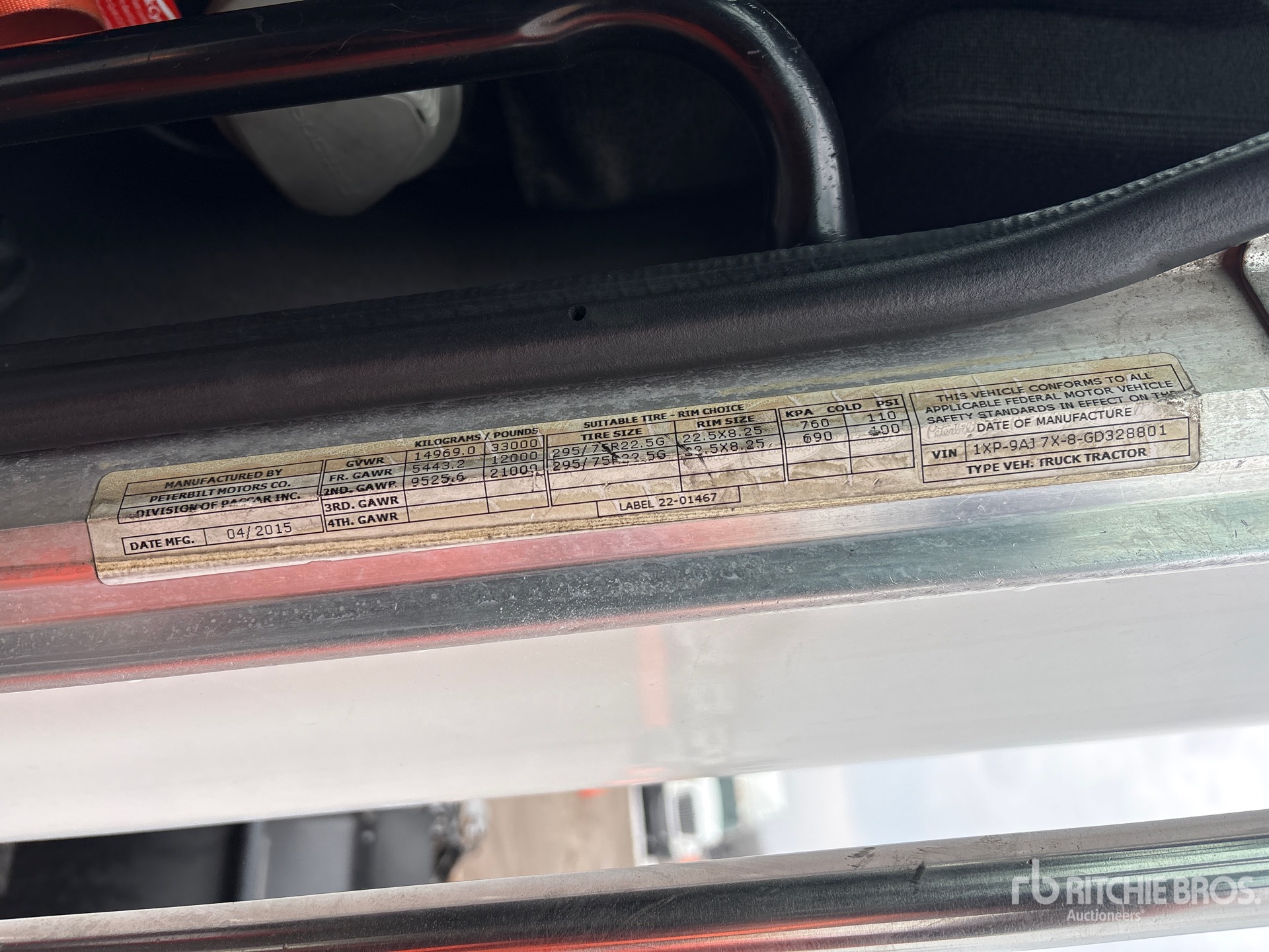 Paccar PX-9 345 hp Engine, 2015 US EPA Label, 6776 Engine hrs, Eaton Fuller Automated Transmission, 12000 lb Front Axle, 21000 lb Rears, 33000 lb GVWR, 152 in Wheelbase, Air Suspension, 275/80R22.5, Air Sliding 5th Wheel