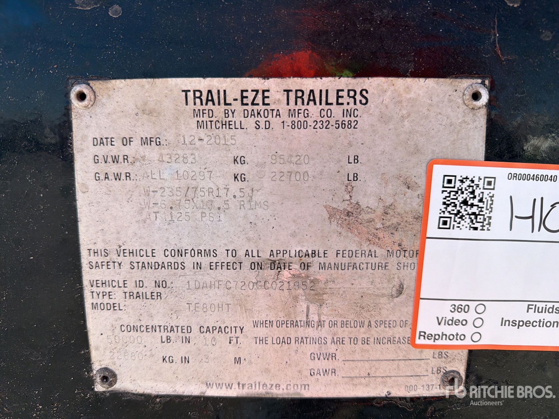 详细的设备信息范围有限,且除本文明确列出的方面或组件外,利氏兄弟拍卖公司并未检查设备中的任何其他方面或组件。除非另有明确声明,我们不会对设备或其组件作出任何形式的明示或暗示的陈述或保证。这包括但不限于关于功能、符合或遵循任何适用权力机构或监管机构的安全标准或要求、适用于任何特定用途,或者适销性的任何陈述或保证。我们强烈建议您在竞拍之前自行对设备进行详细检查。