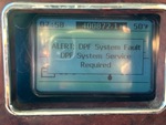 The engine started and ran. The DPF system fault and DPF system service required lights are on. The check engine light is on.