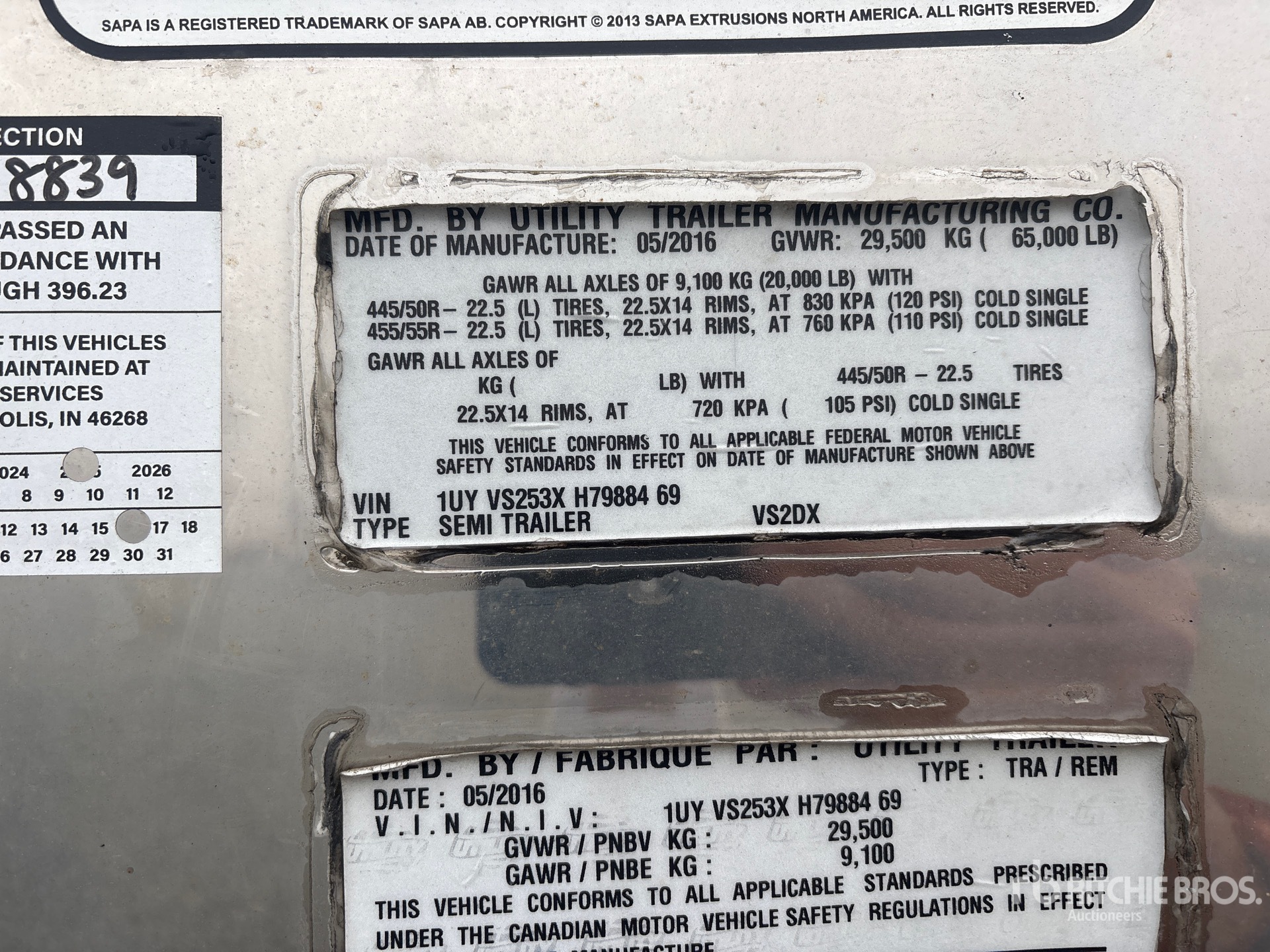Air Ride Suspension, Side Skirts, Hardwood Floor, Swing Door, 295/75R22.5 Tires 65000 lb GVWR