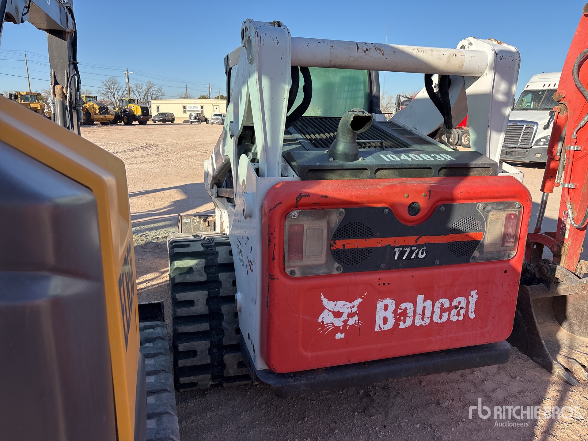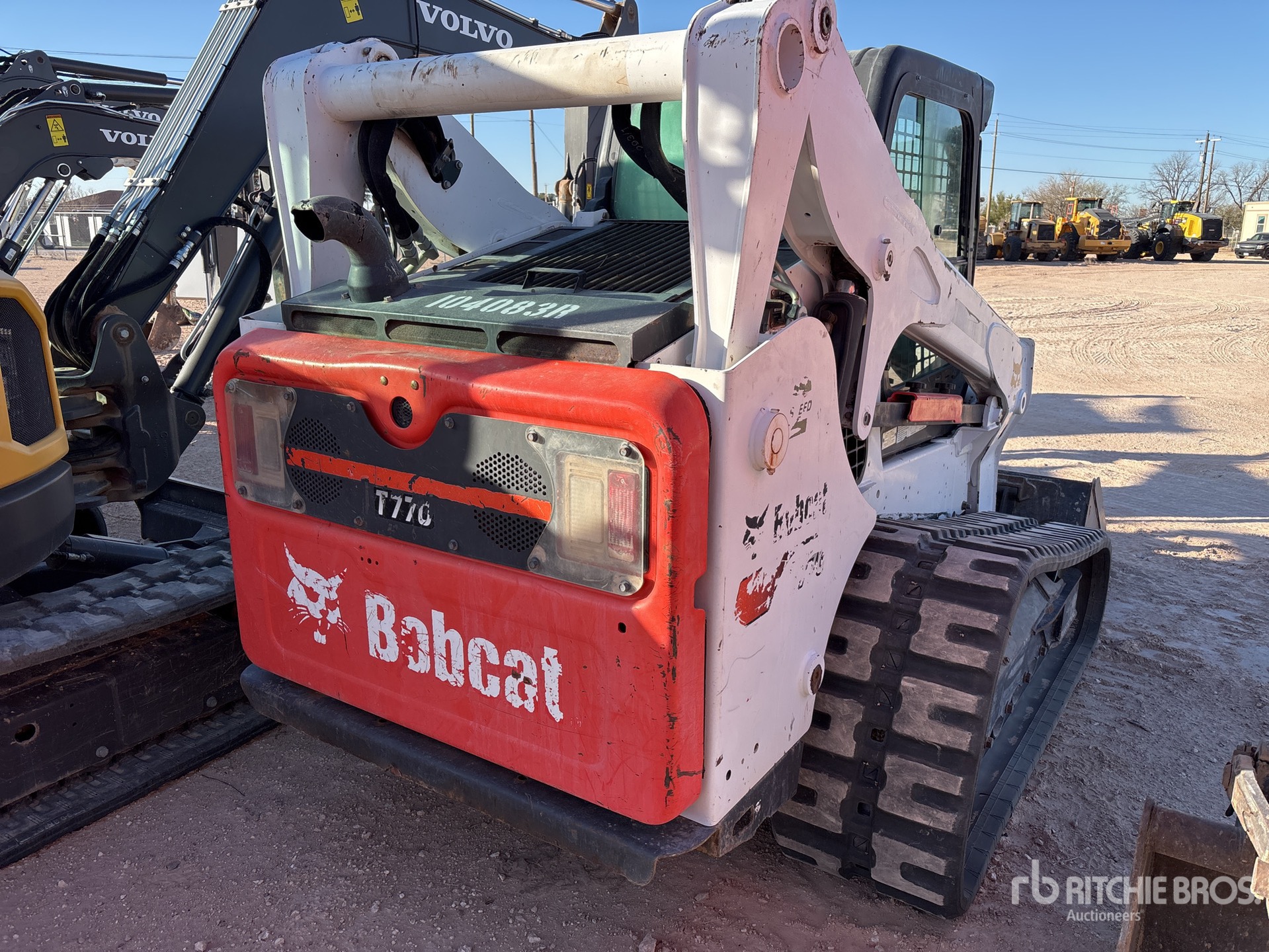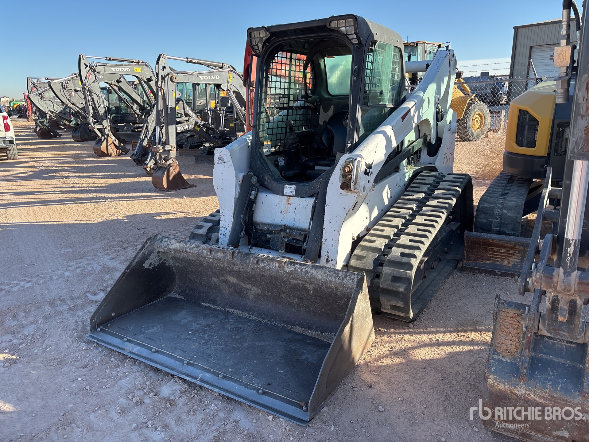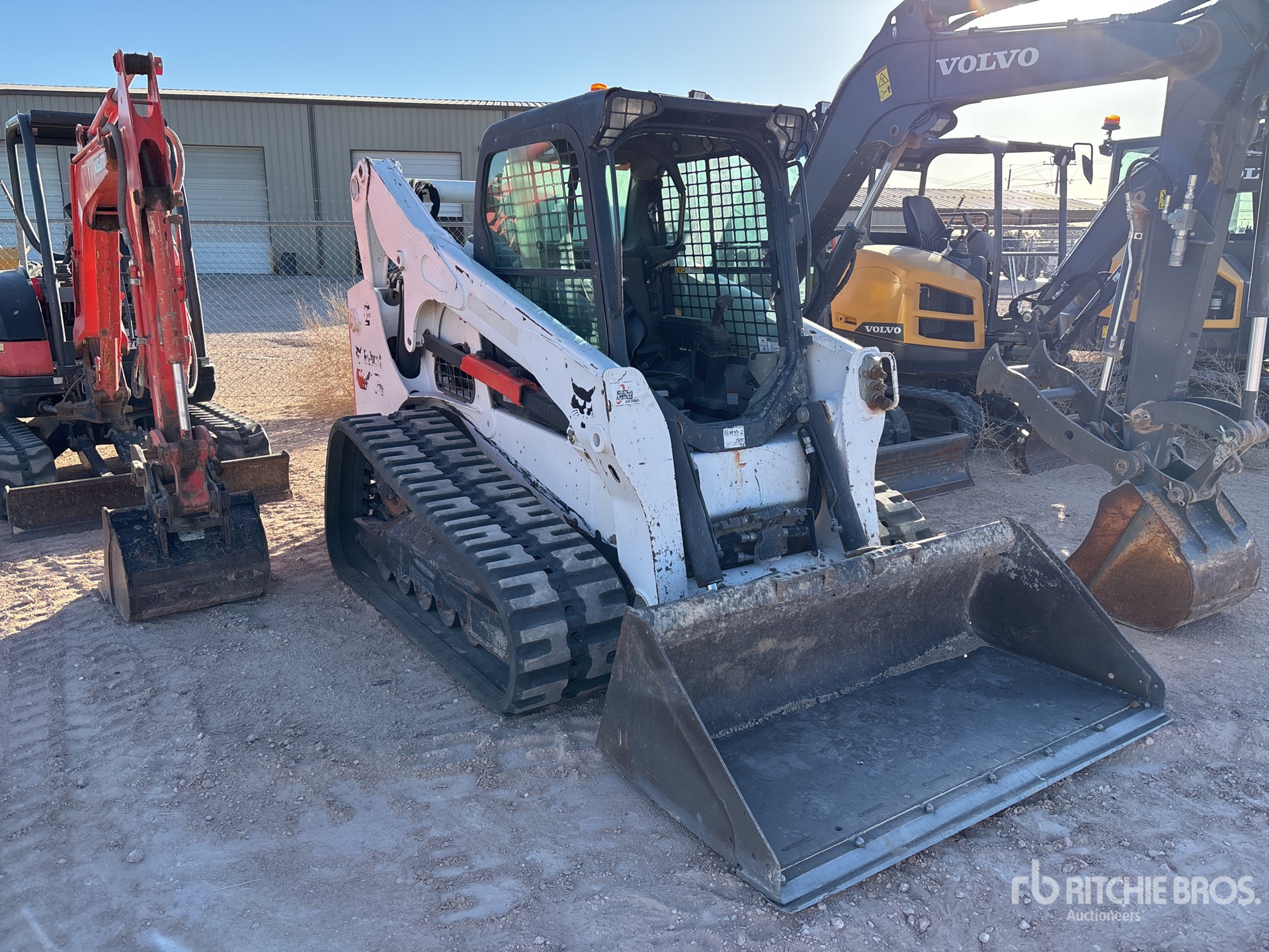 Enclosed Cab (Door missing), Air Conditioner, Joystick Steering, Requires Diesel Exhaust Fluid, 17.5 in Track Belts, 7 Pin Electric Kit, Manual Coupler, 66 in Bucket