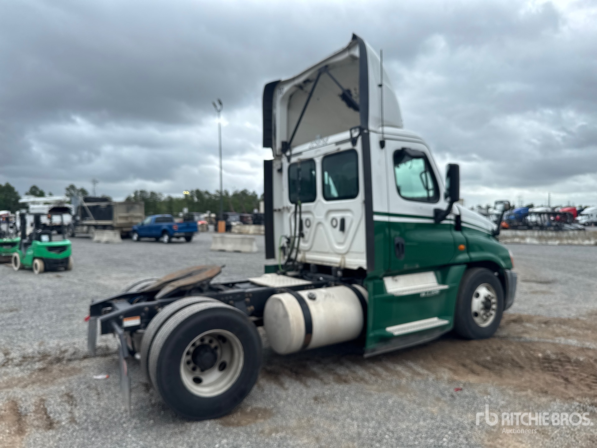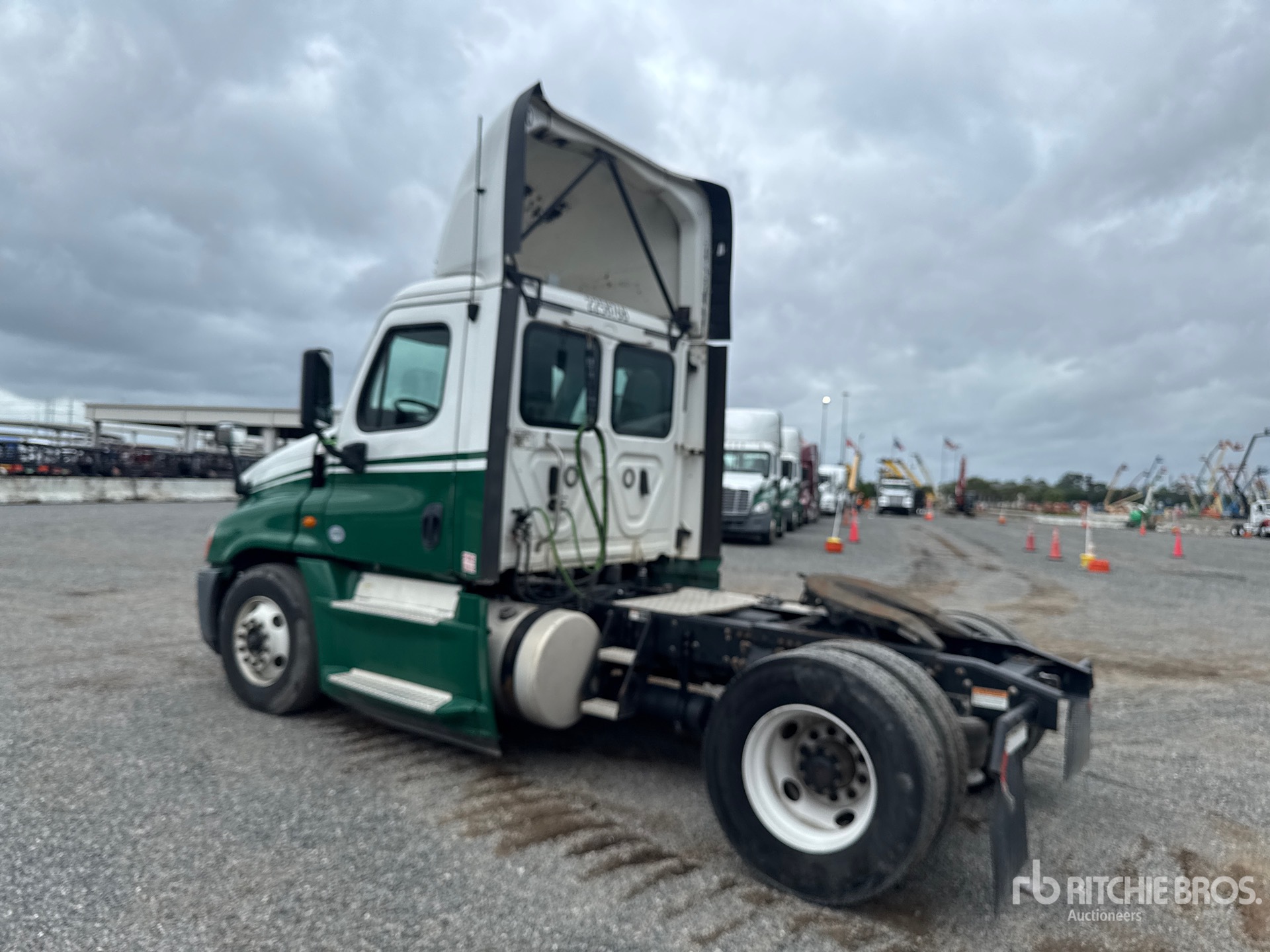 Located in Lane 24 Spot 6, Detroit DD15 455 hp Engine, 2017 US EPA Label, 18002 Engine hrs, Eaton Fuller FAO15810C 10-Speed Manual Transmission, 12000 lb Front Axle, 23000 lb Rears, 31000 lb GVWR, 158 in Wheelbase, Air Suspension, 11R22.5, Ballrace 5th Wheel, Dual Fuel Tanks