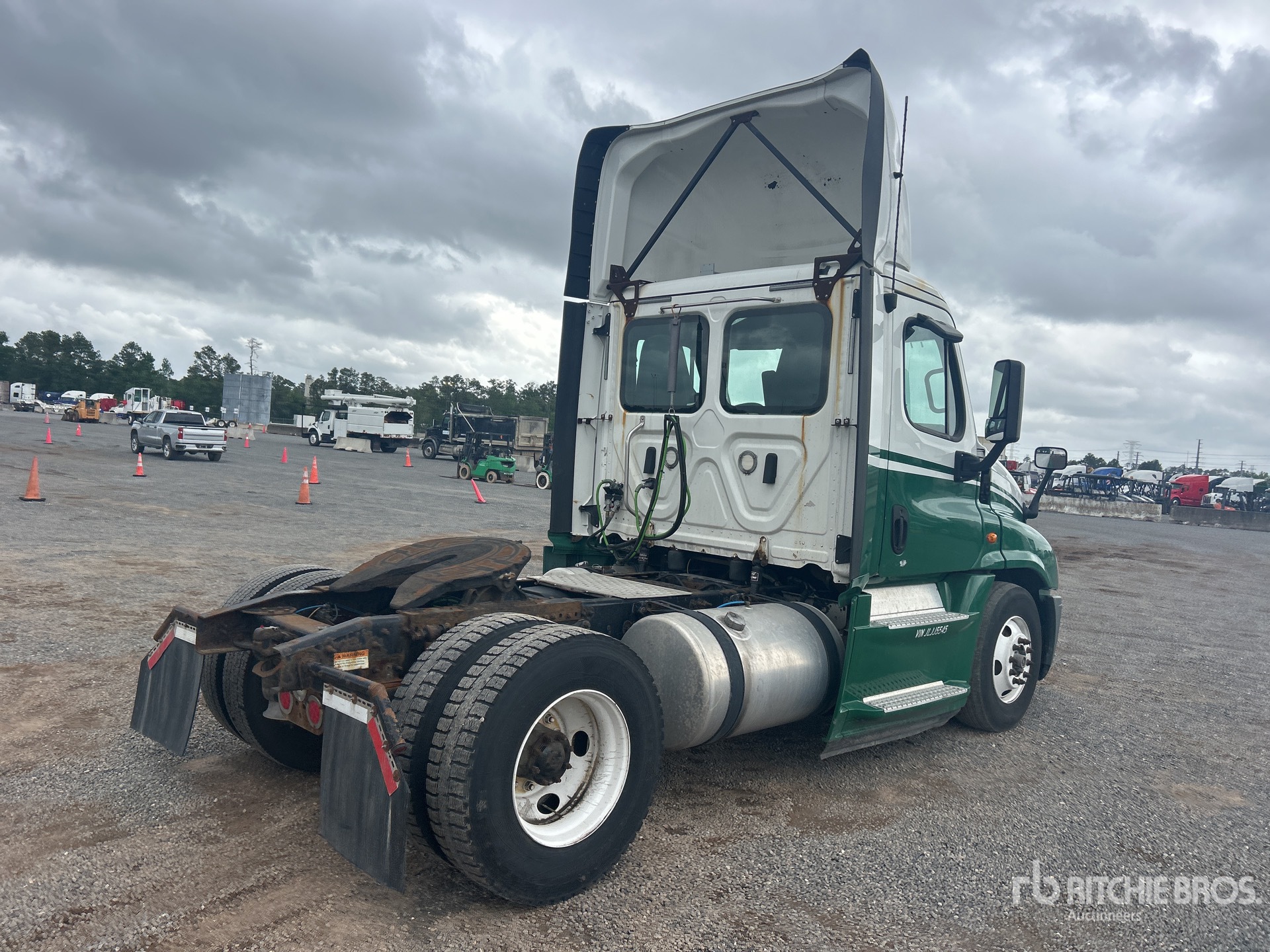Located in Lane 32 Spot 1, Detroit DD15 455 hp Engine, 2018 US EPA Label, Eaton Fuller FAO-15810C 10-Speed Manual Transmission, 12000 lb Front Axle, 21000 lb Rears, 33000 lb GVWR, Engine Brake, 158 in Wheelbase, Air Suspension, 11R22.5, Dual Fuel Tanks