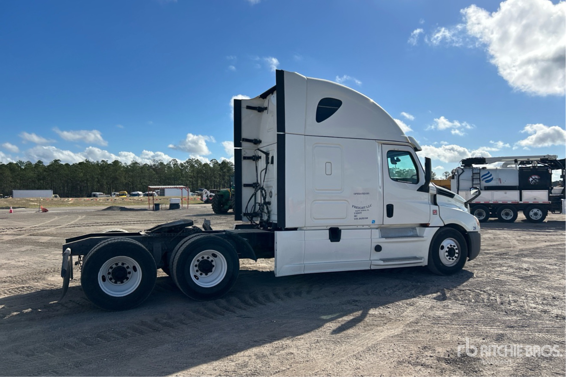 Detroit DD15 455 hp Engine, 22942 Engine hrs, Detroit DT12-1650-OH1 12-Speed Automated Transmission, 13220 lb Front Axle, 40000 lb Rears, 53220 lb GVWR, Engine Brake, 72 in High Rise Sleeper Cab, Bunk Beds, 229 in Wheelbase, Air Suspension, 11R22.5, Air Sliding 5th Wheel, Dual Fuel Tanks