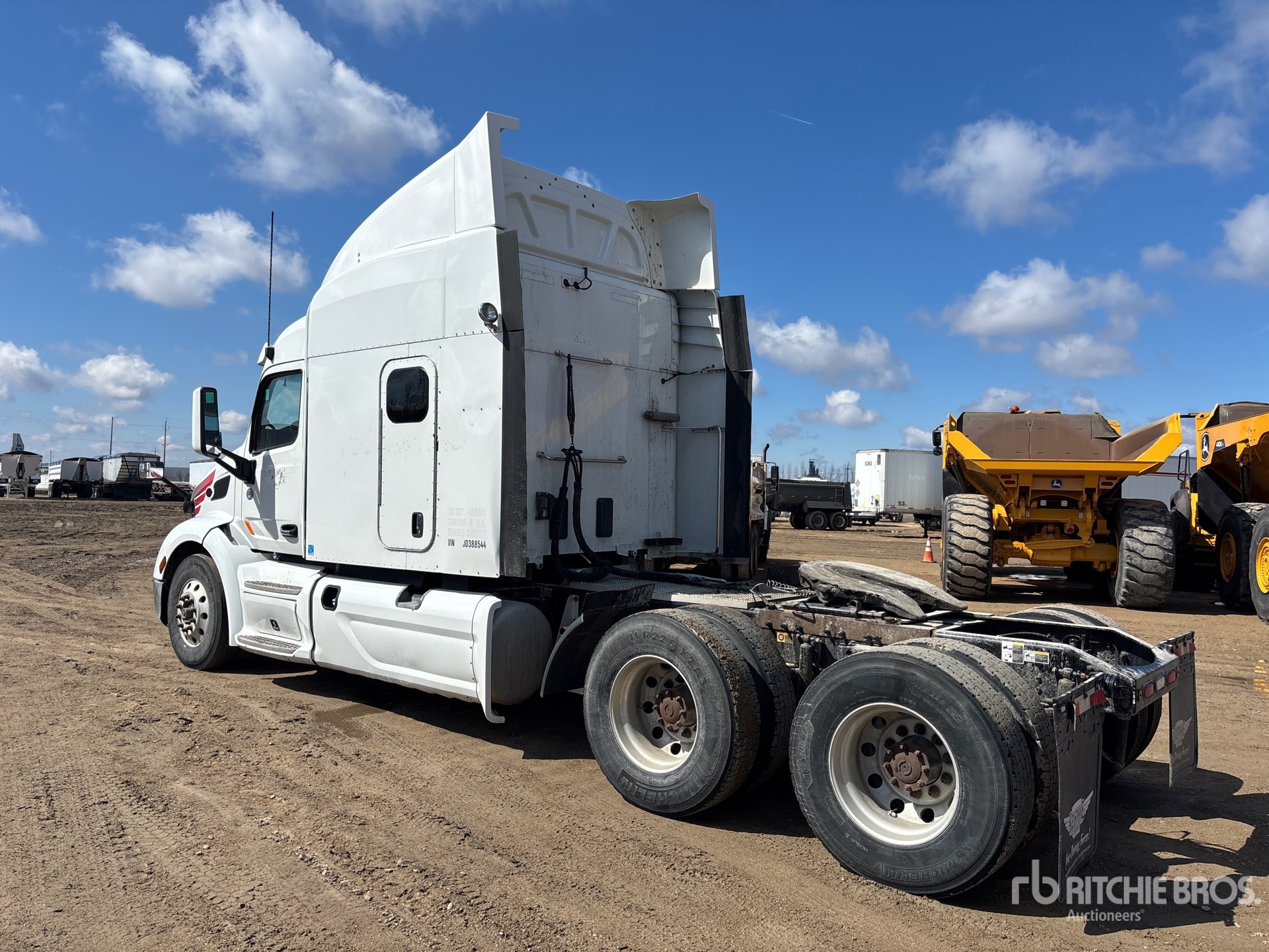 Paccar MX-13 455 hp Engine, 2017 US EPA Label, 27710 Engine hrs, Automated Transmission, 12000 lb Front Axle, 38000 lb Rears, 50000 lb GVWR, Engine Brake, Differential Lock, 63 in High Rise Sleeper Cab, Bunk Beds, Bunk Heater, 232 in Wheelbase, Air Suspension, Aluminum Wheels, 11R22.5 Front Tires, 11R22.5 Rear Tires, Air Sliding 5th Wheel, Dual Fuel Tanks
