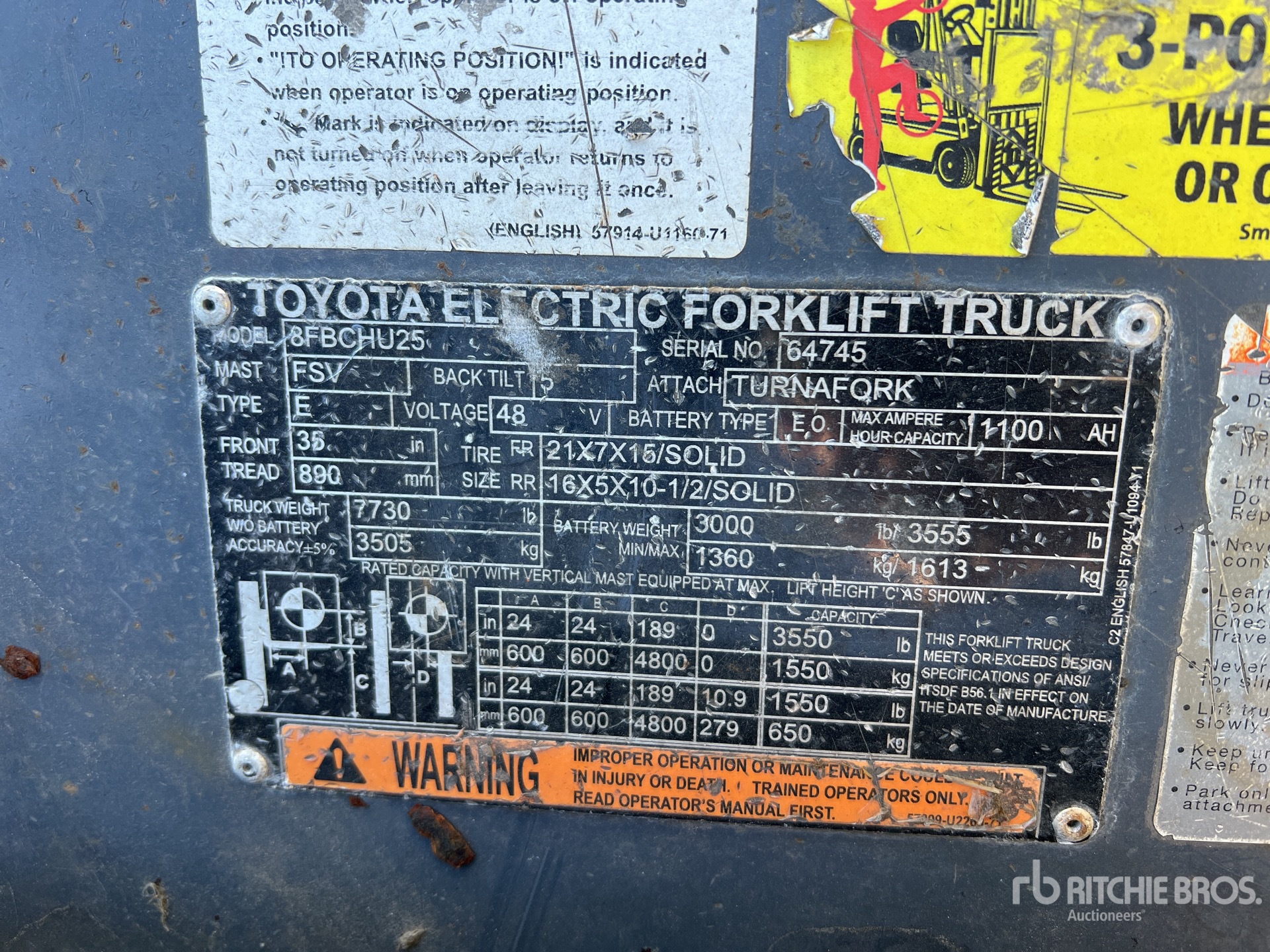 3 Stage Mast, 189 in Max Lift Height, 83 in Lowered Mast Height, 48 V