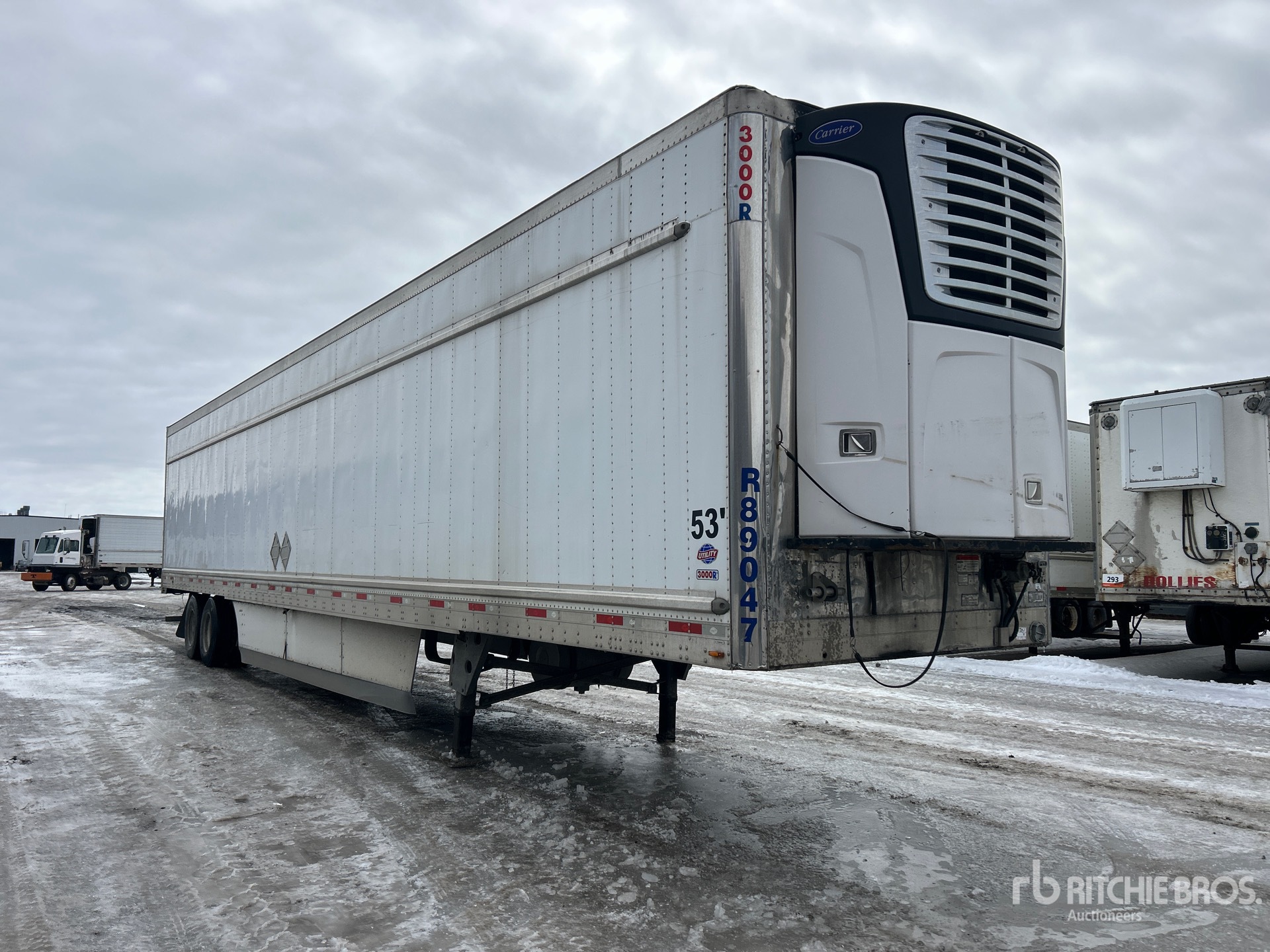 Carrier 7300X4 Refrigeration Unit, Aluminum/Steel Combination Frame, Air Ride Sliding Suspension, Side Skirts, Ducted Floor, Swing Door, 11R22.5 Tires, 29500 kg GVWR
