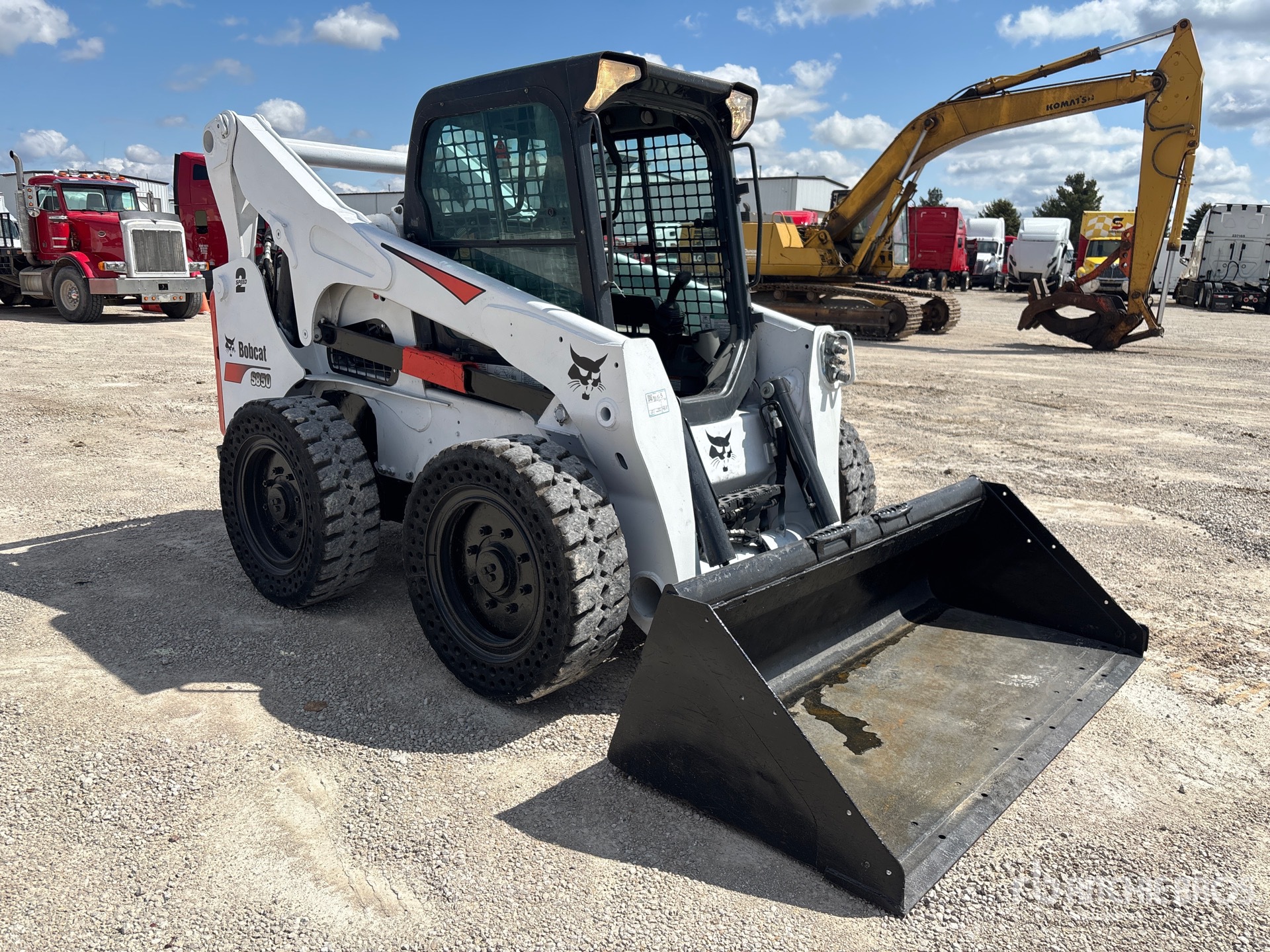 Located in Lane 8 Spot 9, Enclosed Cab (Door missing), Air Conditioner, Ride Control, Creep Mode, Joystick Steering, Control Pattern Changer, Self Leveling, Tier 4, 2019 US EPA Label, CARB Compliant, Requires Diesel Exhaust Fluid, Aperture Tires, 7 Pin Electric Kit, Hydraulic Coupler, 79 in Bucket