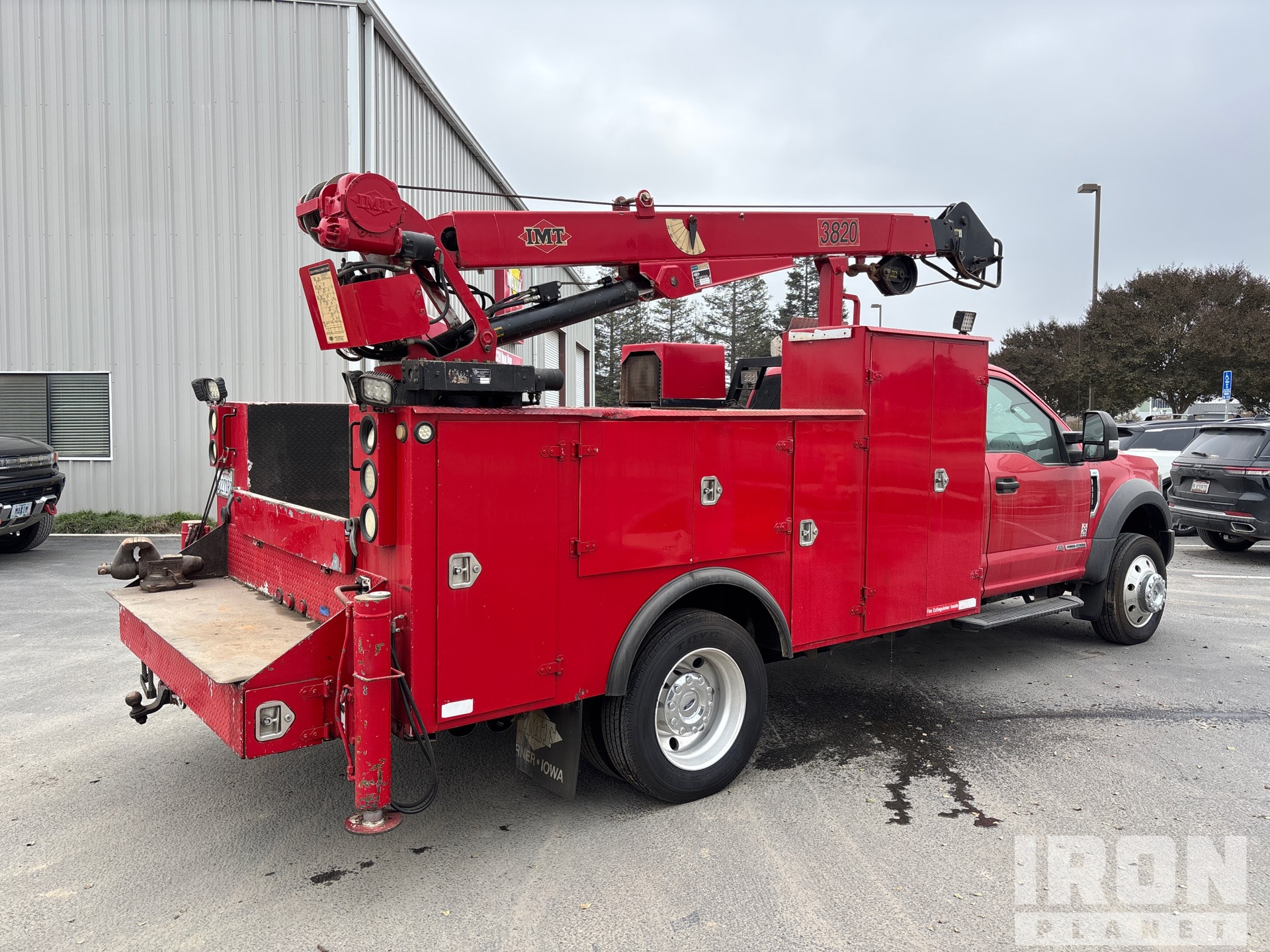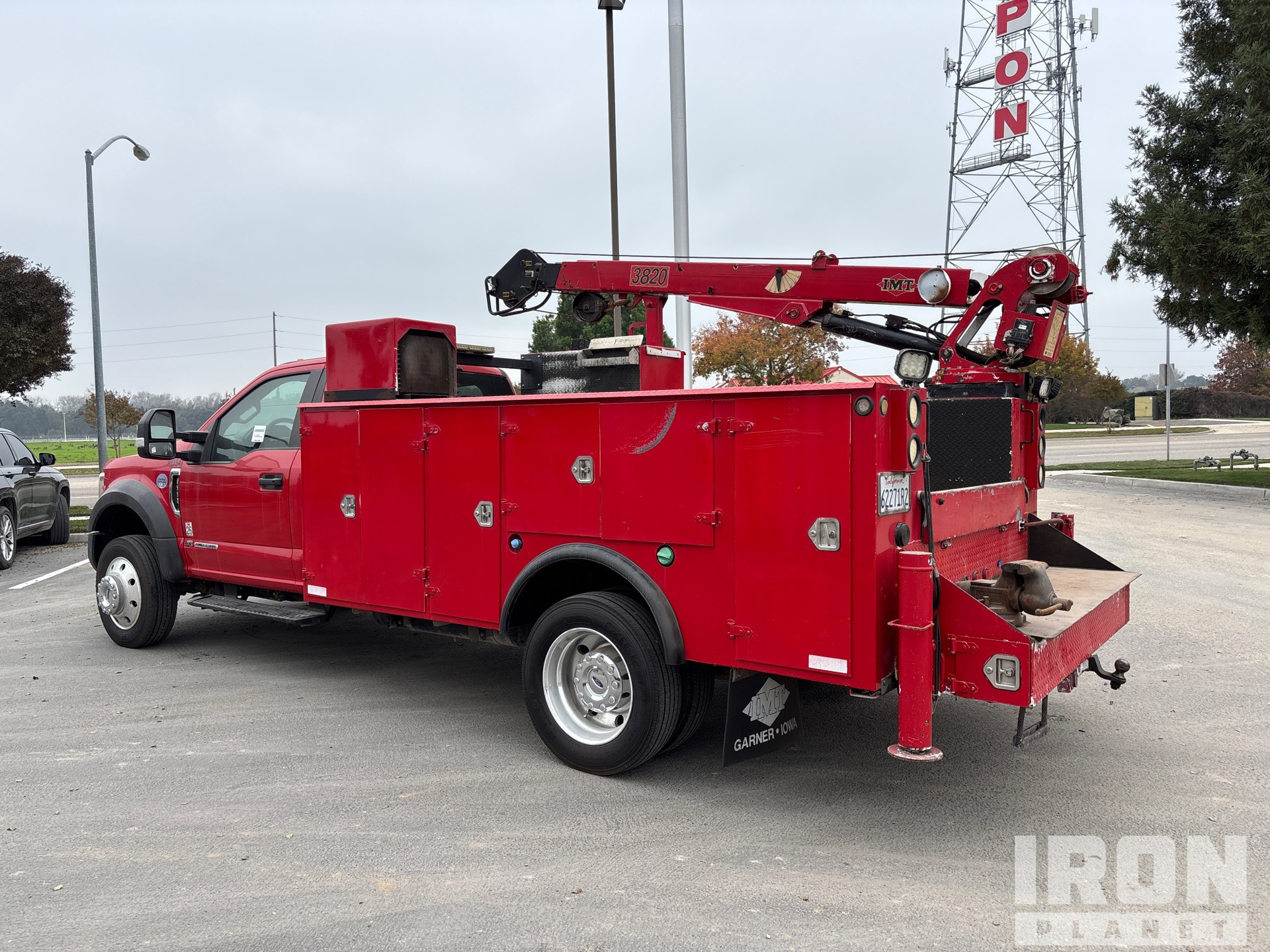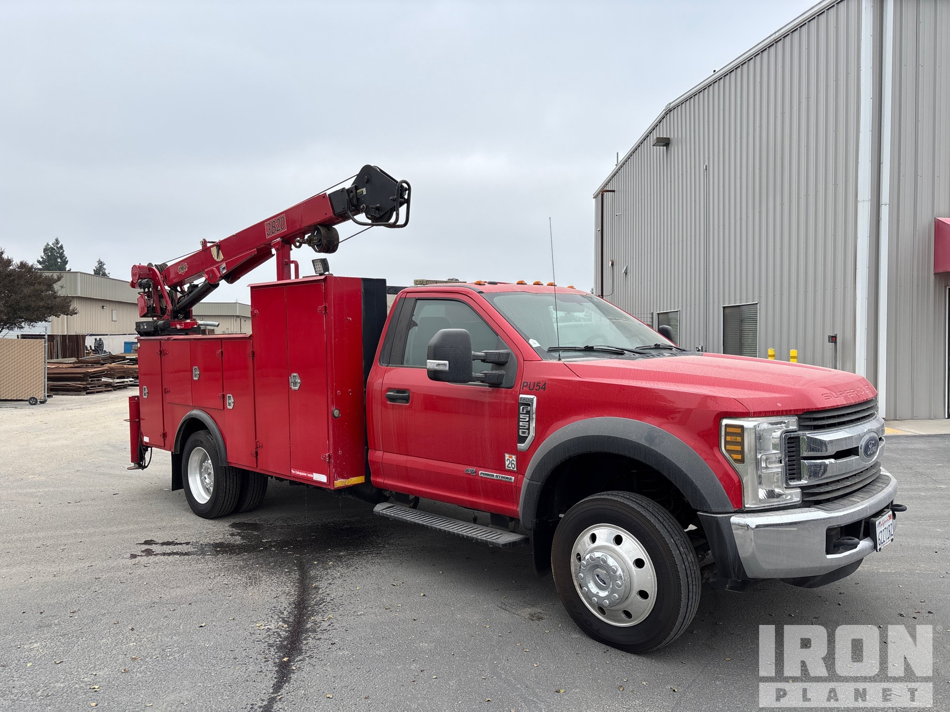Ford Powerstroke V8 6.7 L Diesel Engine, 2019 US EPA Label, CARB Compliant, Requires Diesel Exhaust Fluid, 11760 Engine hrs, Automatic Transmission, 6000 lb Front Axle, 14706 lb Rears, 19500 lb GVWR, Aluminum Outer Wheels, 225/70R19.5, Spring Suspension, 169 in Wheelbase, PTO, 11 ft 2 in Body, Hydraulic Stabilizers, 2004 IMT 3820 J369466 3800 lb 2 Section Hydraulic Crane, PTO Air Compressor, Air Hose Reel